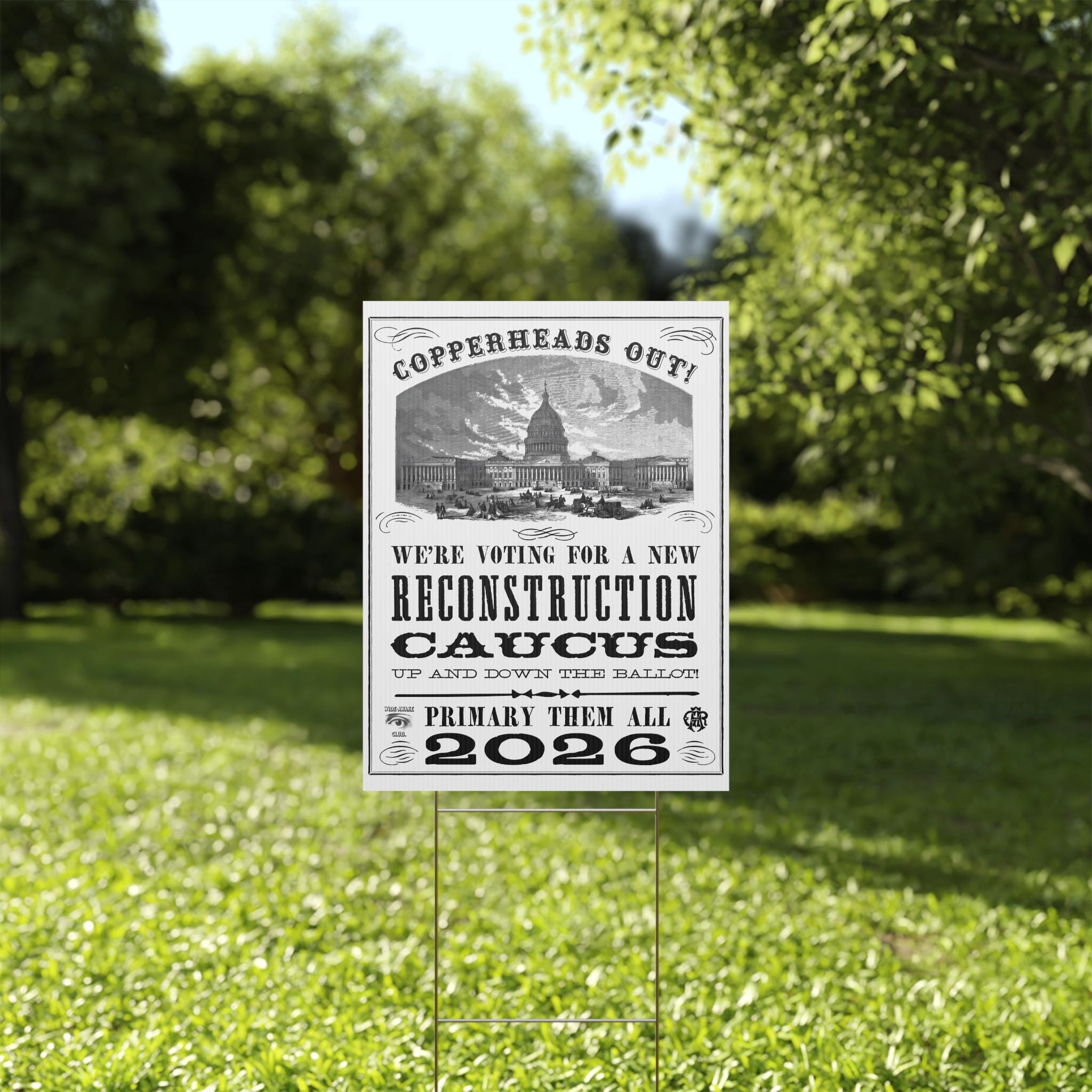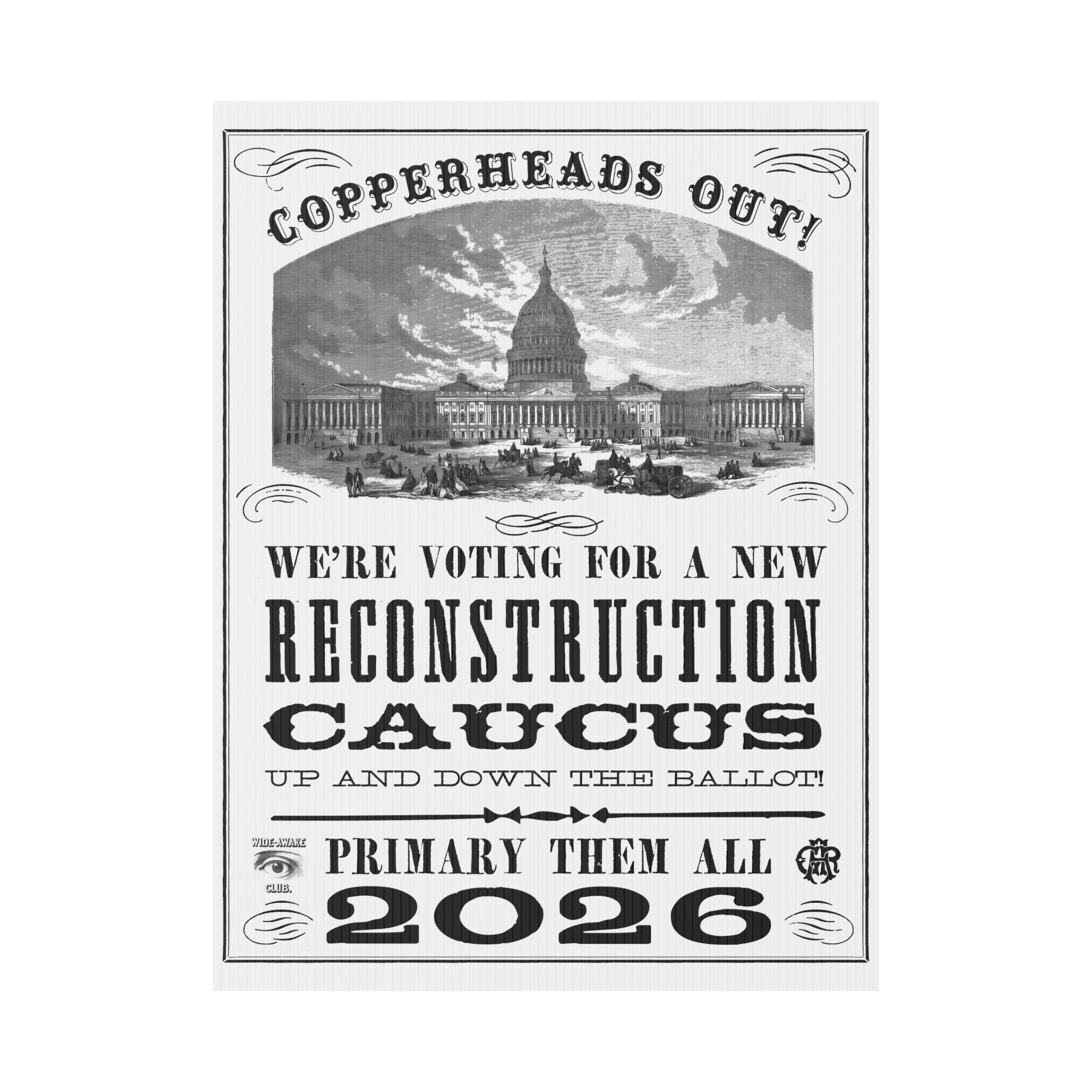 Vintage election poster design with a variety of historical typefaces, perfect for outdoor use. Gives off a patriotic and historical vibe, ideal for political enthusiasts and history buffs. Relevant for elections, Fourth of July, and political events.