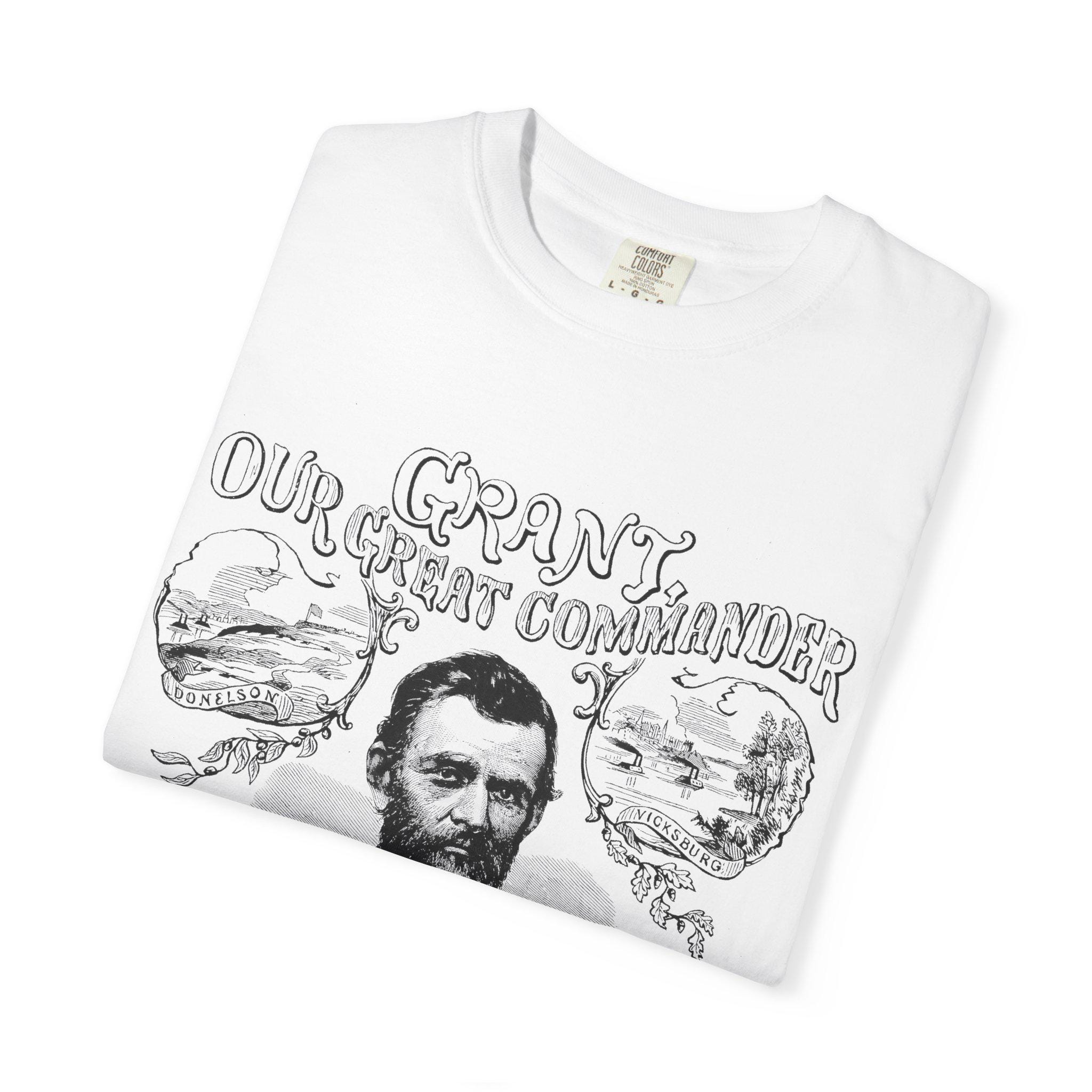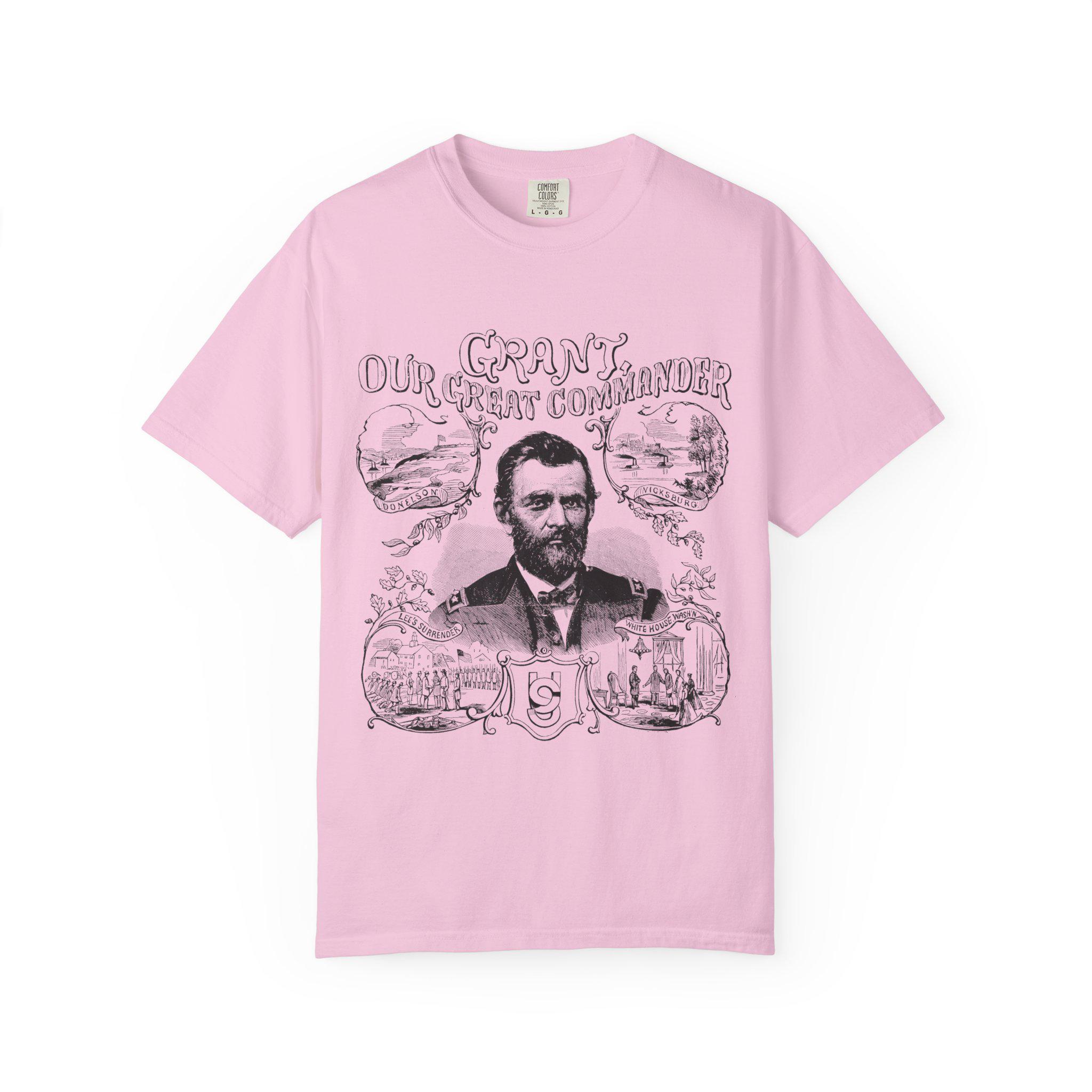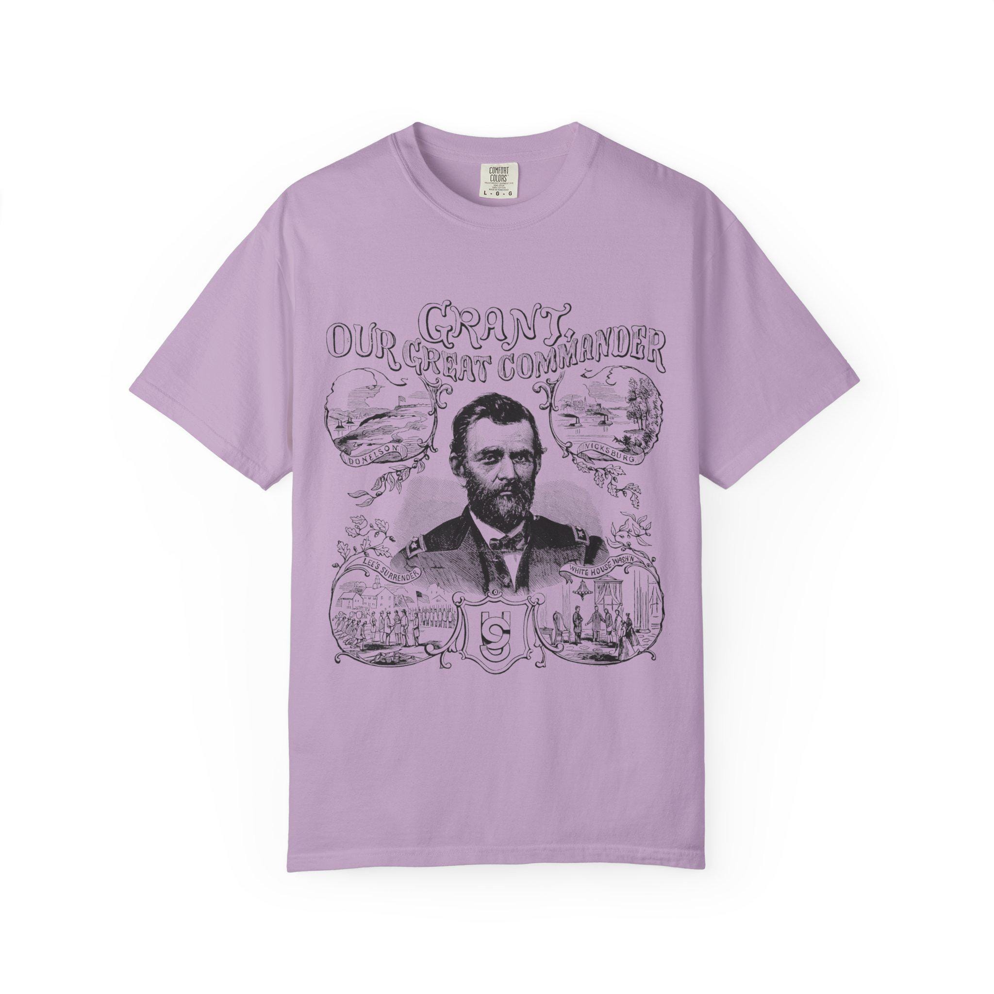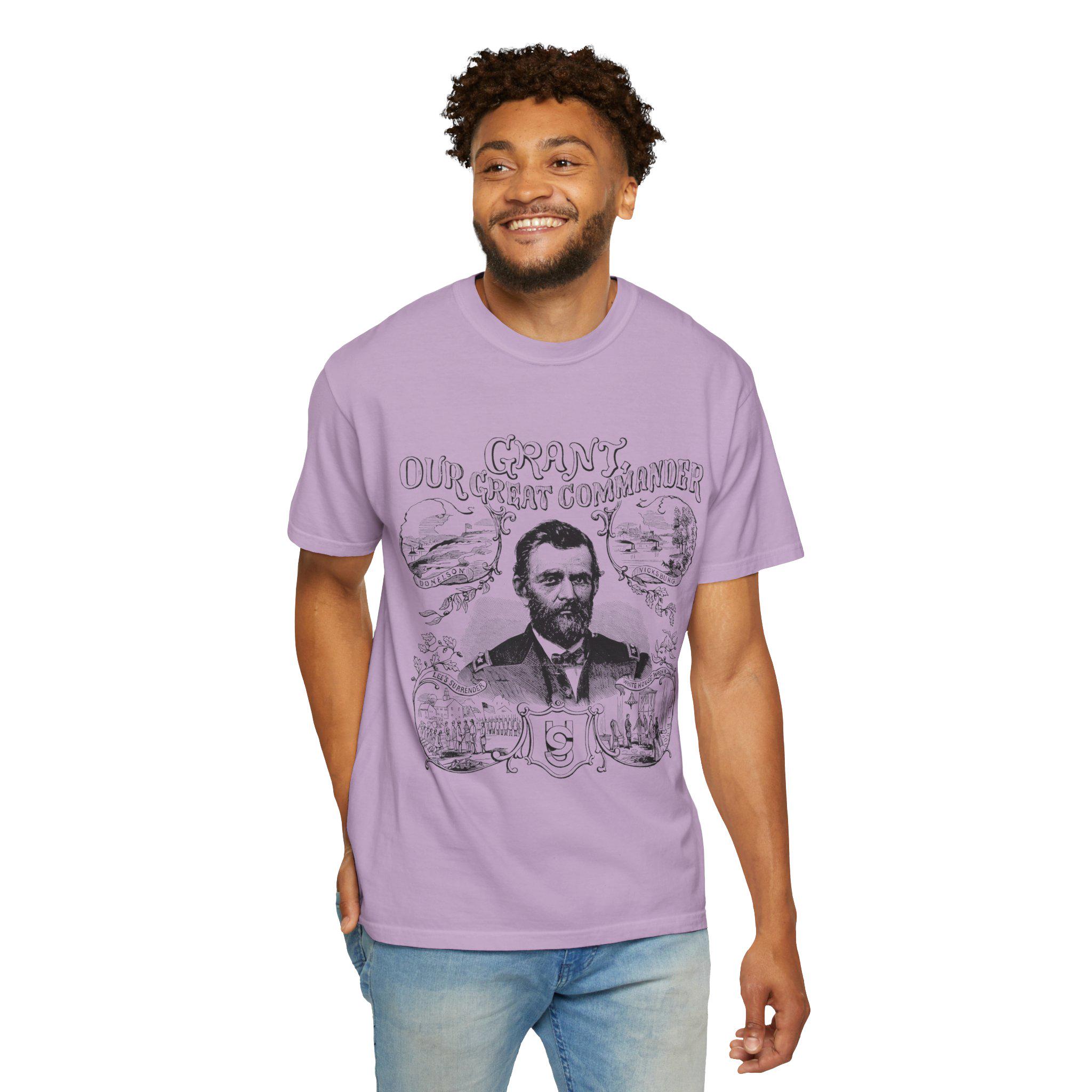 This Union Army General Ulysses S Grant portrait tee features Civil War-related line drawings for history enthusiasts. The comfortable fit and classic crew neckline make it perfect for casual wear or accessorizing in semi-formal settings. Ideal for adults interested in historical events, Civil War reenactors, and history buffs. Perfect for Memorial Day, Fourth of July, and historical reenactment events.