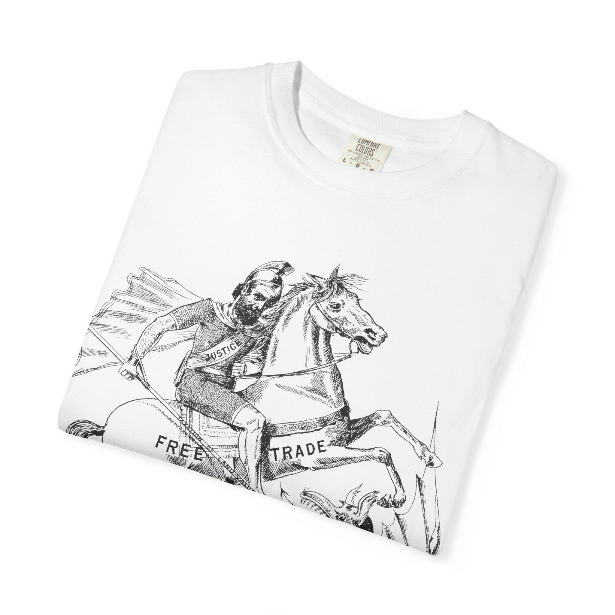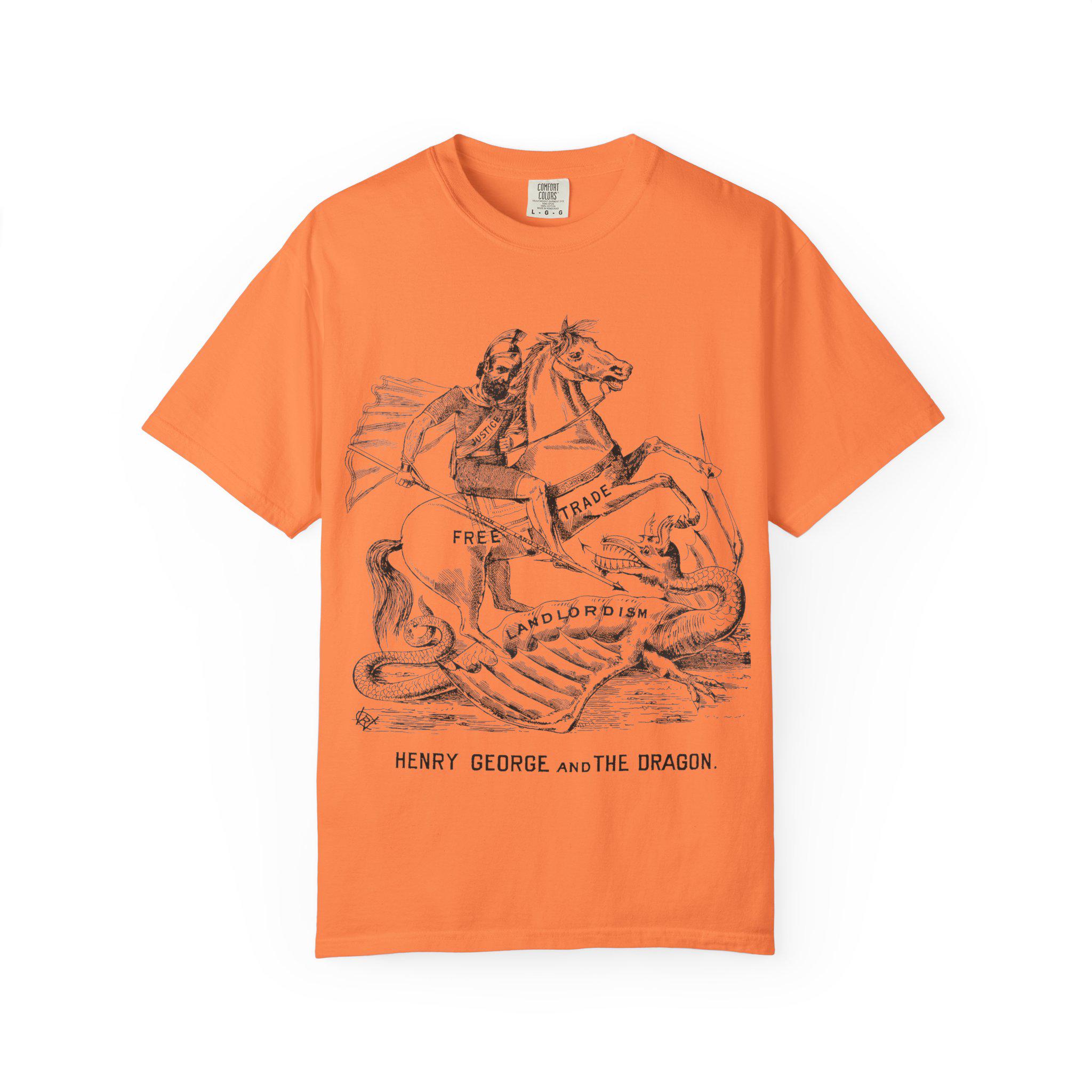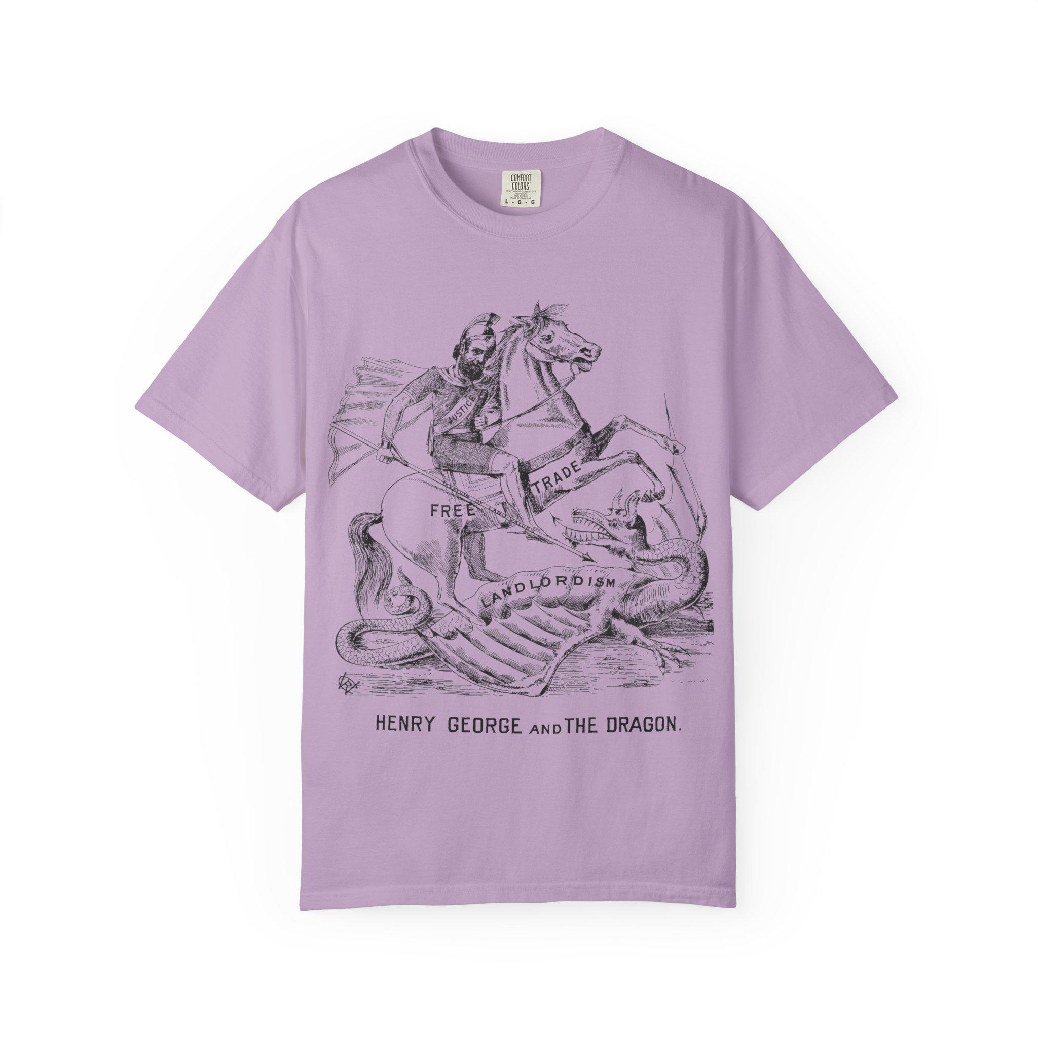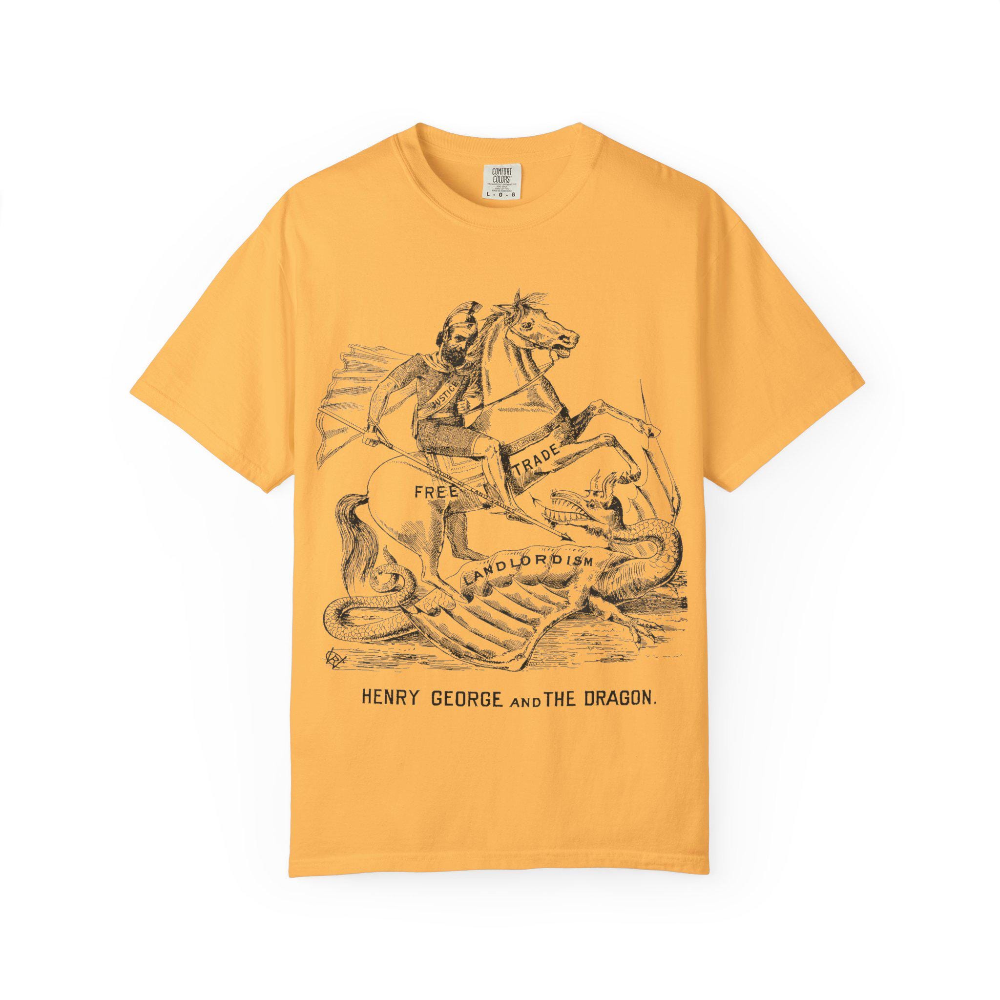This late 19th-century political cartoon-inspired T-shirt features political economist Henry George slaying the dragon of Landlordism. With a vintage vibe and a powerful message of justice and free trade, this tee is perfect for history buffs, political enthusiasts, and those passionate about social issues. Ideal for gifts on Labor Day, Election Day, or for history-themed parties.