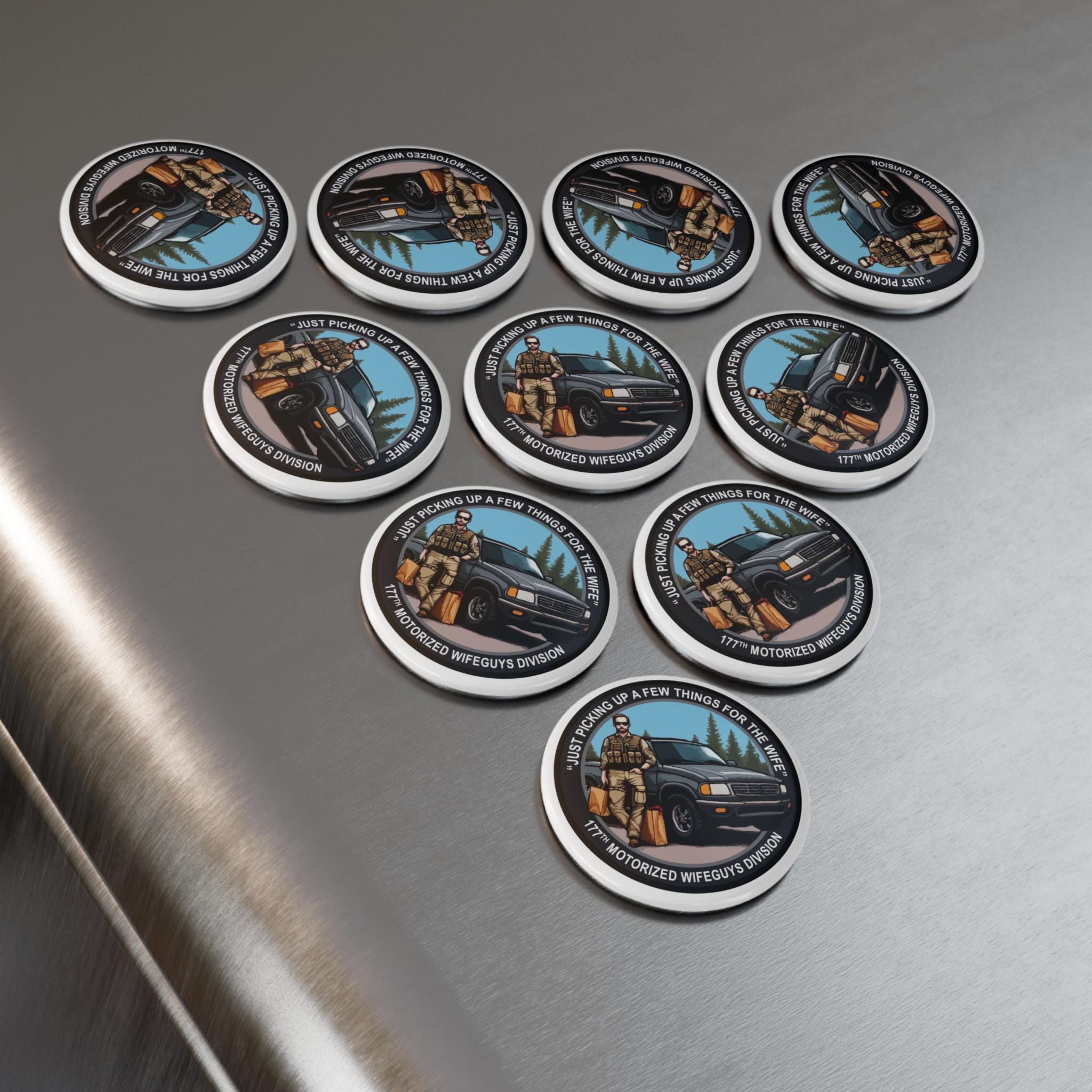 Product features - Vibrant colors: Printed with premium inks that resist fading for sharp, vivid designs. - Mylar/UV cover: Extra protection against scratches and fading for lasting quality. - Round shape: Custom refrigerator magnet measuring 2.25". - Metal shell: Comes with a flat magnetic backing for easy application. - Available in 1 or 10 pieces: Choose the quantity that suits your needs.