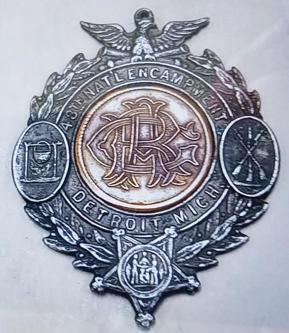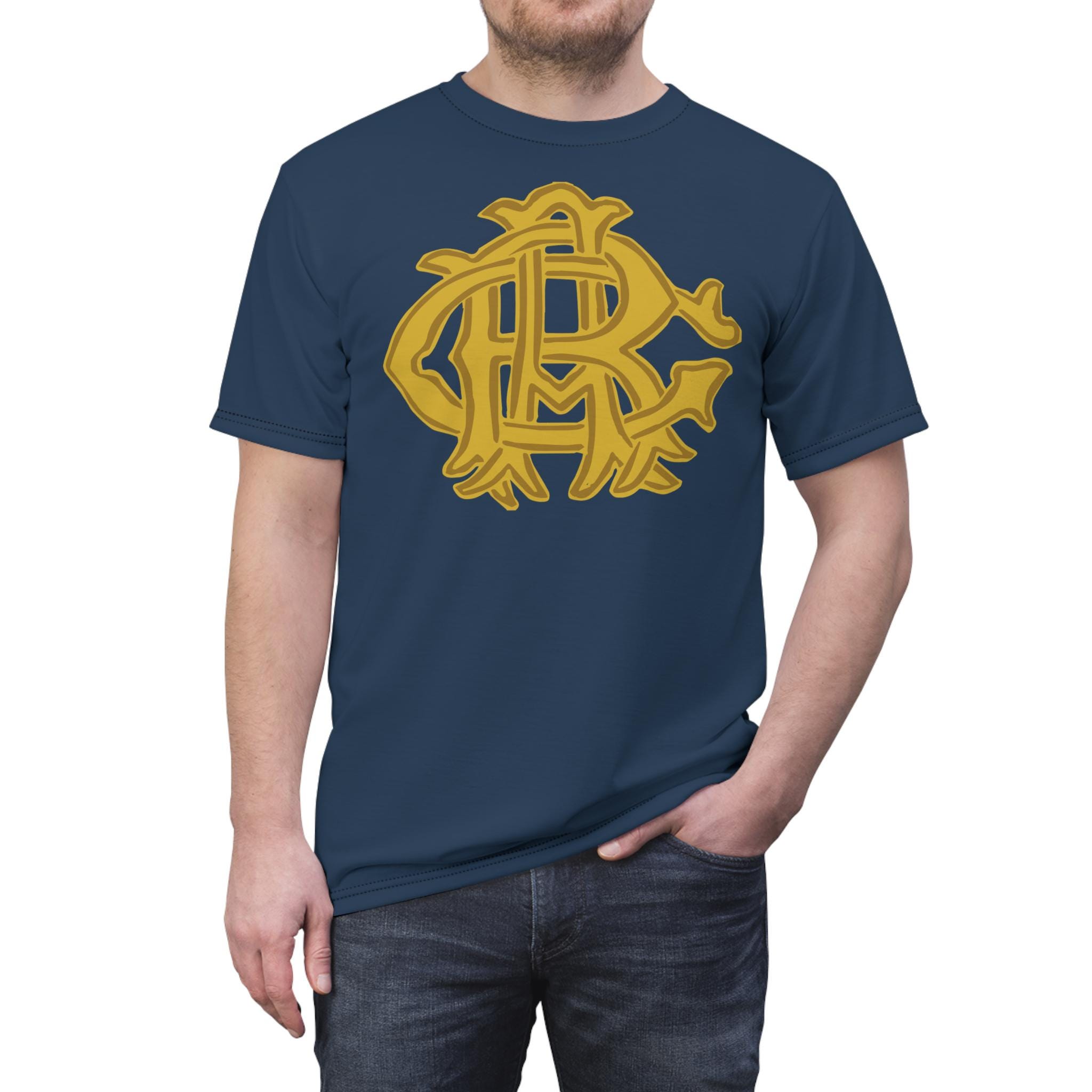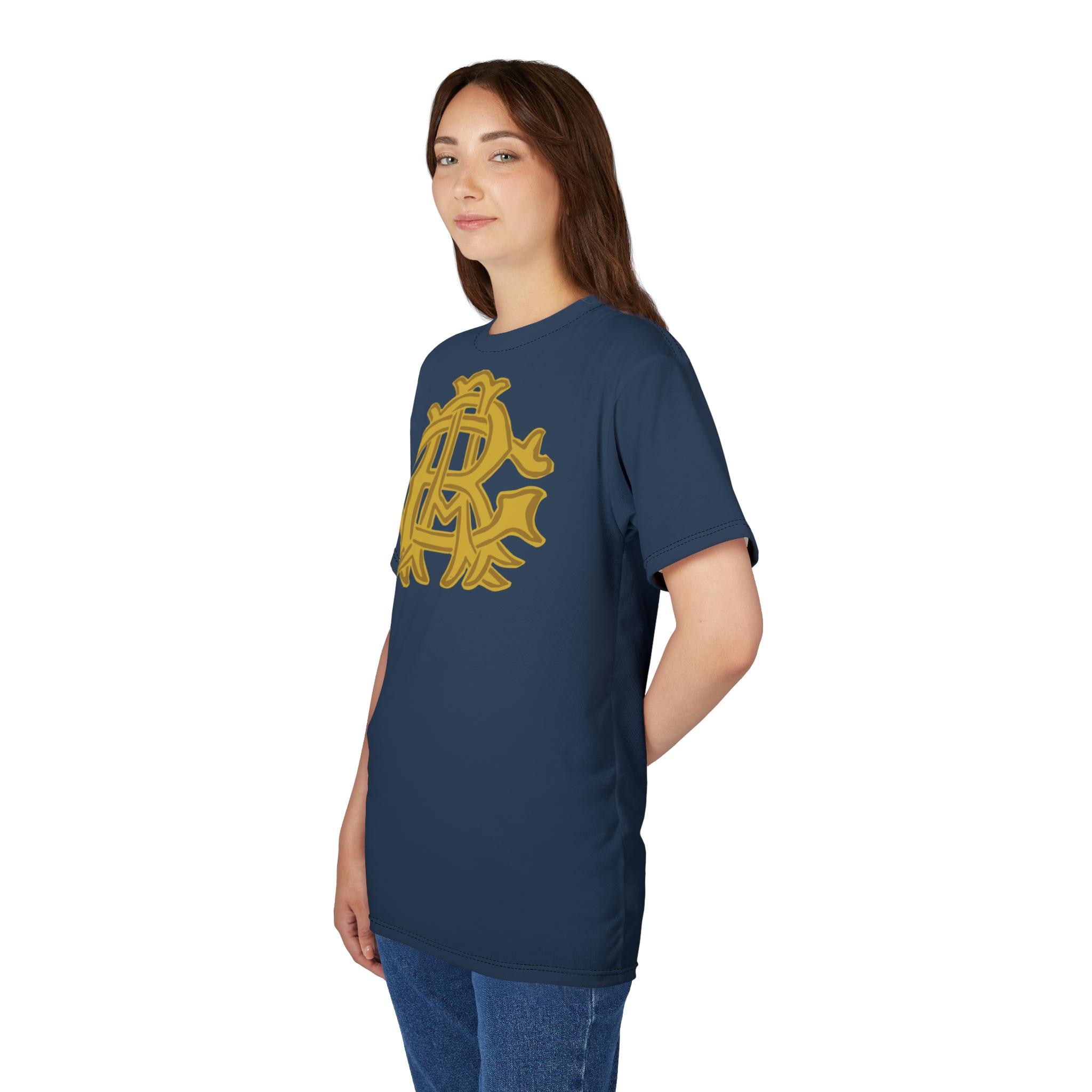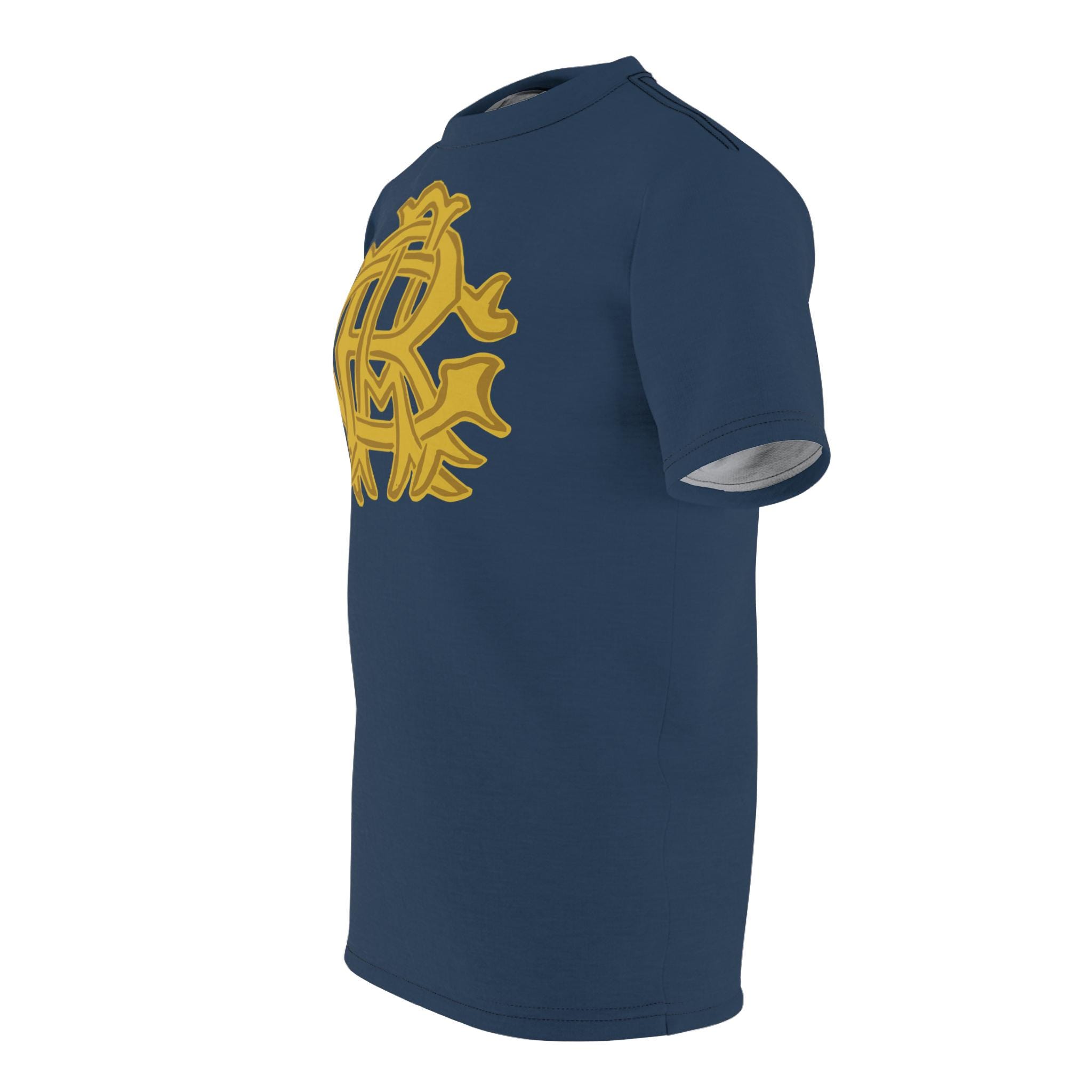 Vintage-inspired Tee with gold monogram design from Grand Army of the Republic memorabilia for the 48th National Encampment. Made with durable polyester fabric and featuring authentic Union army reenactment uniform shade of blue. Perfect for history enthusiasts, reenactors, and patriotic individuals. Ideal for Memorial Day, Veterans Day, or Civil War reenactments.