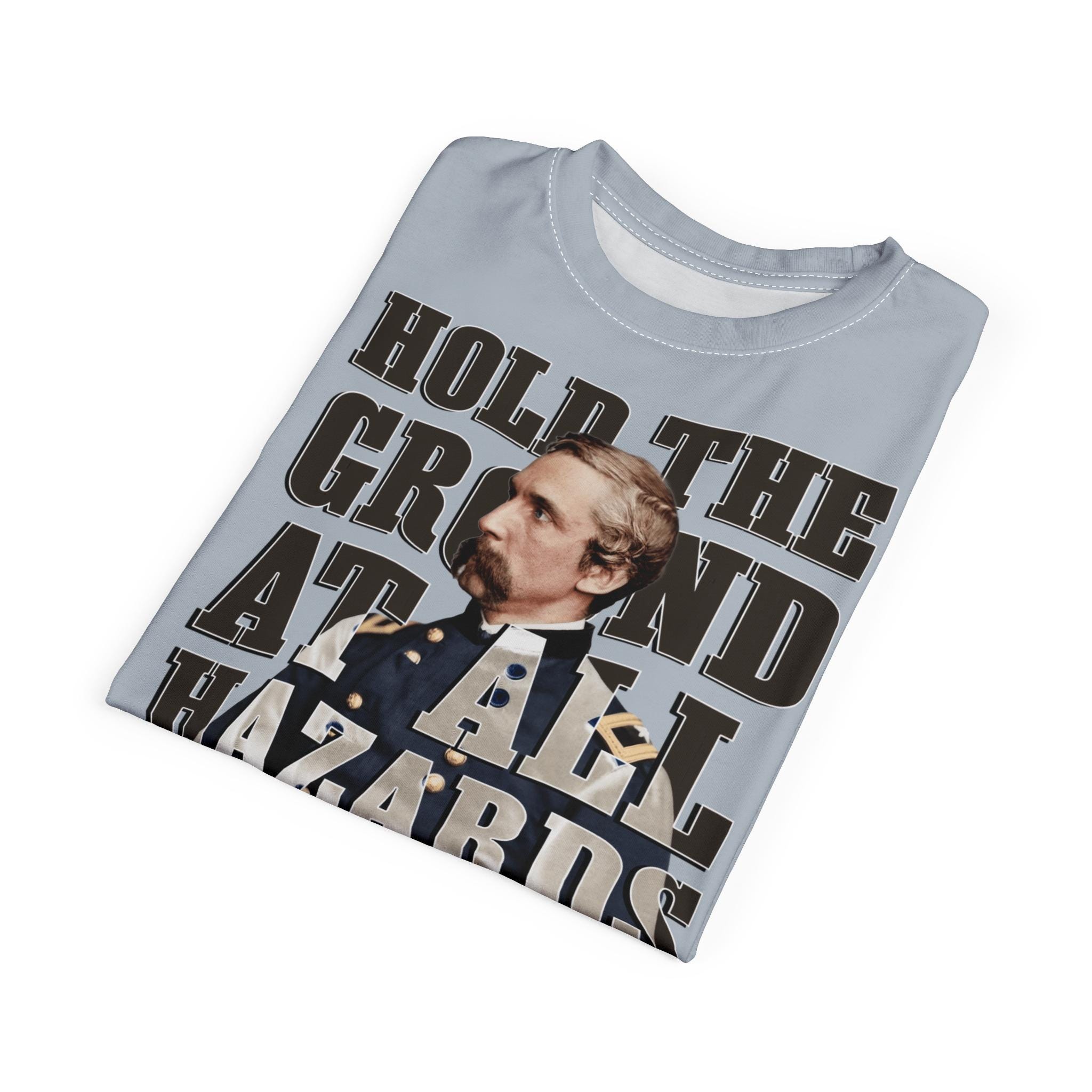 This Tee features a colorized portrait of Joshua Chamberlain with historical elements surrounding him. It gives a patriotic and historical vibe, perfect for history enthusiasts and patriotic individuals. Ideal for Memorial Day, 4th of July, and Civil War enthusiasts.