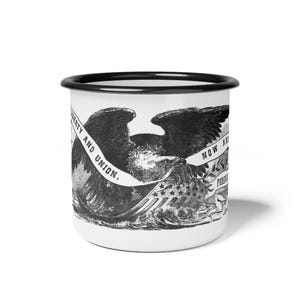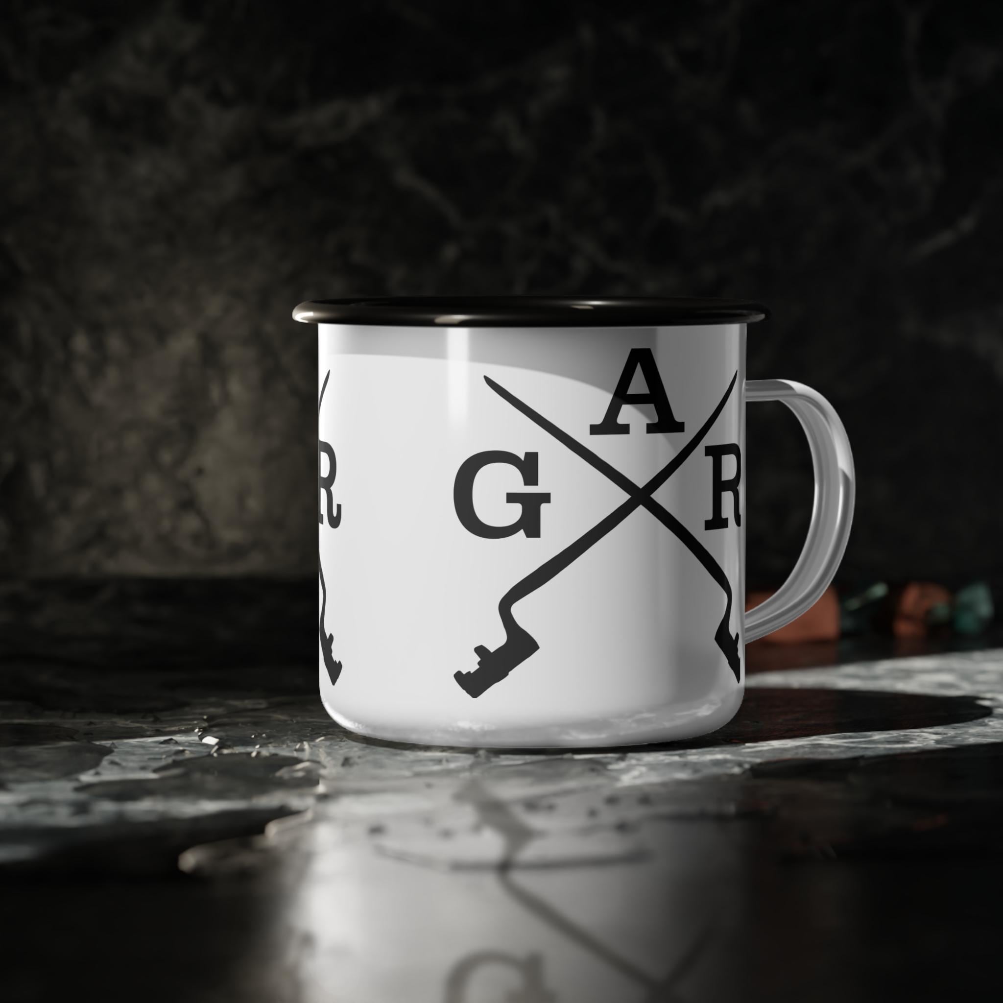 This Camp Cup features a unique design of two crossed 1861 Springfield bayonets with the letters "GAR" in Clarendon font, perfect for history buffs and military enthusiasts. The vibrant colors and durable enamel material make it ideal for outdoor adventures or cozy mornings at home. A great gift for veterans, history lovers, and collectors. Perfect for Memorial Day, Veterans Day, or any patriotic celebration.