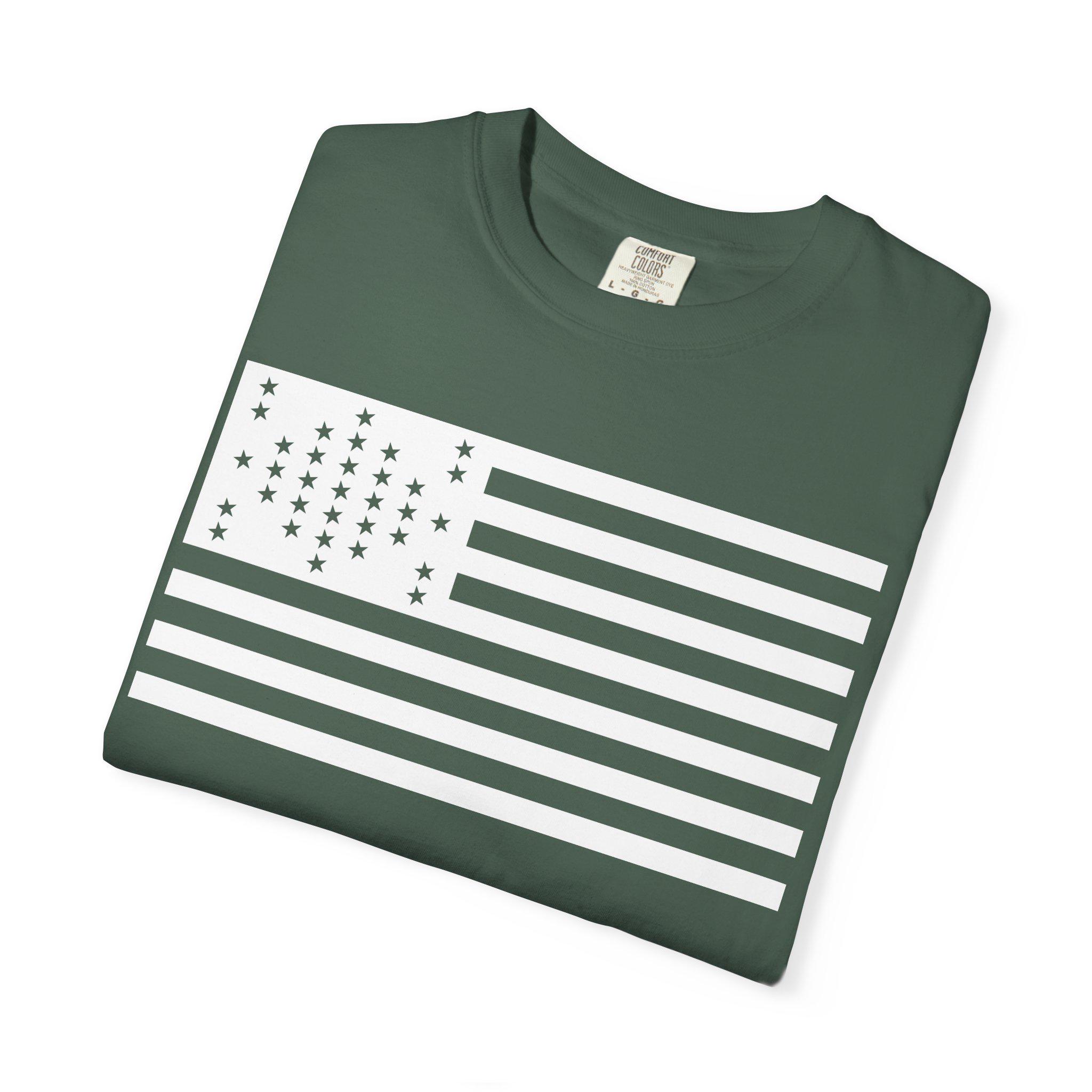 Embrace a piece of history with this 33-star flag design on a unisex garment-dyed t-shirt. This shirt exudes a vintage and patriotic vibe, making it a perfect addition to any history buff's wardrobe. Ideal for Independence Day celebrations, historical reenactments, and Civil War enthusiasts.
