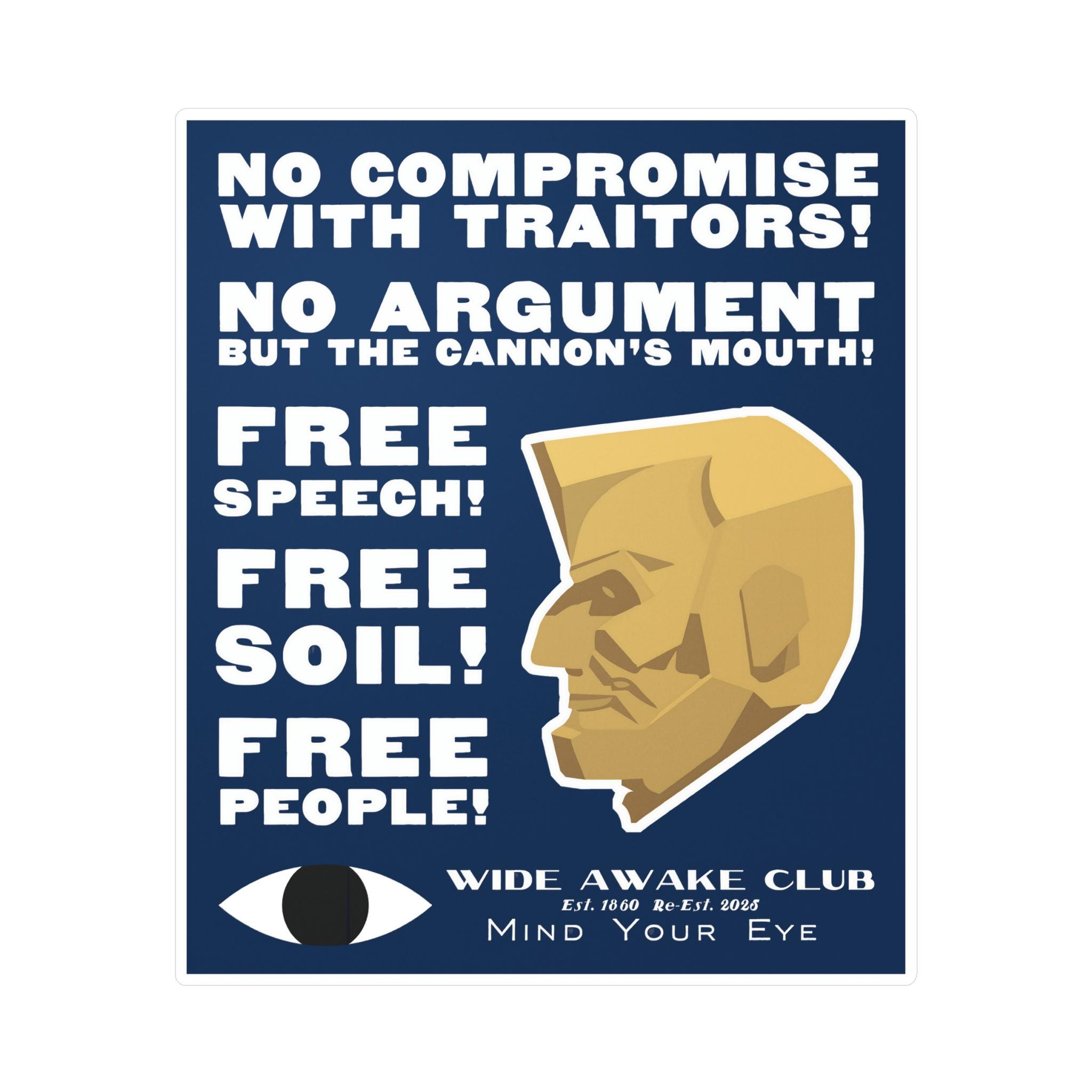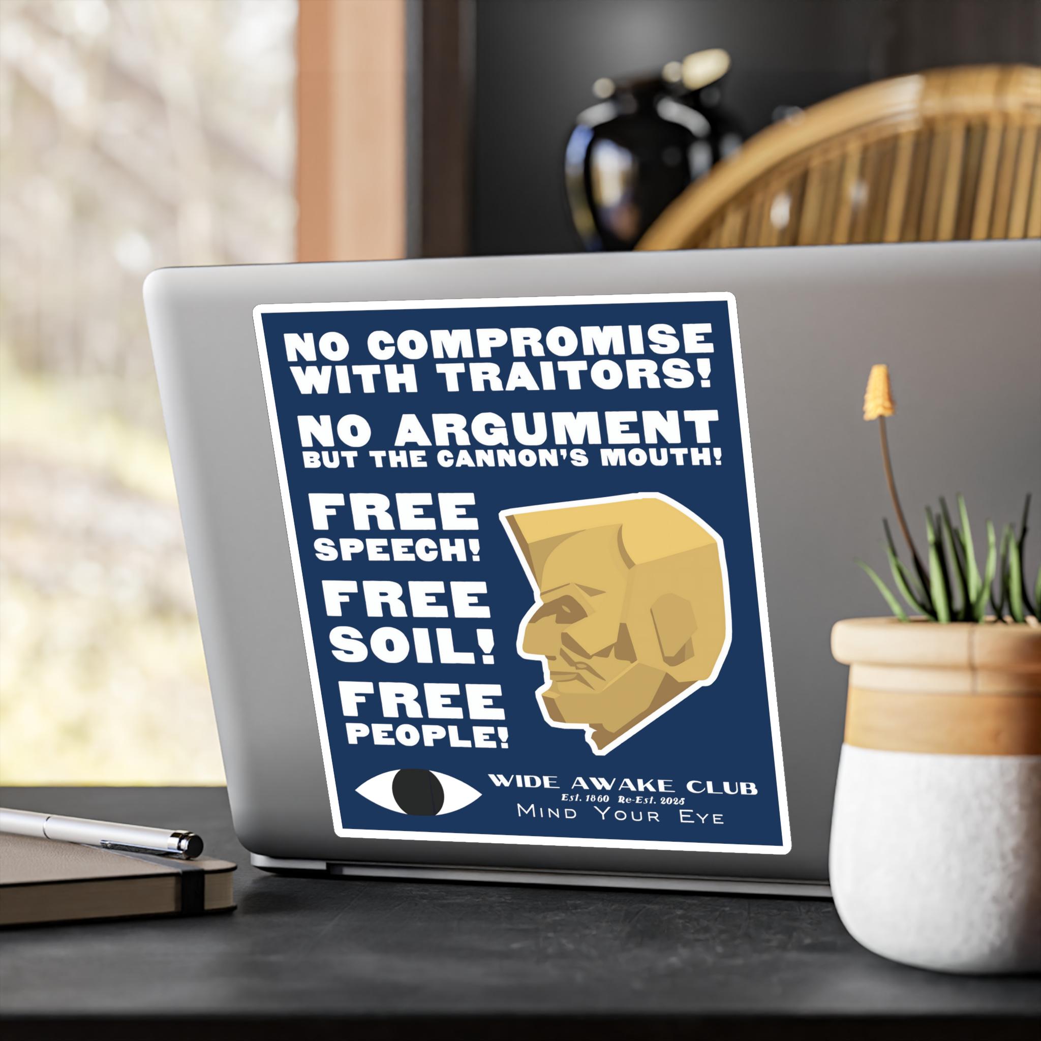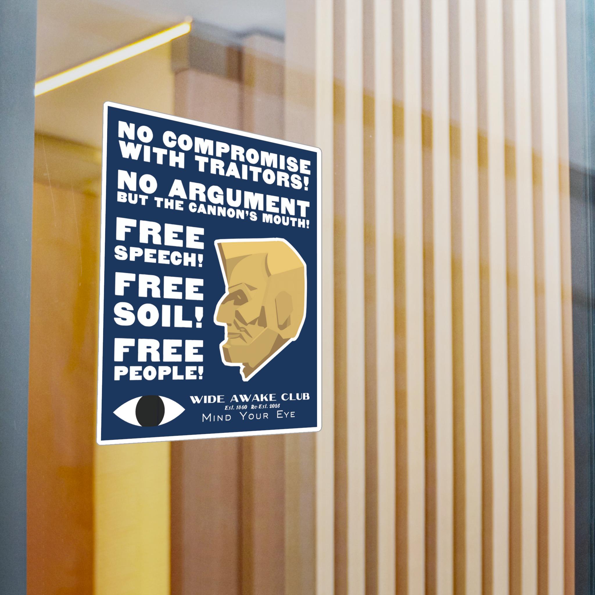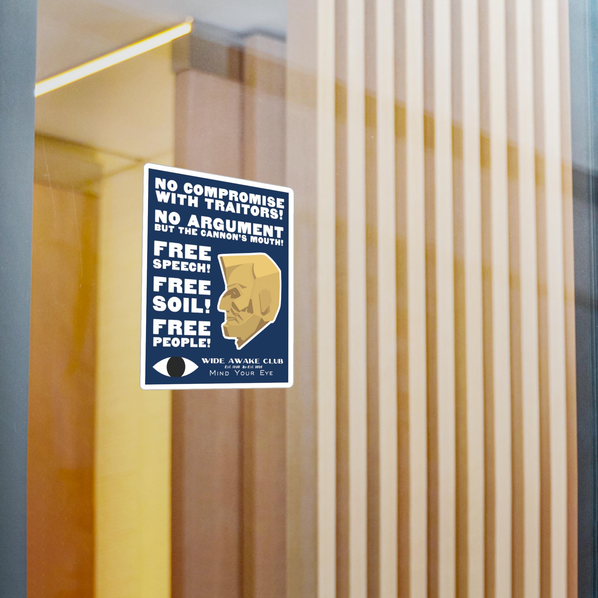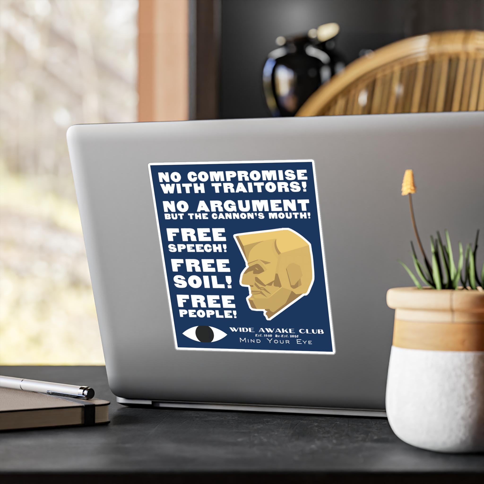 Unique anachronistic decals featuring motifs from the 1860s Wide Awakes Movement with an art deco aesthetic. Perfect for history buffs, political activists, or anyone looking to make a statement. Ideal for decorating laptops, water bottles, or car windows. Relevant for historical observances, political events, or themed parties.