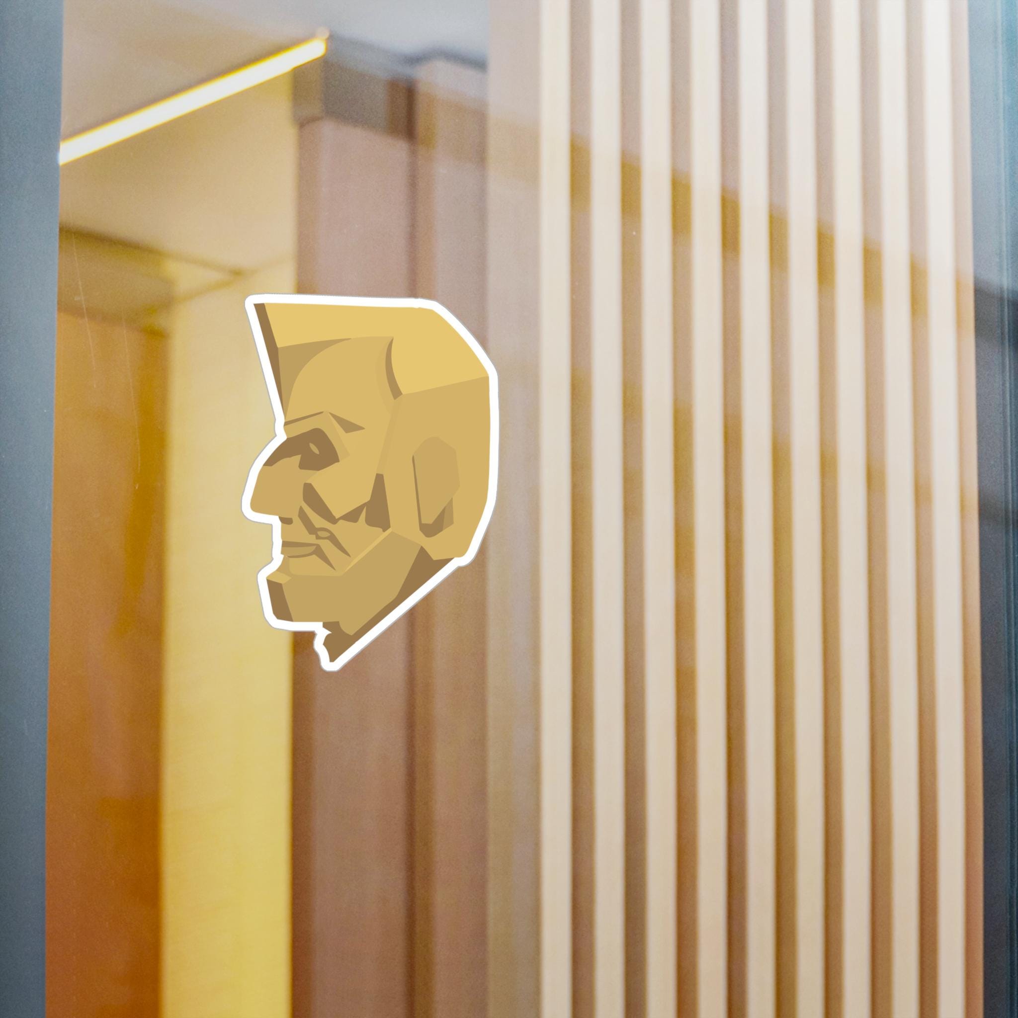 Art deco bas relief sculpture of Abraham Lincoln's head, en profil taken from a photograph of a 1938 political rally. These vibrant kiss-cut vinyl decals with satin finish are water, scratch, and UV resistant, making them perfect for outdoor settings. Ideal for history enthusiasts or political junkies, these decals can be a unique addition to your laptop, water bottle, or car. Perfect for Fourth of July decorations or political events.