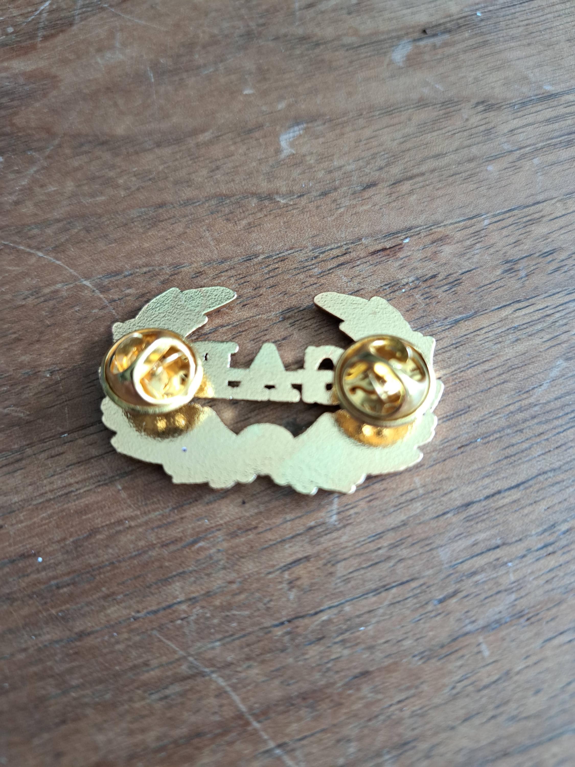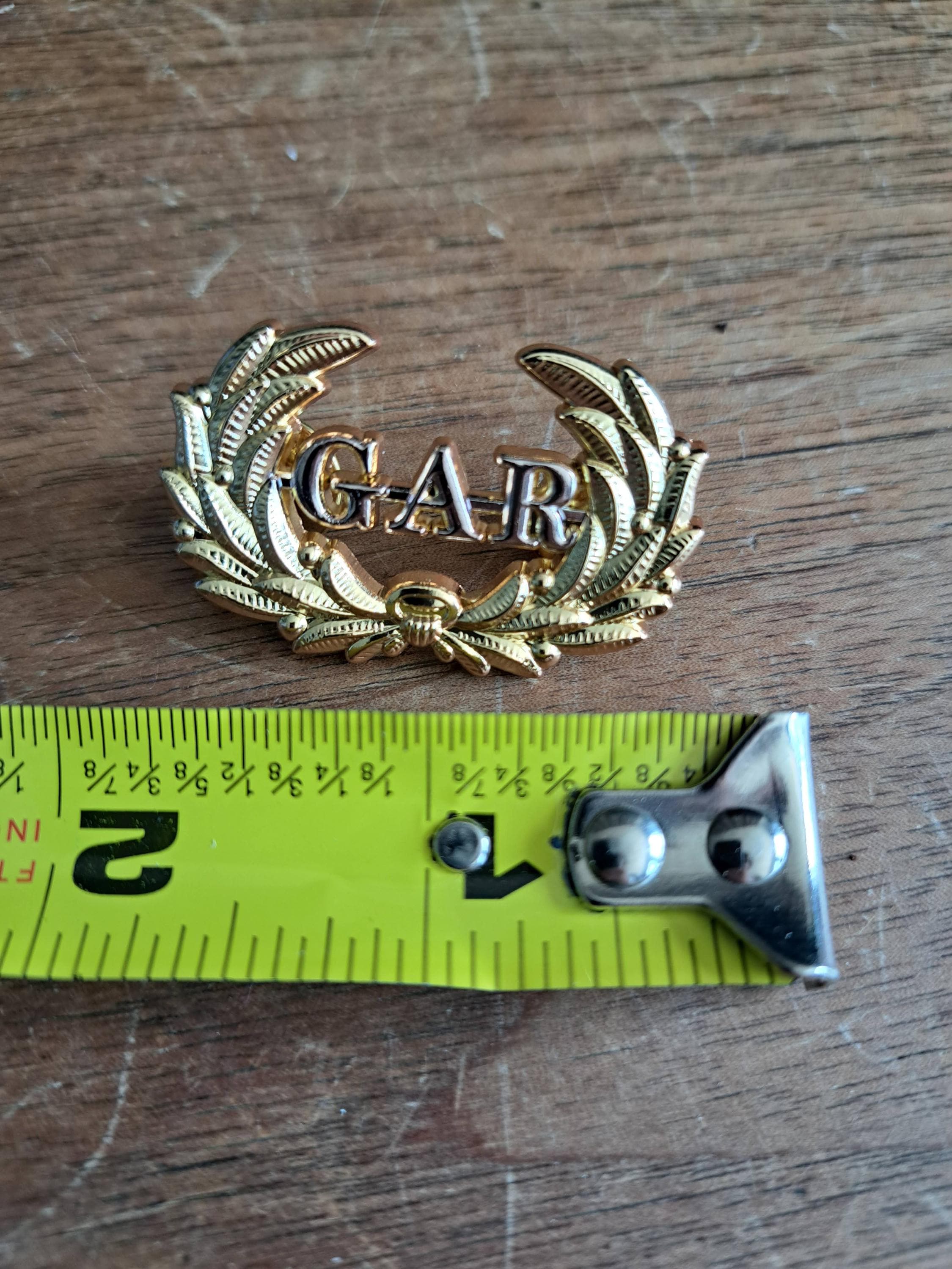 Very nice, well-made item. It is a smaller size than my original GAR/Wreath pins but that is fine as it is so nicely made and fits a forage cap perfectly. I am also using one for a black mourning ribbon/cockade. I have a couple from another vendor but it is very heavy and has plastic letters, these have metal letters that match the wreath.