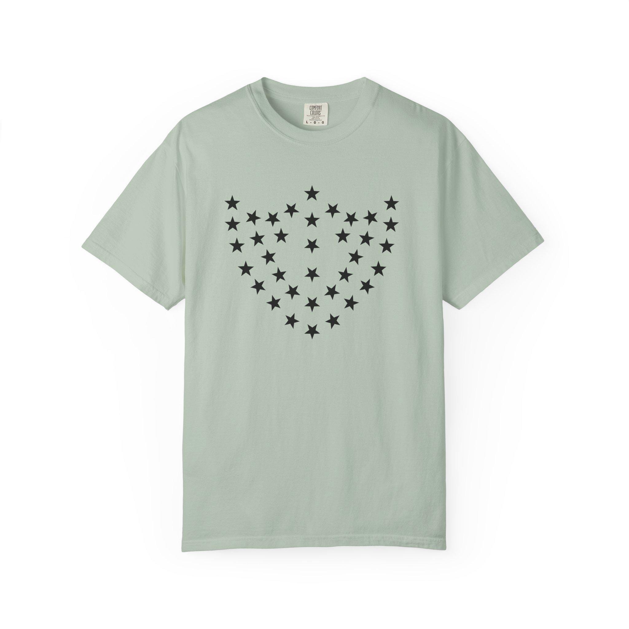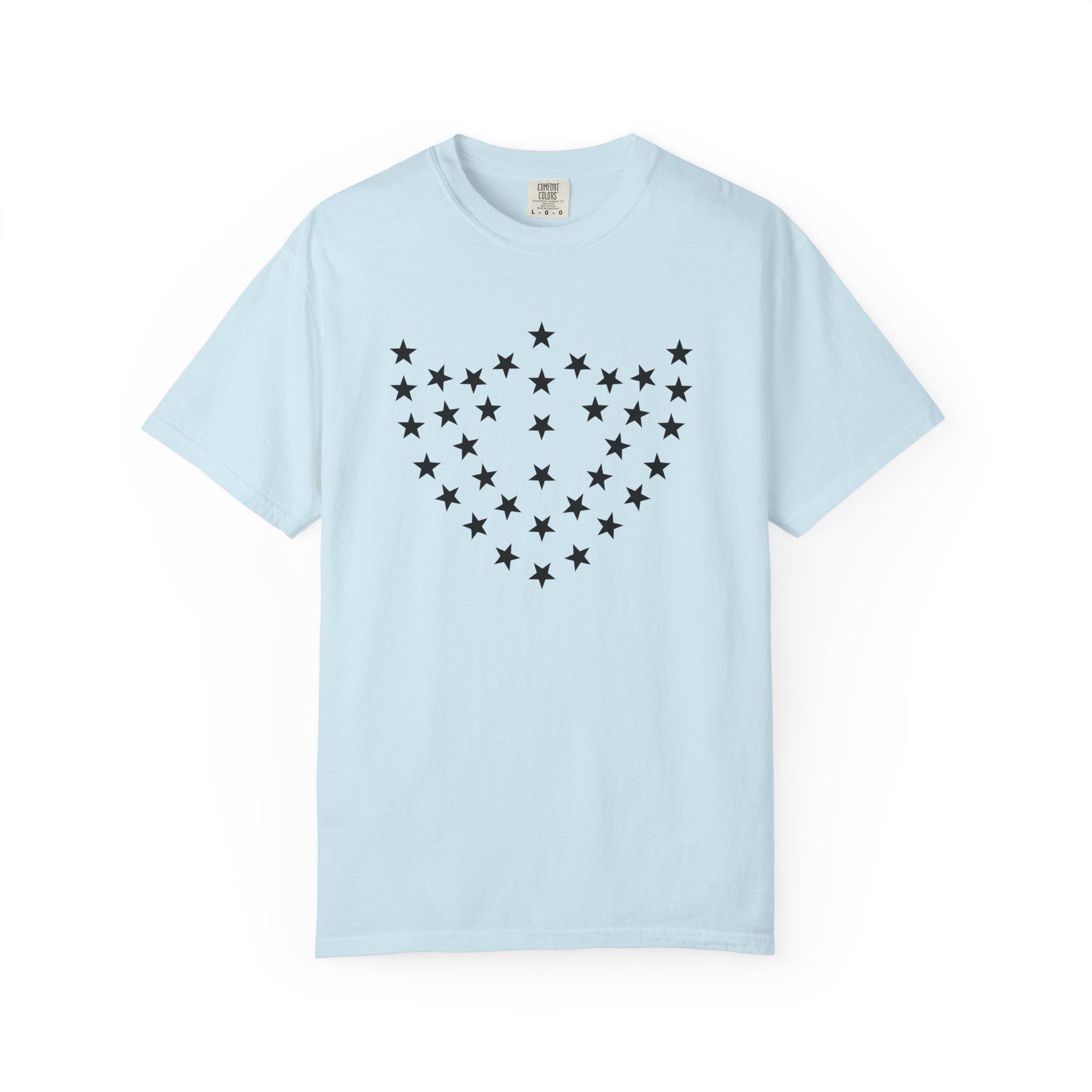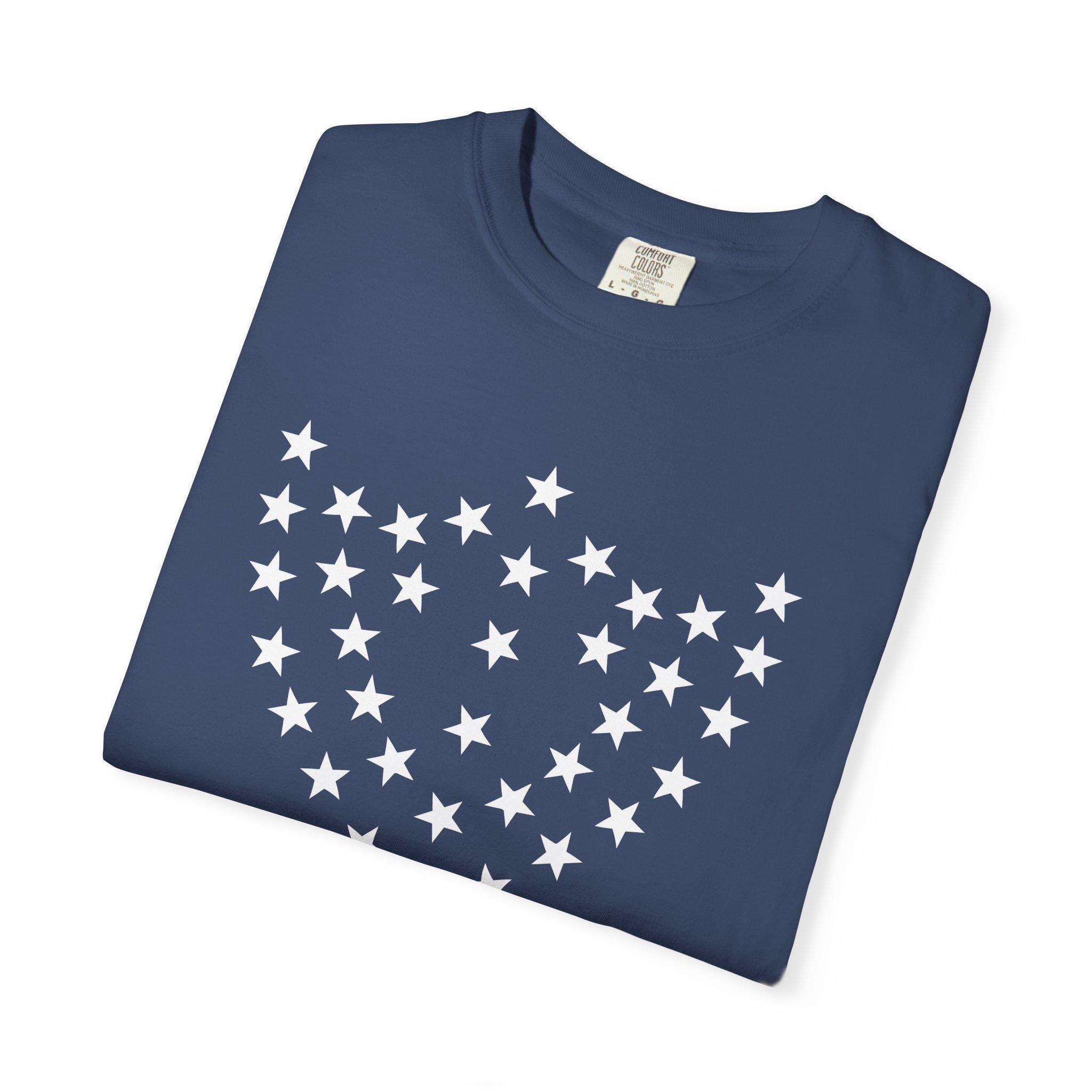 A vintage-inspired unisex garment-dyed T-shirt featuring a detail from the flag of the 23rd Corps under General William T Sherman. The design consists of 35 stars arranged into the shape of the corps badge (a shield), giving off a historical and patriotic vibe. Perfect for history buffs, Civil War enthusiasts, and anyone who appreciates unique and eye-catching graphic tees. Ideal for wearing on patriotic holidays, historical reenactments, and casual outings.