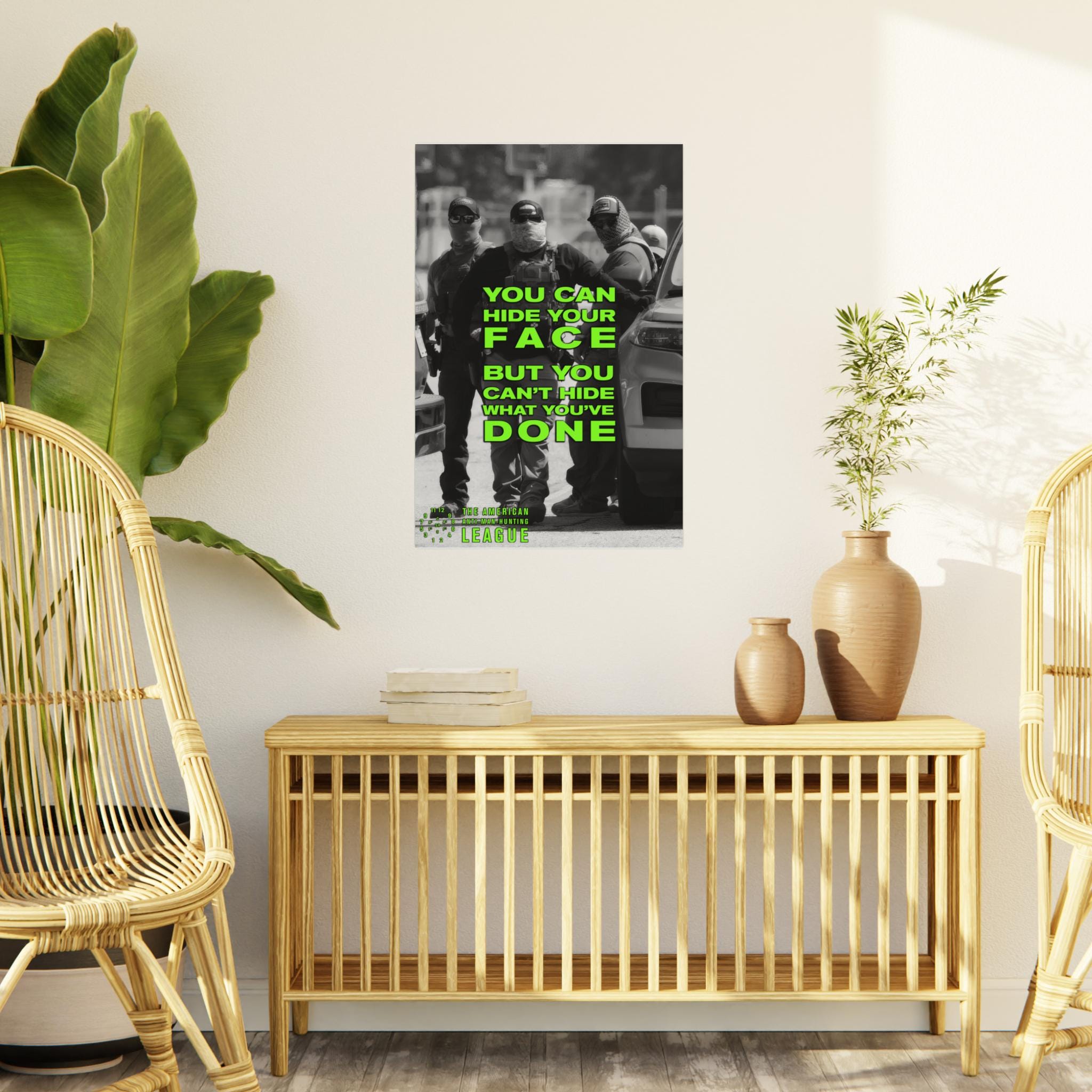 By rebranding this historical symbol as "The American Anti-Man-Hunting League," the poster argues that the moral imperative to resist the hunting of human beings has not vanished. It has simply found a new focus. This artwork is a call to that same spirit of direct, compassionate action.