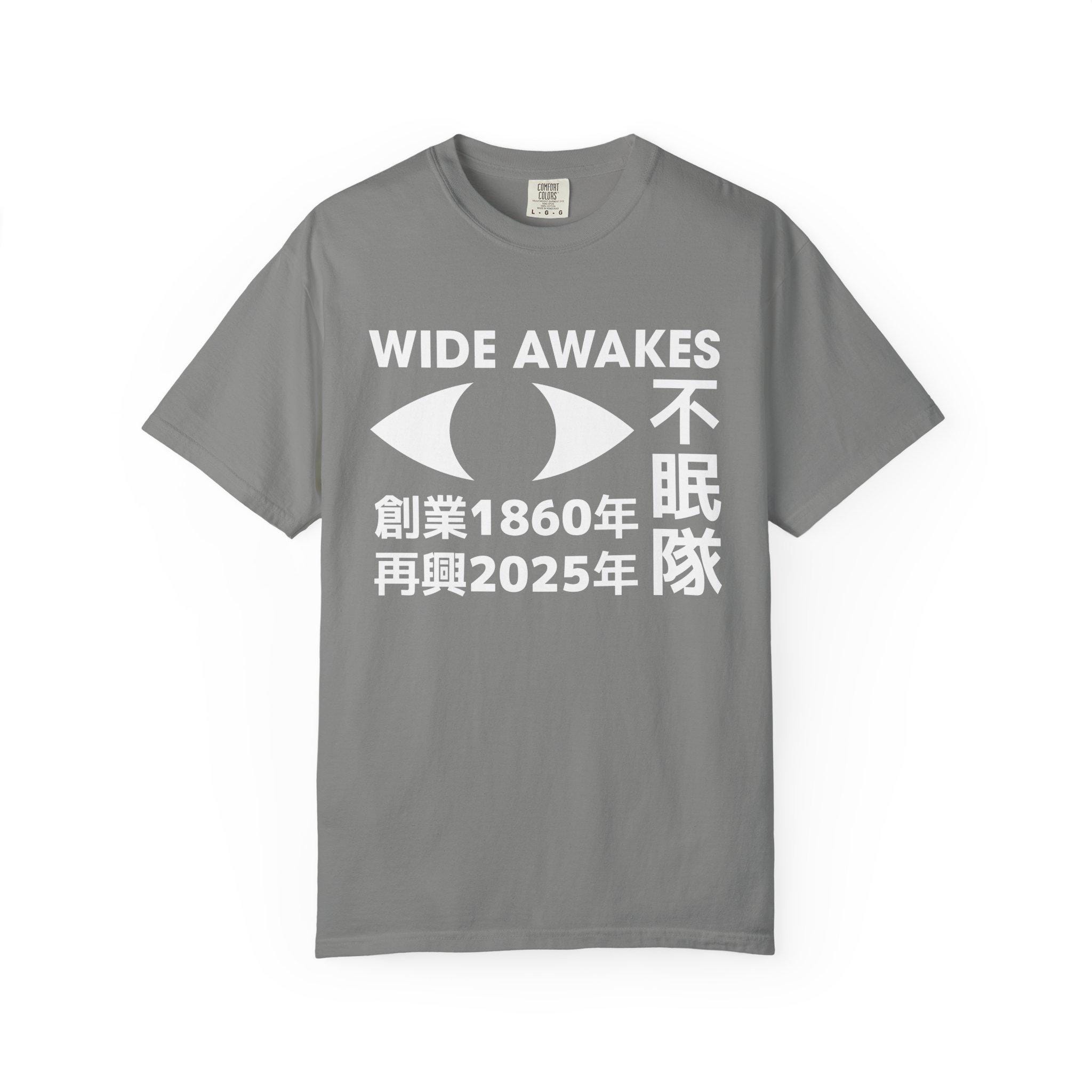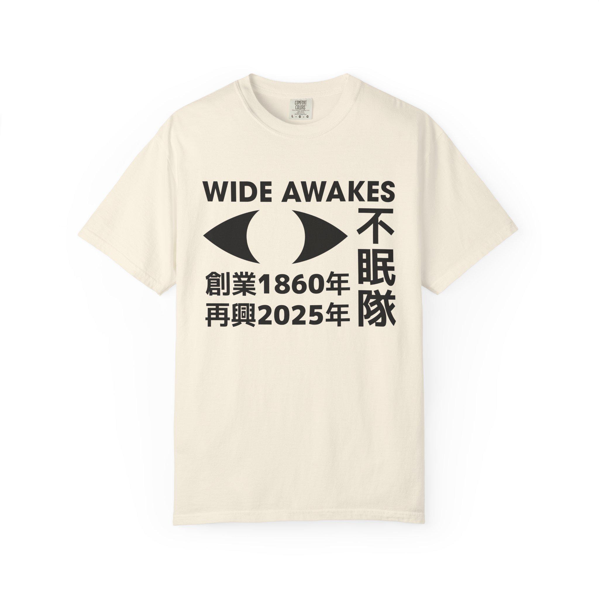 This t-shirt reimagines the 19th-century Wide Awakes movement as a modern brand, blending minimalist Japanese graphic design with a powerful historical legacy.