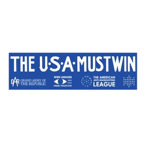 Flags bearing the mottoes "All Men Are Created Equal" and "Stand by the Declaration."