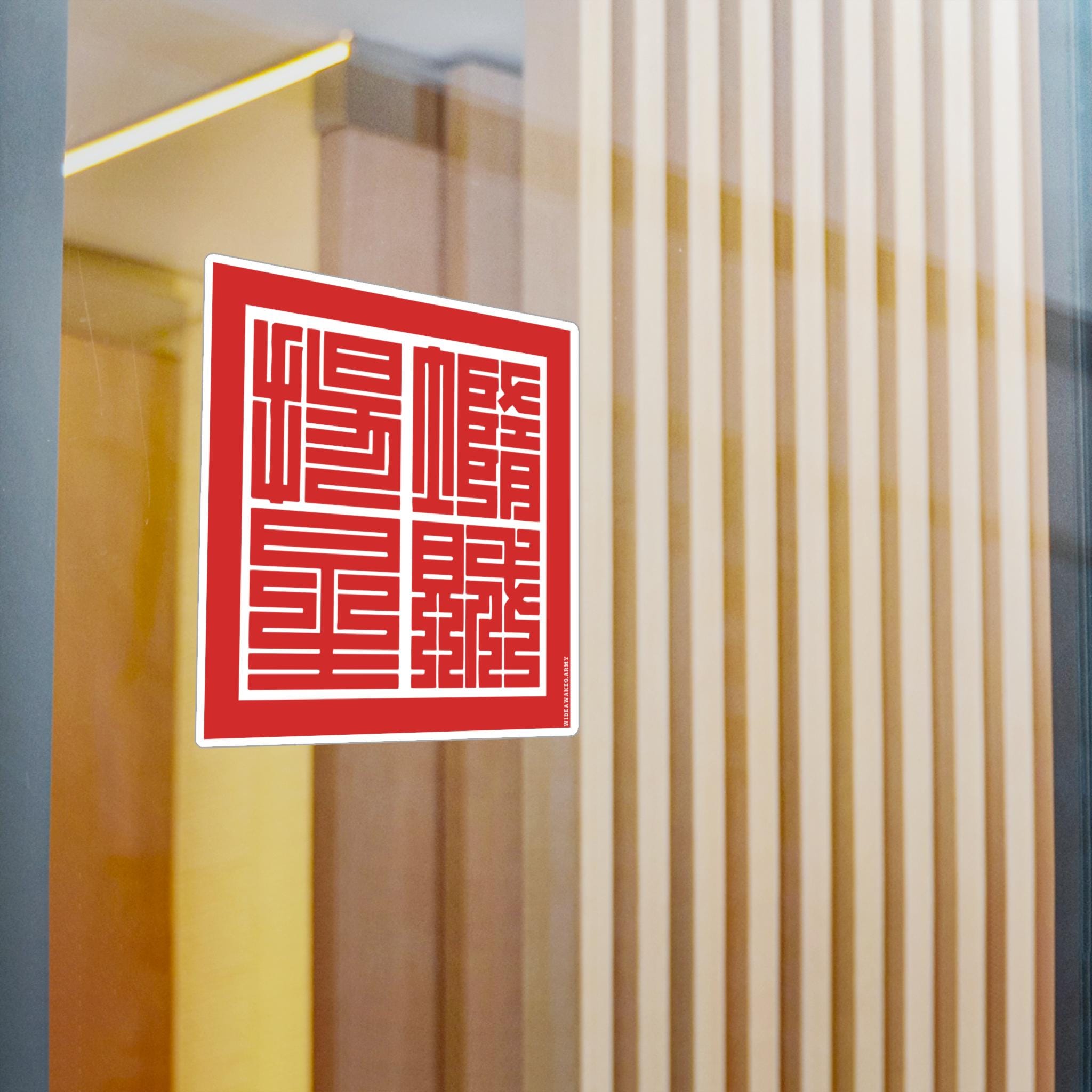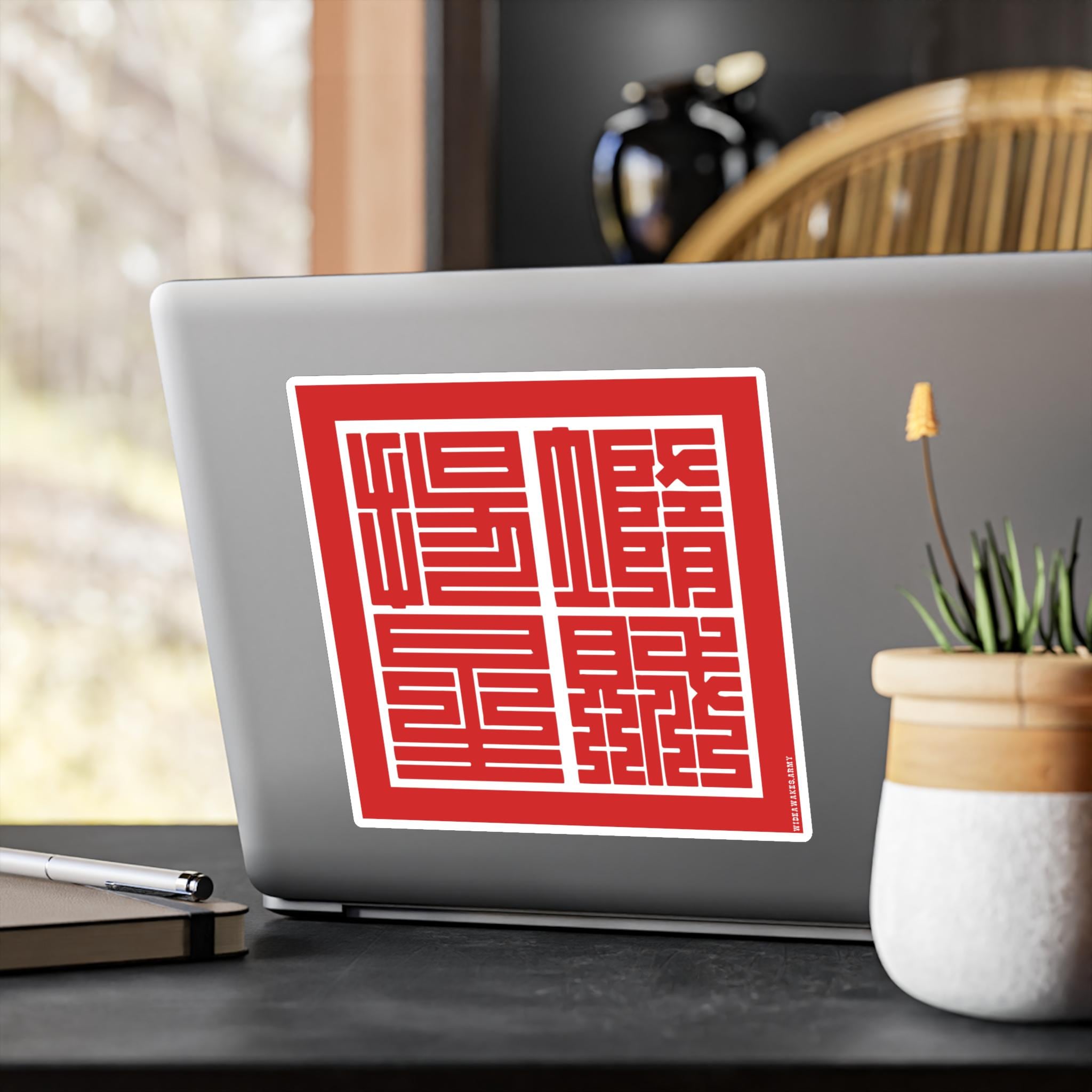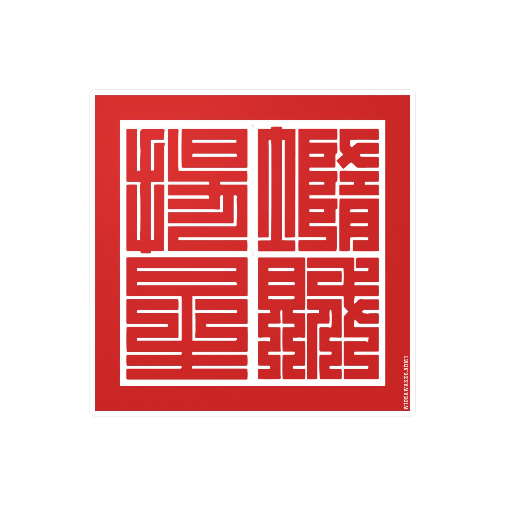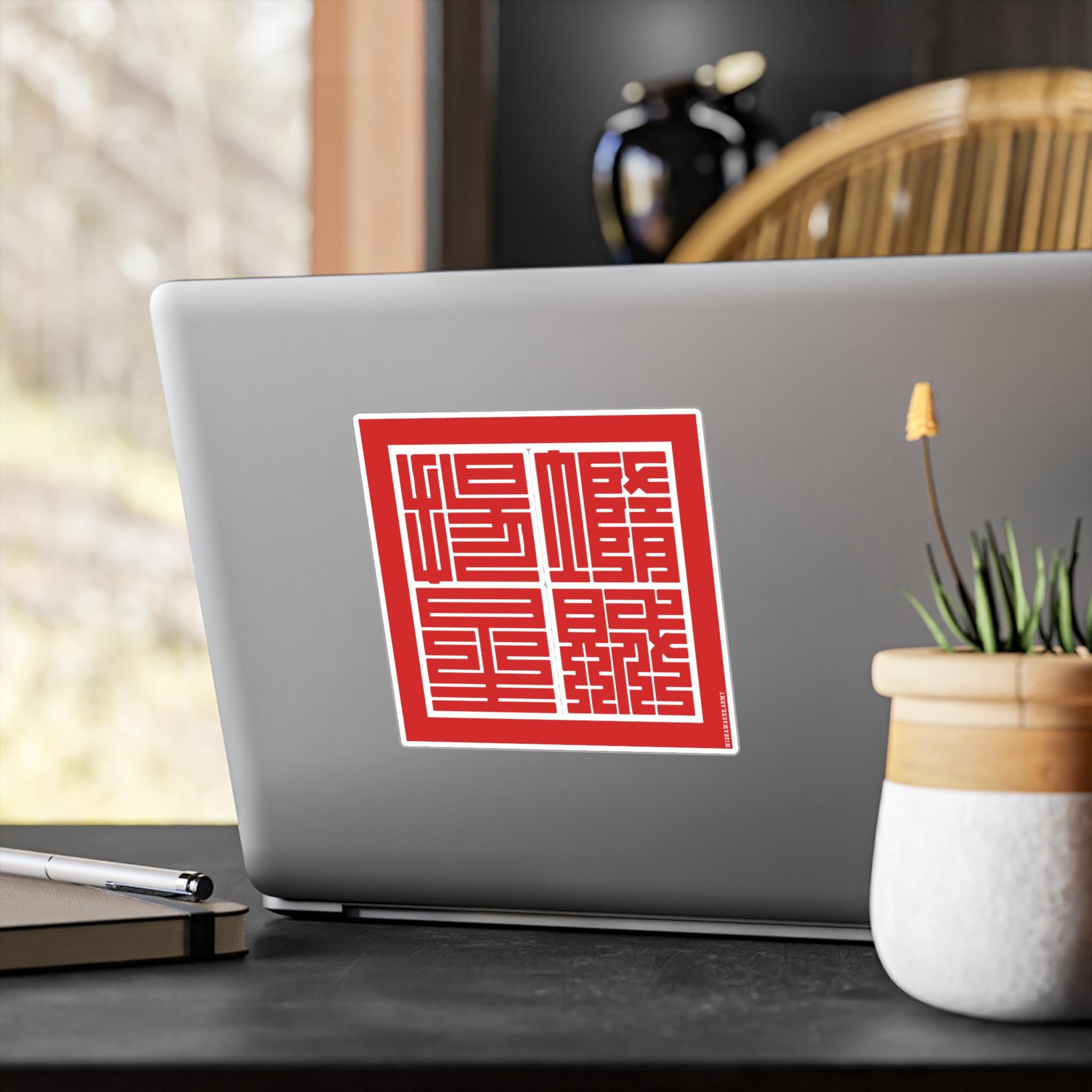 This durable vinyl decal features the yojijukugo 堕賊揚星 (Dazoku Yōsei), a Japanese rendering of the Union Army's motto, "Down with the Traitor, Up with the Stars." The highly stylized Kakuji script, used for official seals in 19th-century Japan, gives the phrase the weight of a formal decree.