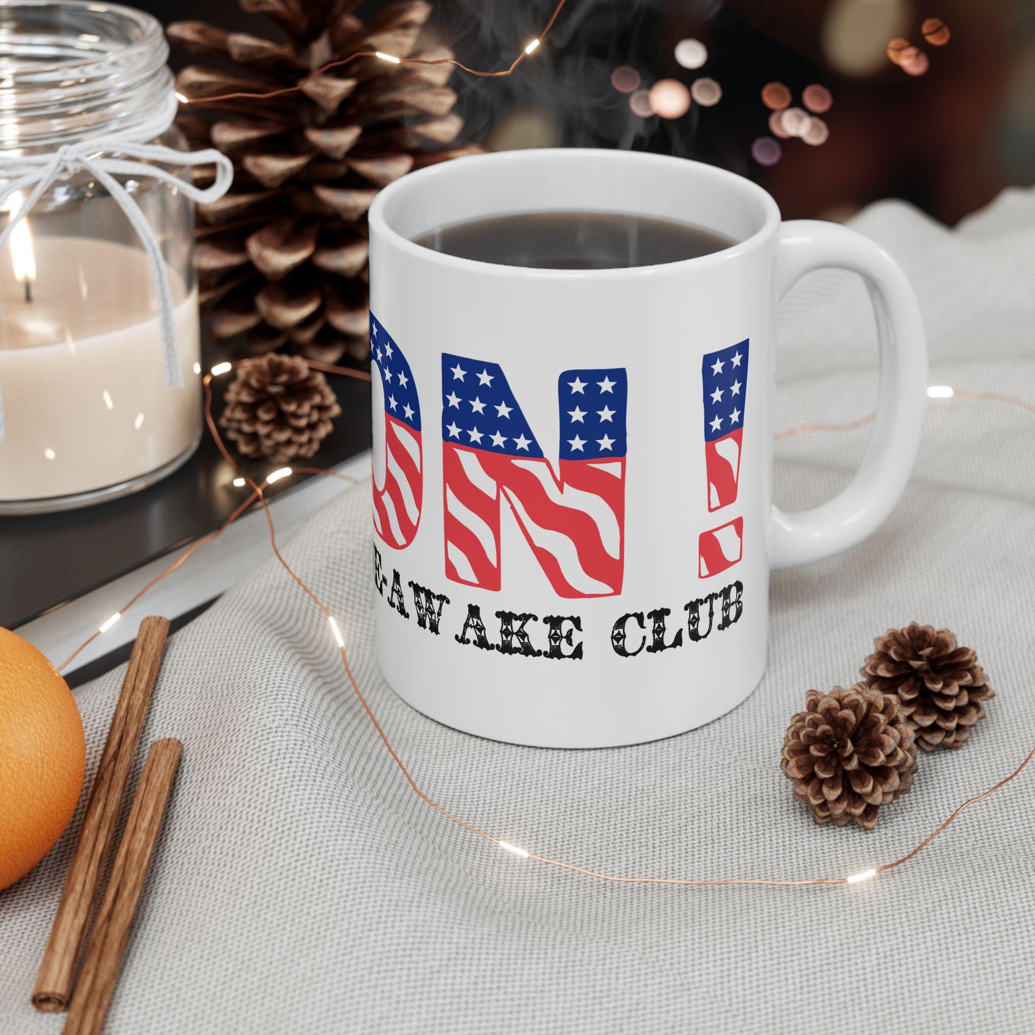 Start your day with a bold, three-part statement about American history and modern politics. This ceramic mug is a deliberate act of reclaiming foundational symbols that have been misused or abandoned.