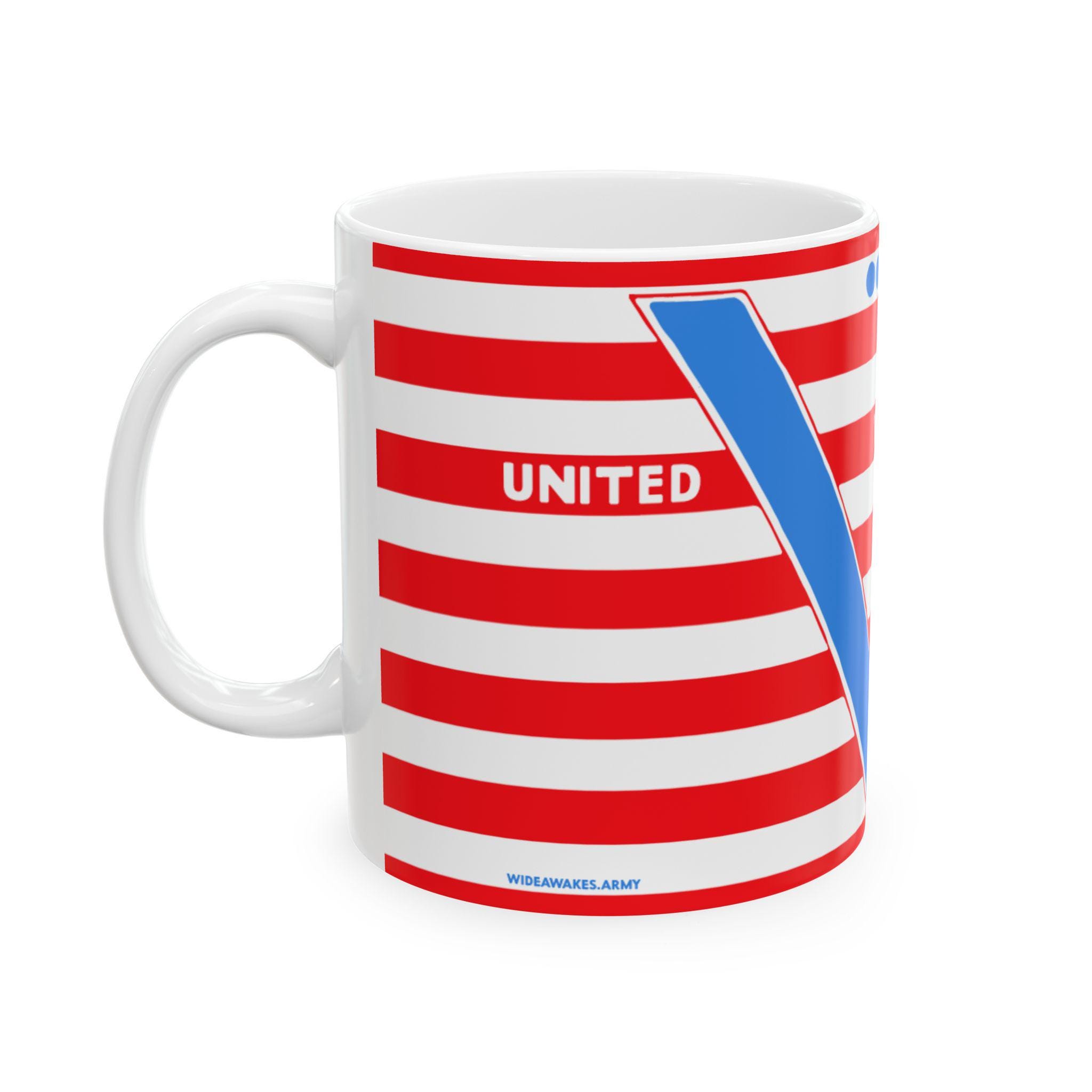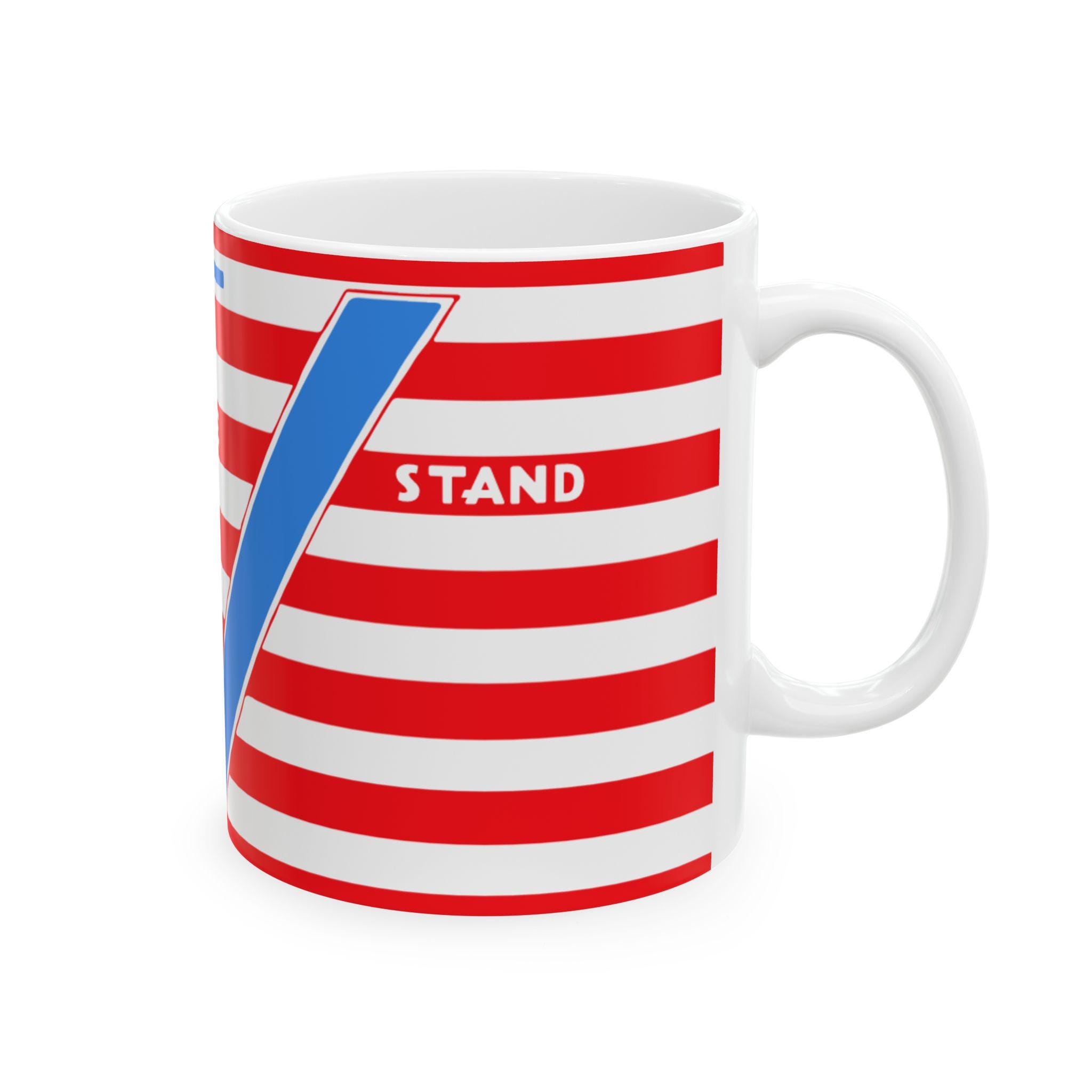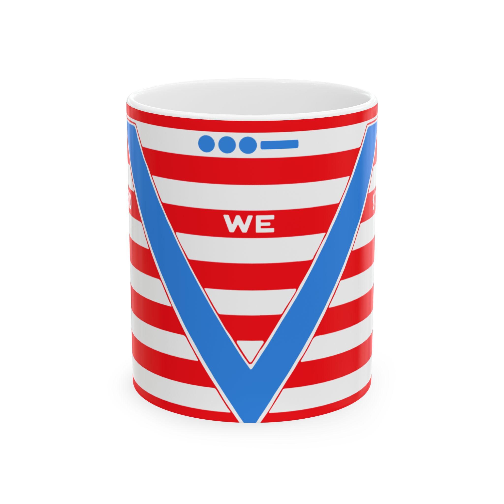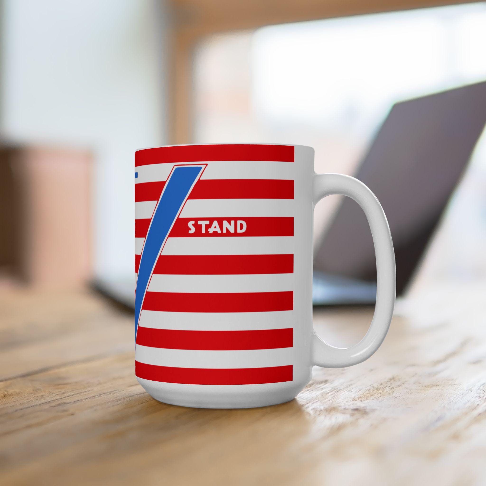 Start your day with a powerful piece of home front history. This ceramic mug features a high-quality restoration of a patriotic postcard from 1941, originally published by the famed Tichnor Brothers of Boston. The design is built around the iconic "V for Victory" symbol, a sign of resistance used by Allied nations across the globe. The message is layered: the bold blue "V" is reinforced by its Morse code equivalent—"dot dot dot dash"—above it. Between them lies the timeless motto that defined the era: "UNITED WE STAND." Available in a standard 11oz or a generous 15oz size, this sturdy ceramic mug is a unique tribute to a generation that faced down tyranny together.