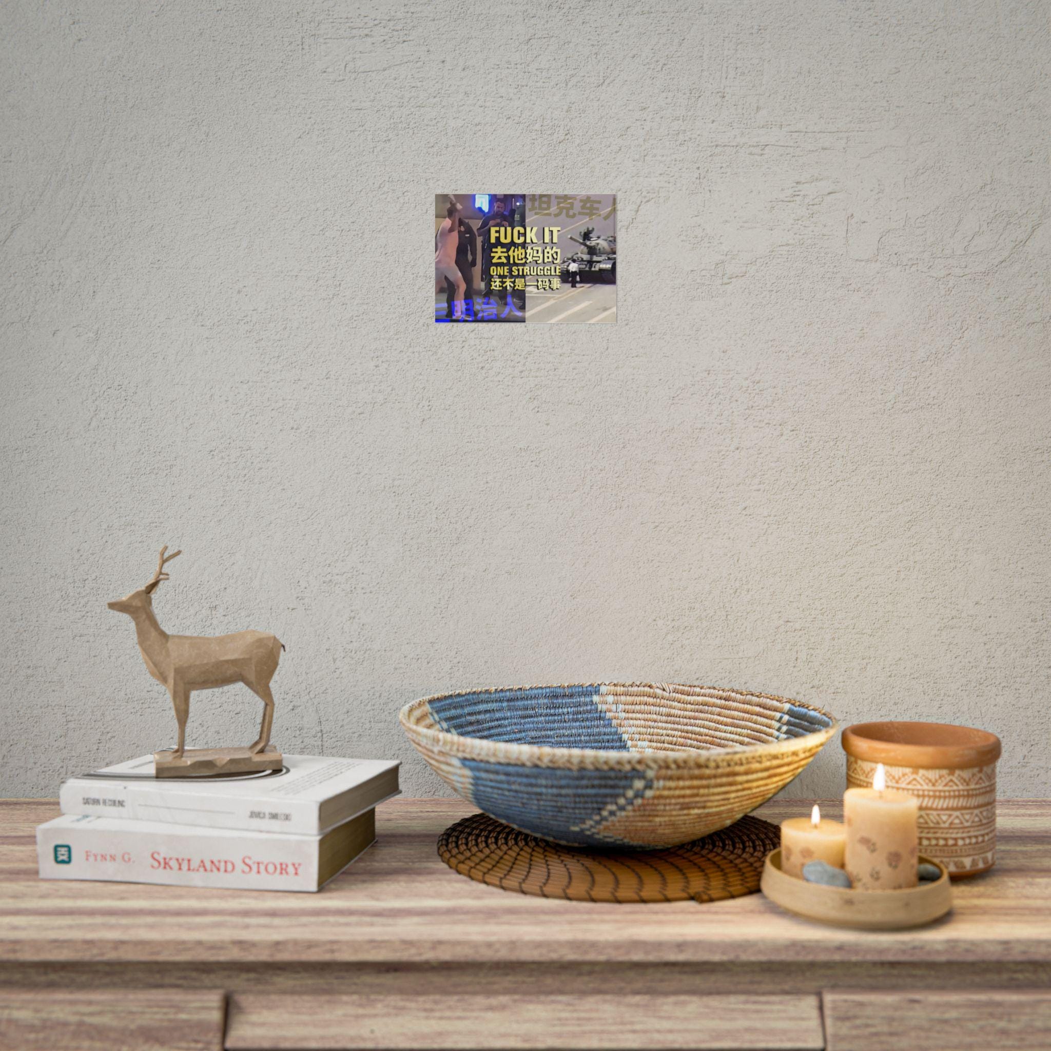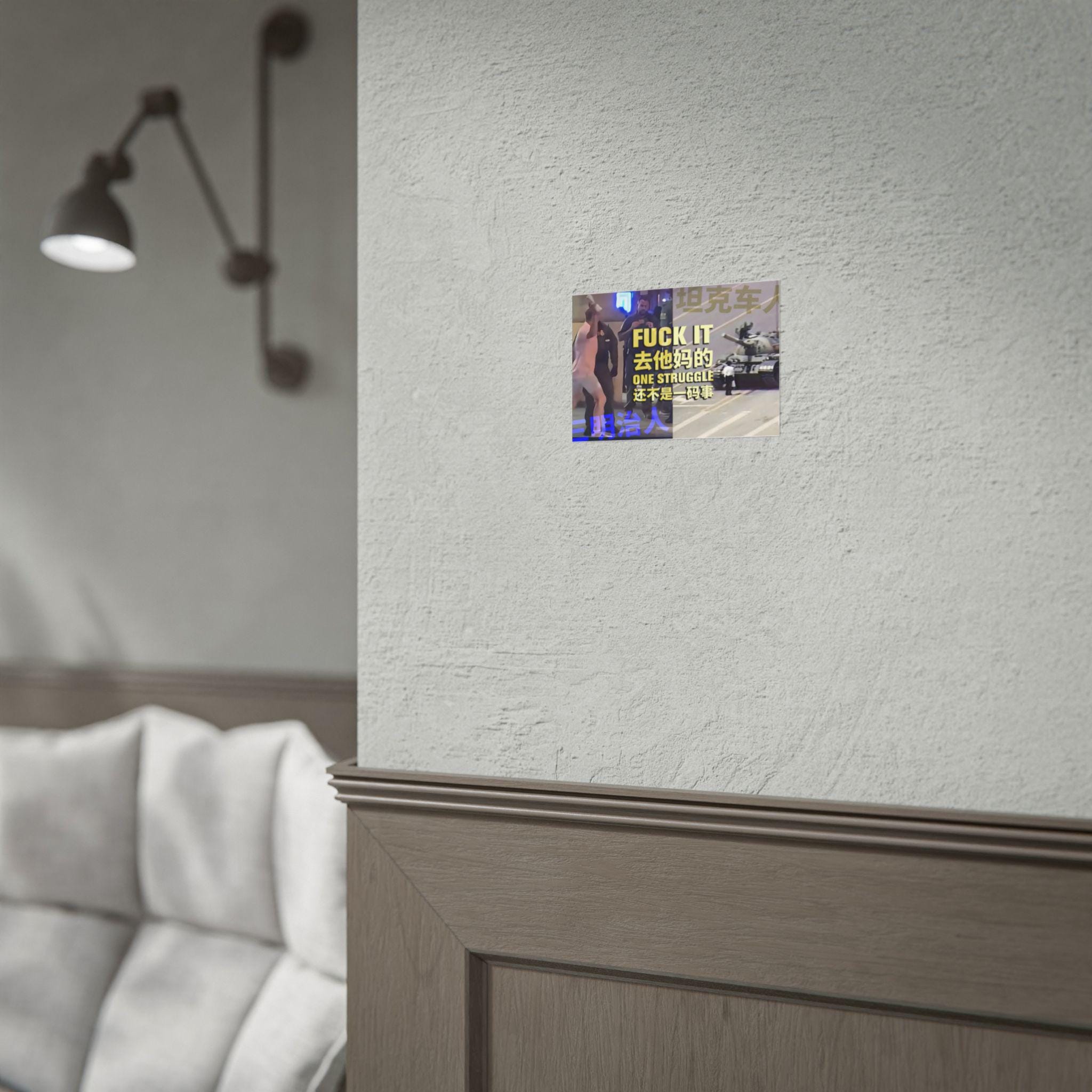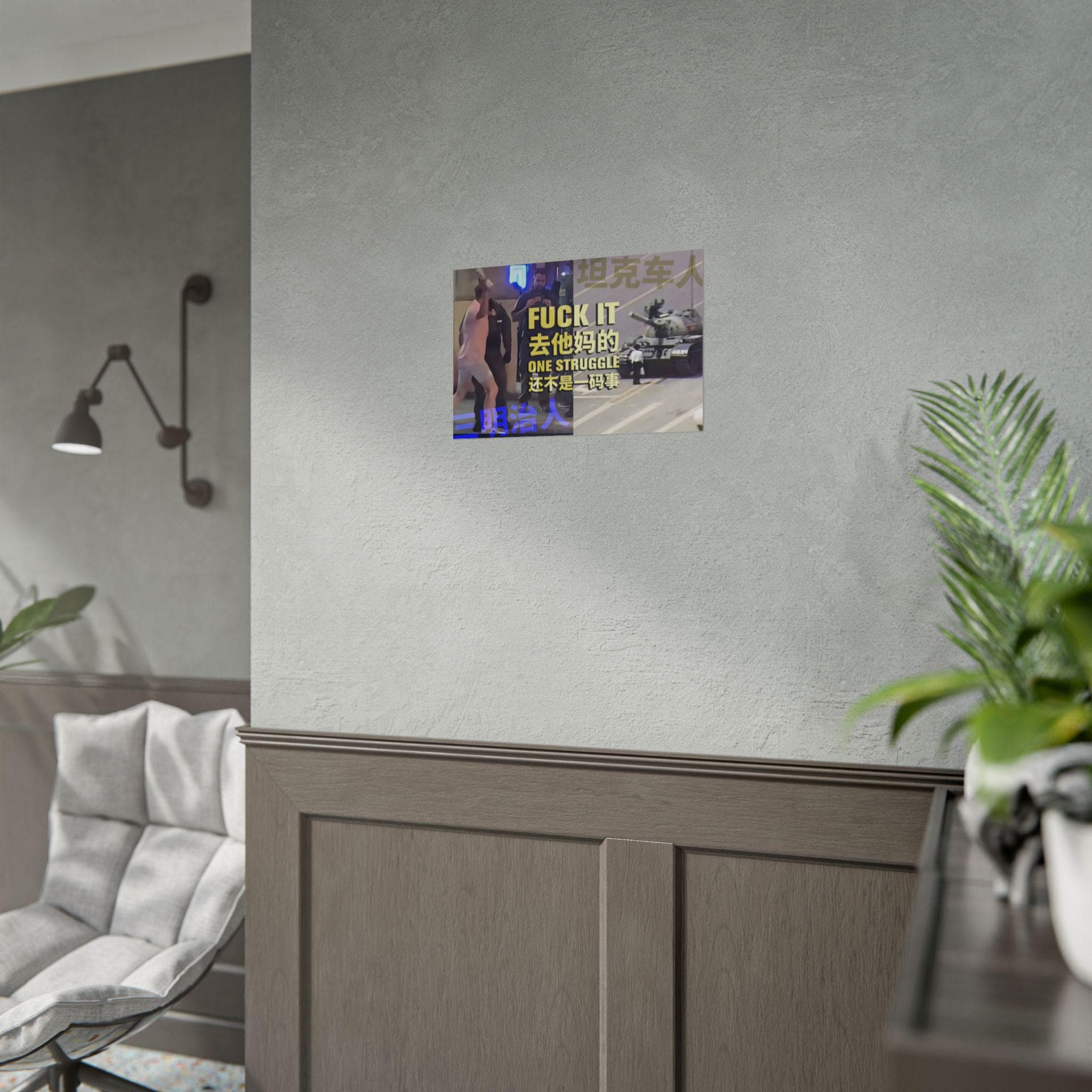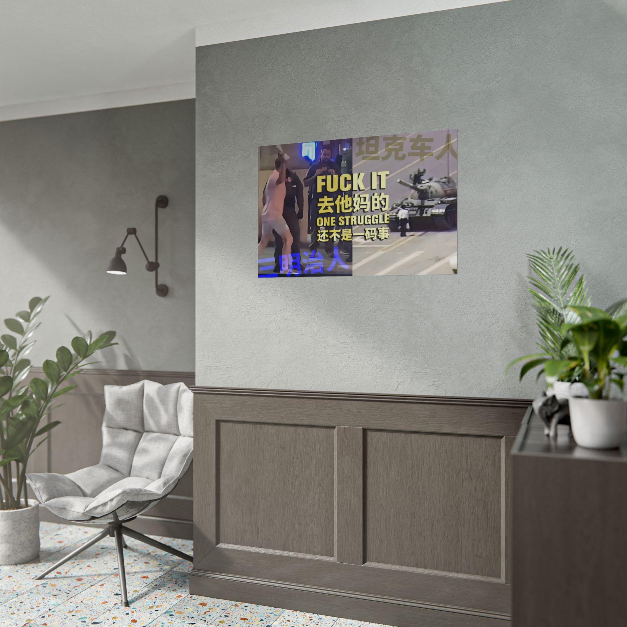 The Message: With raw, bilingual text including "FUCK IT" and "ONE STRUGGLE," this piece makes a bold and uncompromising argument that the spirit of defiance against state overreach is a universal human trait, regardless of the scale or the stakes.