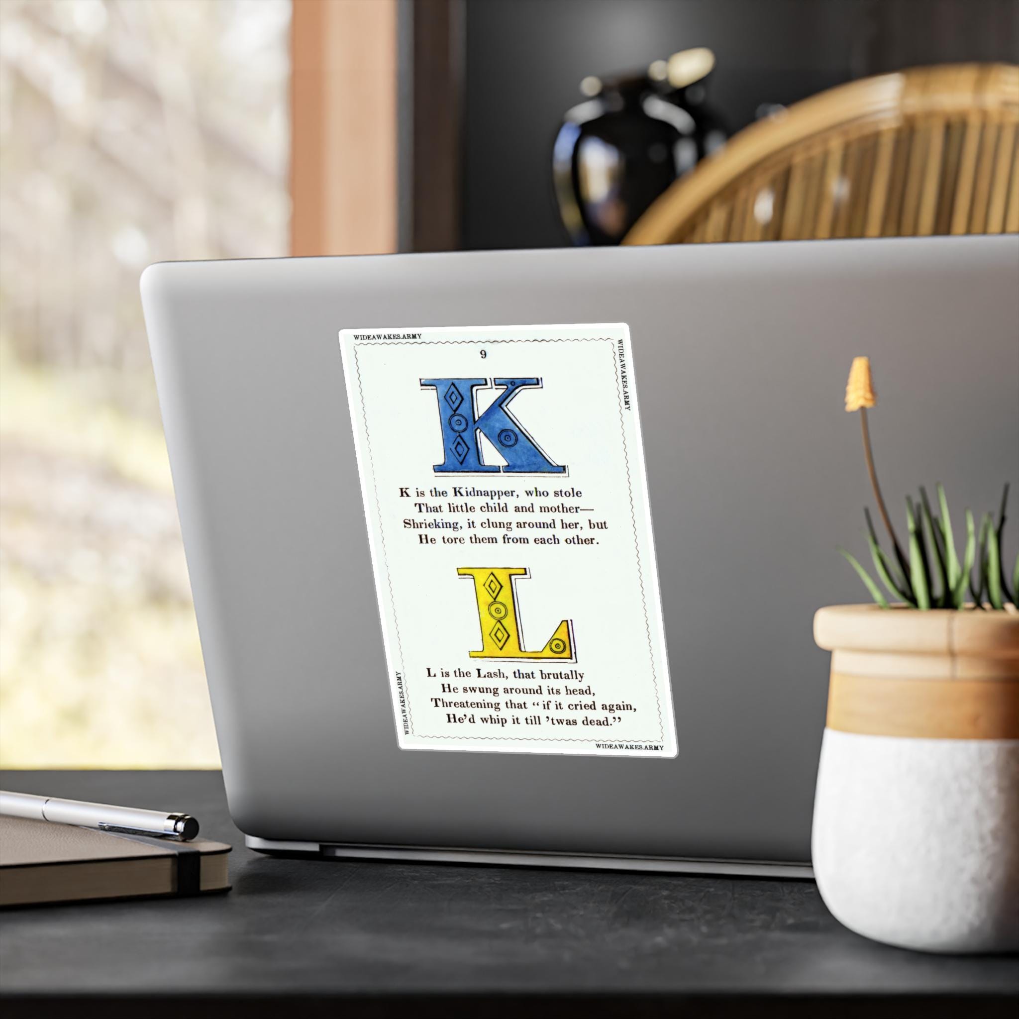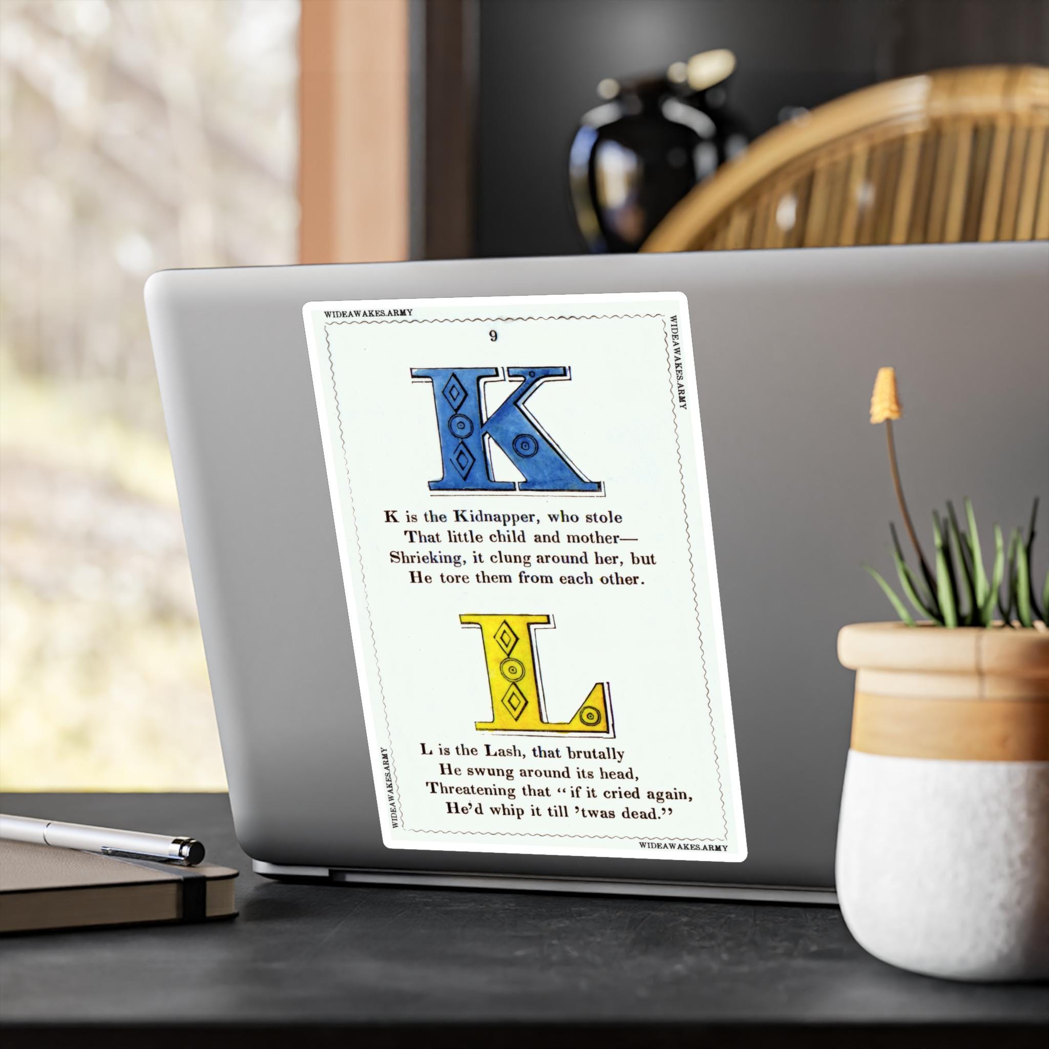 This durable vinyl decal features a direct, powerful excerpt from "The Anti-Slavery Alphabet," an abolitionist children's book published in 1846. Created to educate and stir consciences, this specific page starkly illustrates the barbarity of slavery. The verses read: