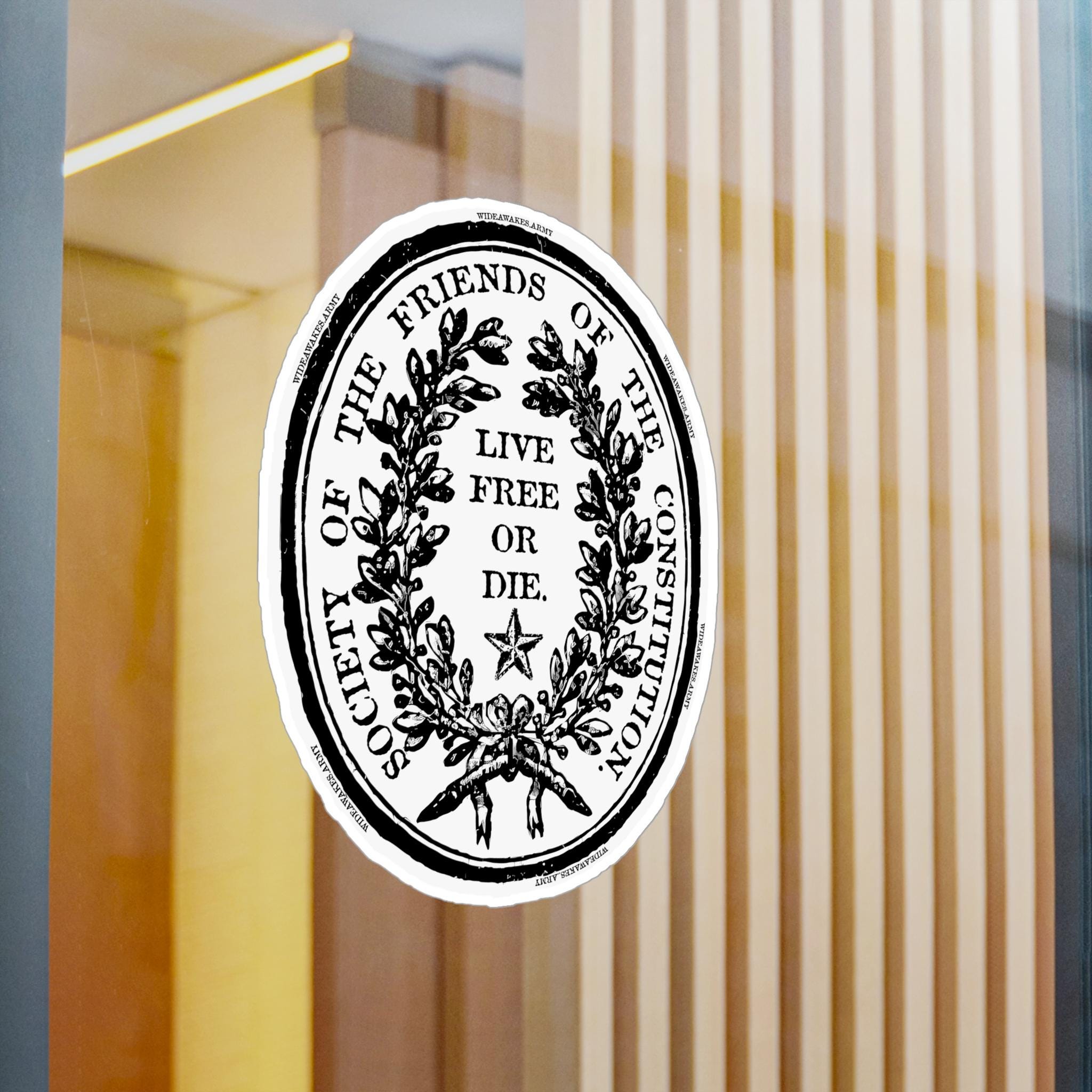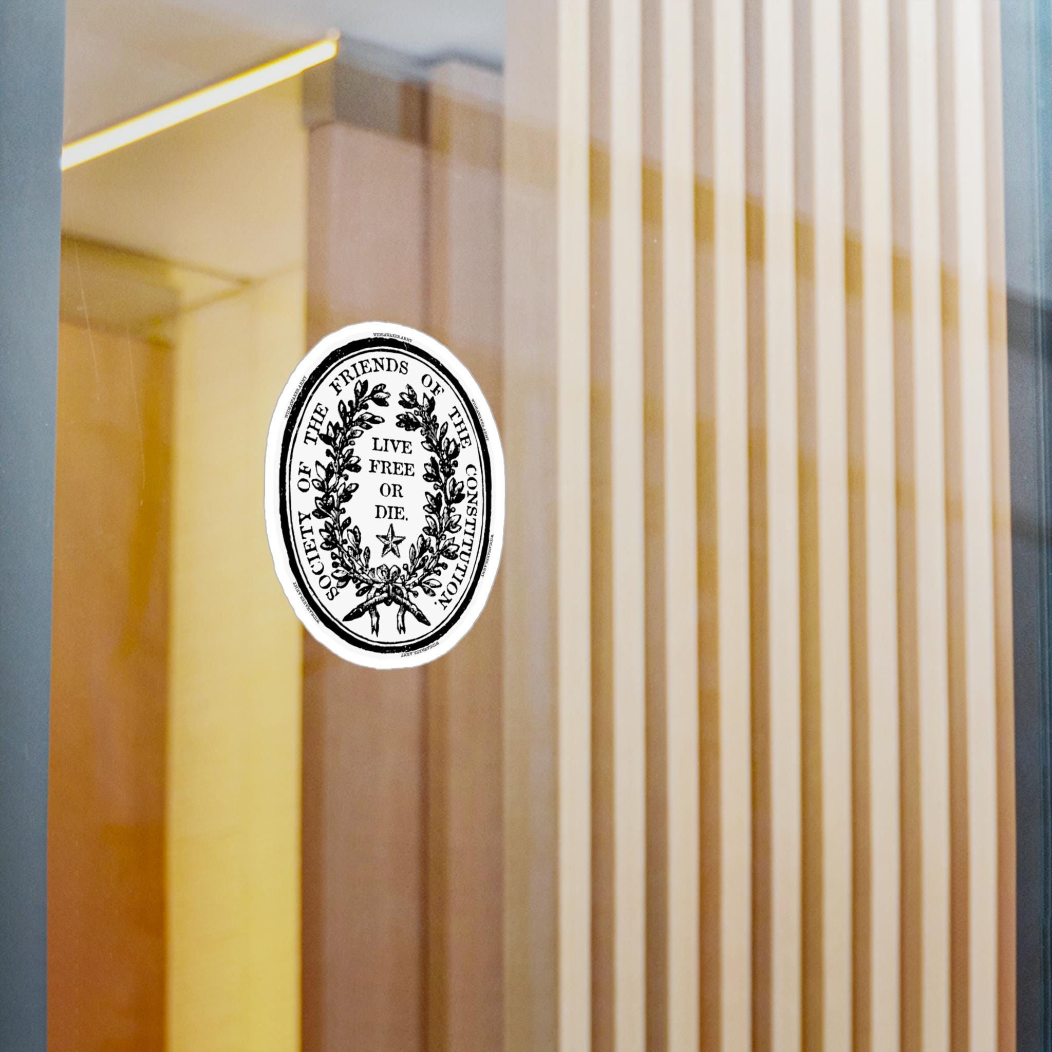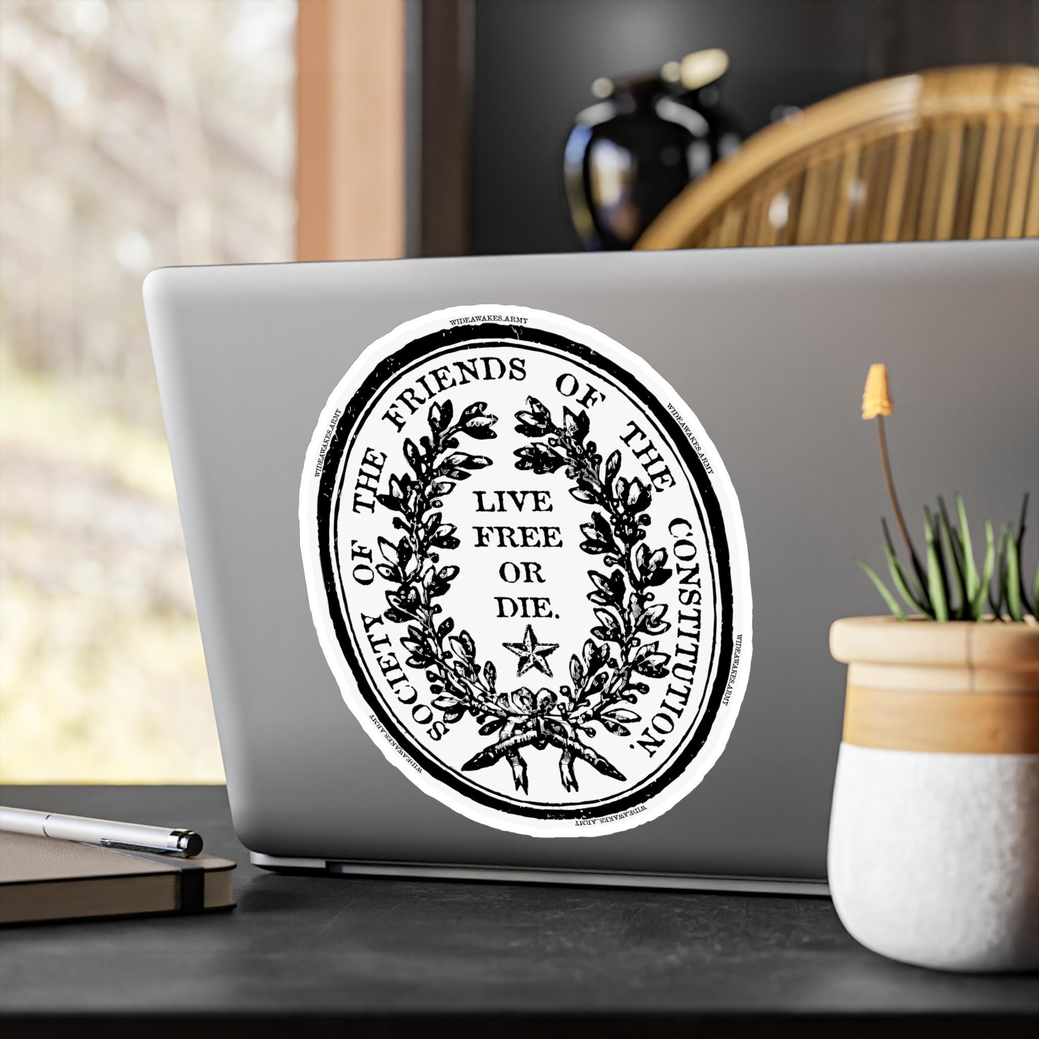 The Vibe: A powerful, historical statement for your car, laptop, or notebook, featuring the timeless motto, "Live Free or Die."
