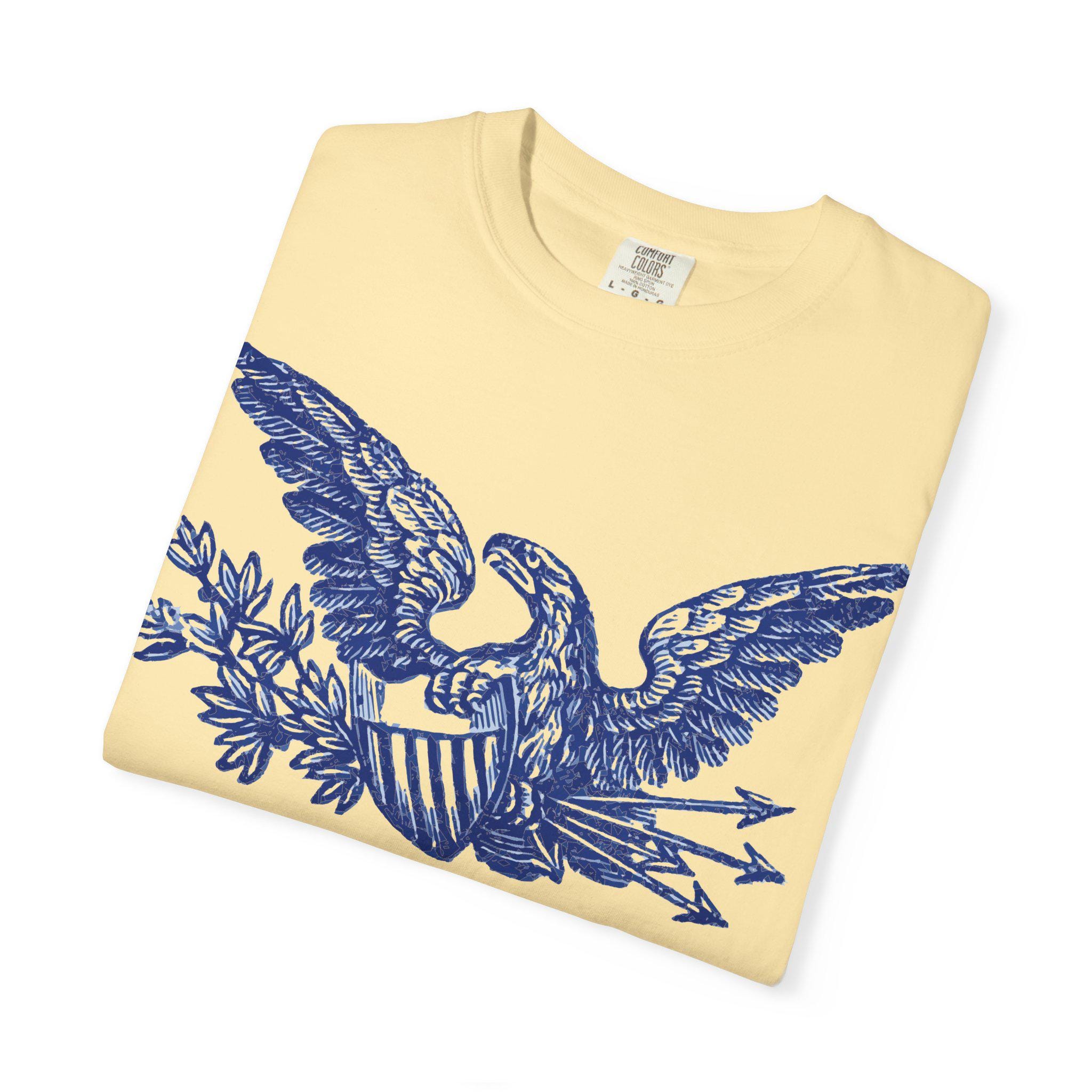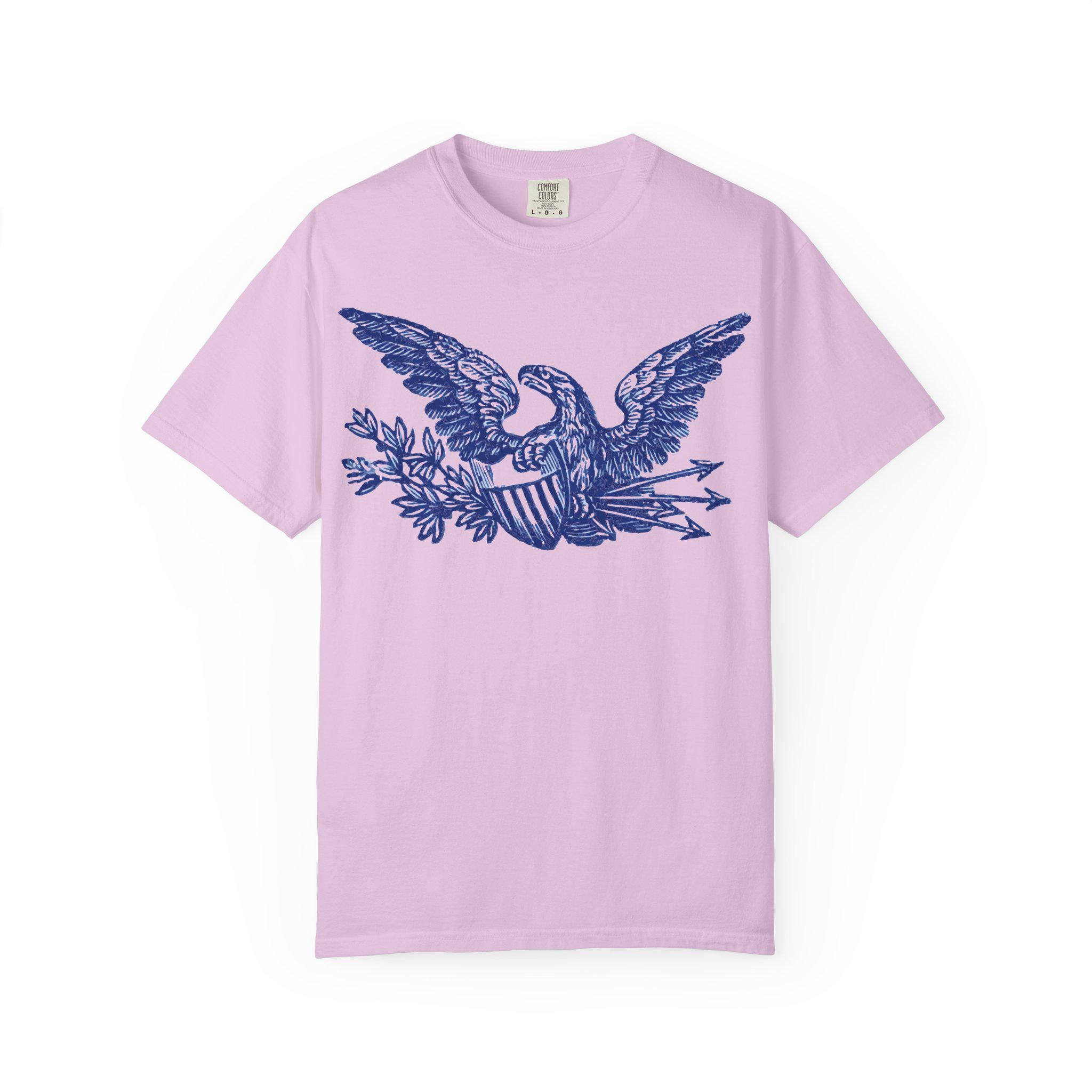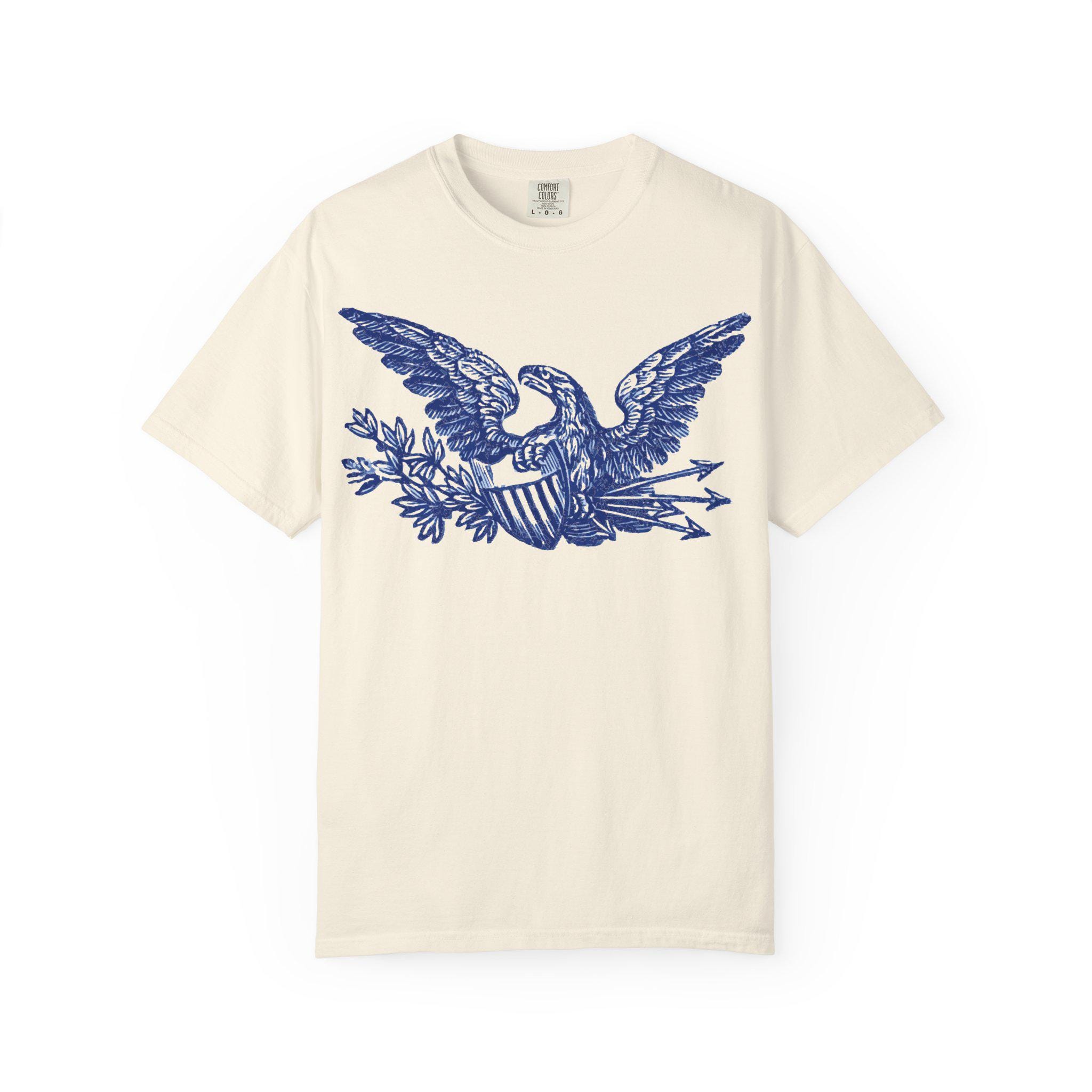A high-quality t-shirt featuring a beautifully restored patriotic eagle from a Civil War-era envelope stamp.