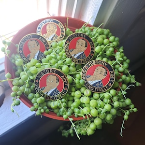This isn't your typical portrait of Abraham Lincoln. The design of this bas relief pin is taken from a fixture at the 1938 convention of the Communist Party USA, who sought to claim Lincoln's legacy for their own. Today, we reappropriate this powerful image once again. It serves as a reminder that Lincoln's legacy—of emancipation, of a government "of the people, by the people, for the people"—is a radical one, and it belongs to all who continue to fight for those ideals, regardless of their place on the political spectrum. This 2-inch wide, gold-colored pin is a high-quality piece of wearable history, perfect for the lapel of any historian, political junkie, or collector of unique Americana.
