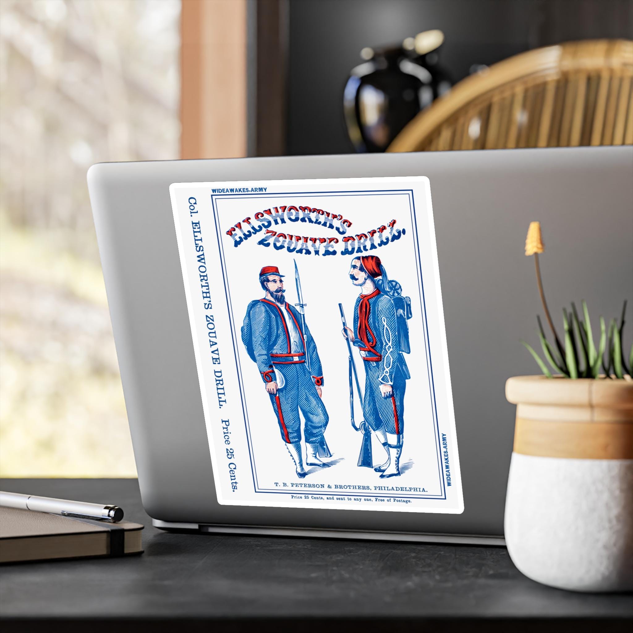 This decal is not just a historical document; it's a piece of art that speaks to the precision and theatricality of Zouave units. The Philadelphia publisher, T. B. Peterson & Brothers, was a prominent name, and the "25 Cents" price point gives a wonderful snapshot of the era's commerce. Perfect for laptops, water bottles, or any surface that needs a touch of military history.