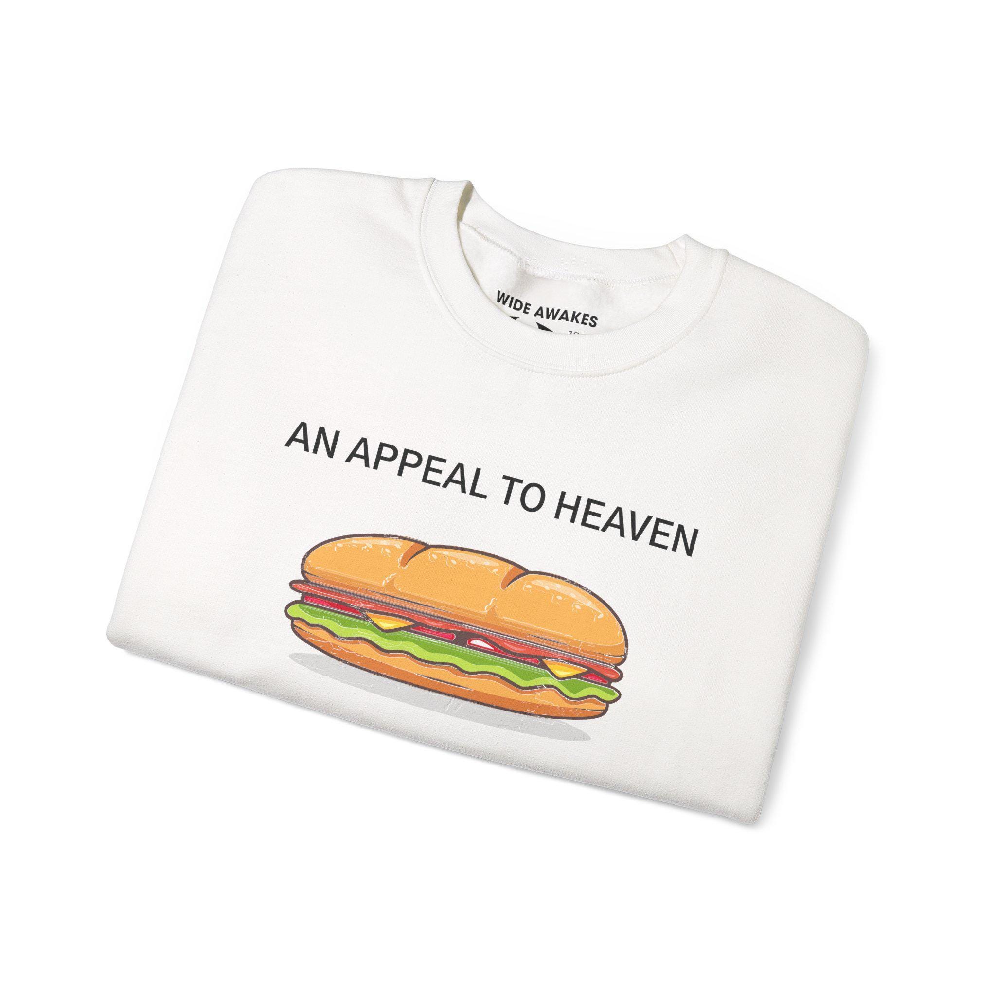 Stay warm this fall with a cozy crewneck sweatshirt that perfectly captures the absurdity of the current moment. This design is a hilarious parody of the Revolutionary War's "Pine Tree Flag," replacing the tree with a sub sandwich and keeping the historic motto: "AN APPEAL to HEAVEN." It's a tribute to the viral "Sandwich Man" of the DC protests and a witty nod to a long history of American defiance. A comfortable and funny piece of wearable political humor.