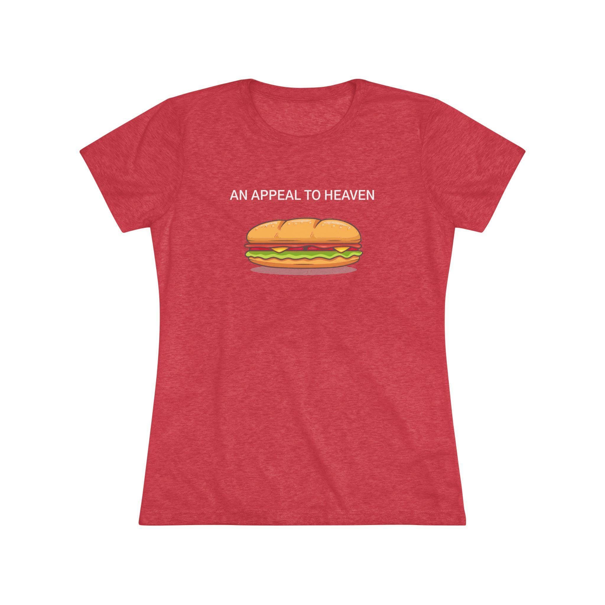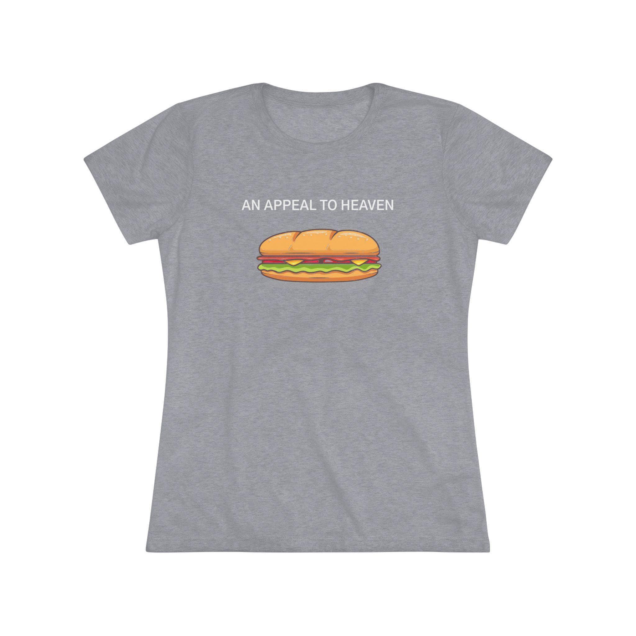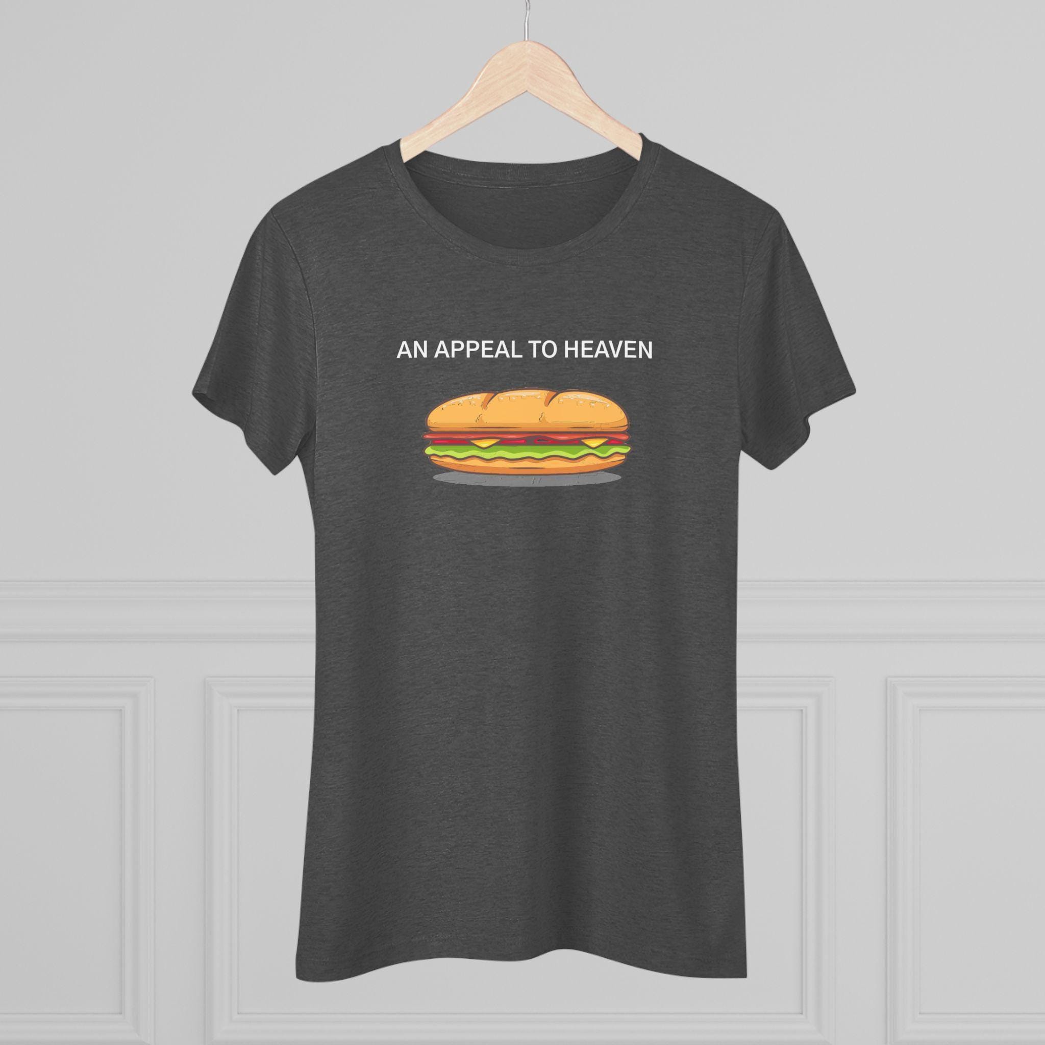 This women's t-shirt combines a hilarious, multi-layered piece of protest art with a comfortable and stylish fit. The design is a parody of the Revolutionary War's "Pine Tree Flag," swapping its classic tree for a sub sandwich in a nod to a recent viral protest moment. The addition of the historic defiant slogan, "AN APPEAL TO HEAVEN," makes this a truly unique and clever piece. This soft, contoured tee is a perfect way to wear a symbol of creative, modern resistance.