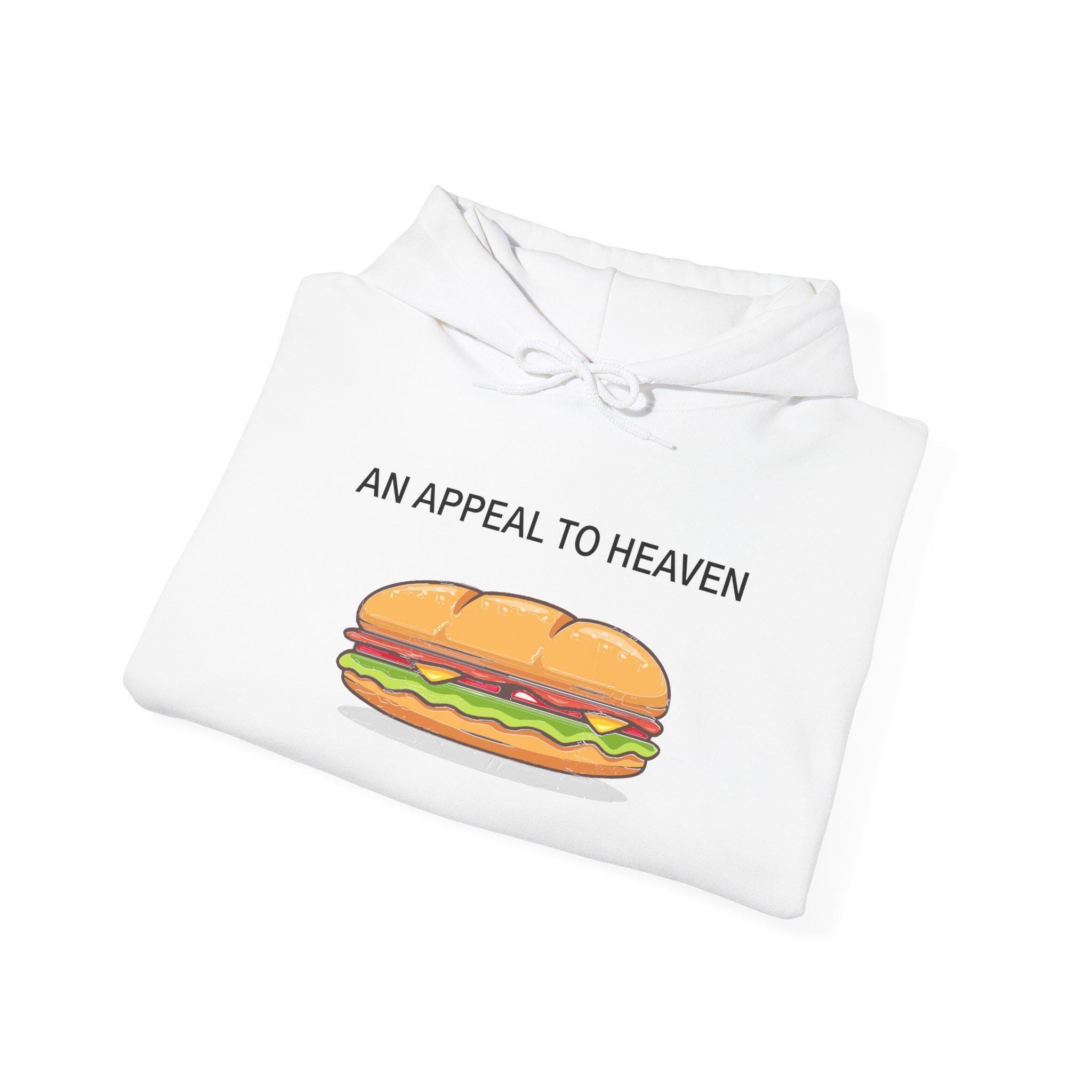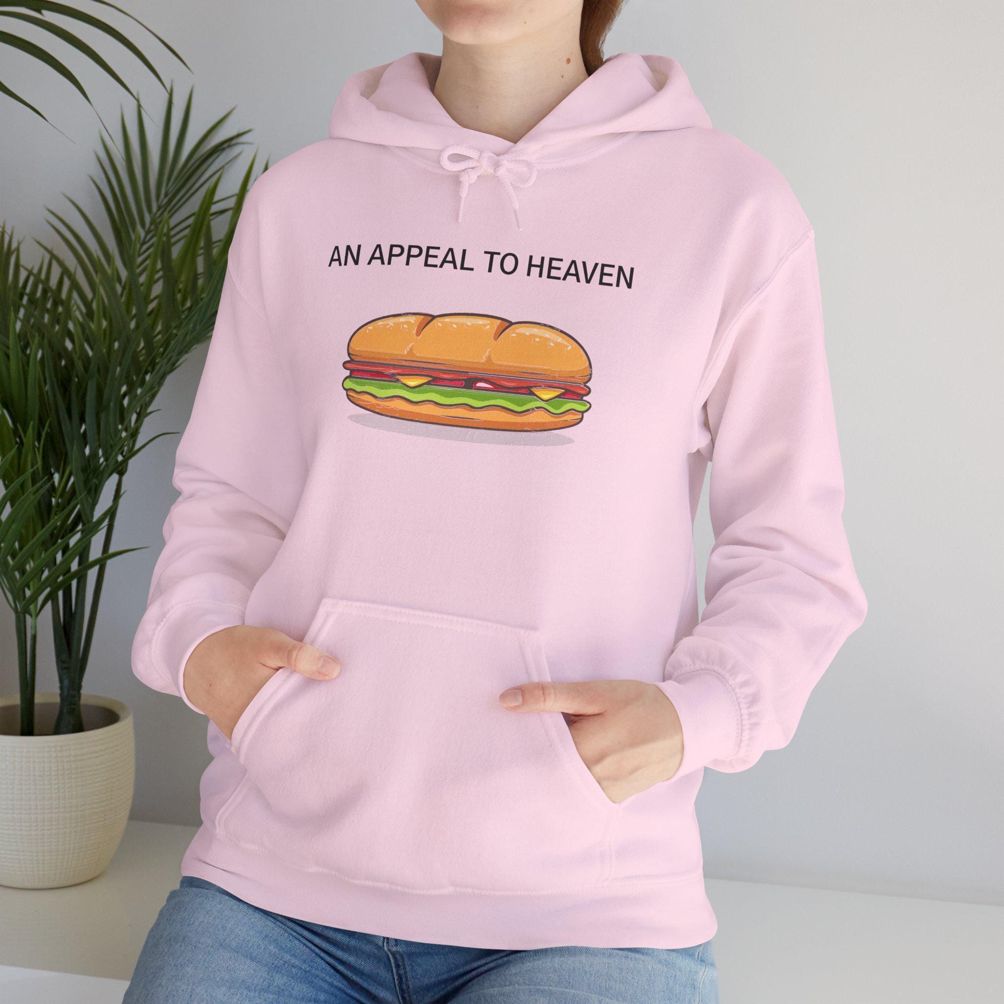 This comfortable and warm hoodie celebrates a legendary moment of modern protest. The design adapts the classic "Pine Tree Flag" by replacing its historic tree with a sub sandwich, in honor of the social media sensation who chose a unique form of protest in Washington D.C. The motto, "AN APPEAL TO HEAVEN," connects this absurd act to a long, proud history of American defiance. With a soft fleece interior and a spacious front pocket, this is the perfect gear for anyone who appreciates a good joke and a just cause.