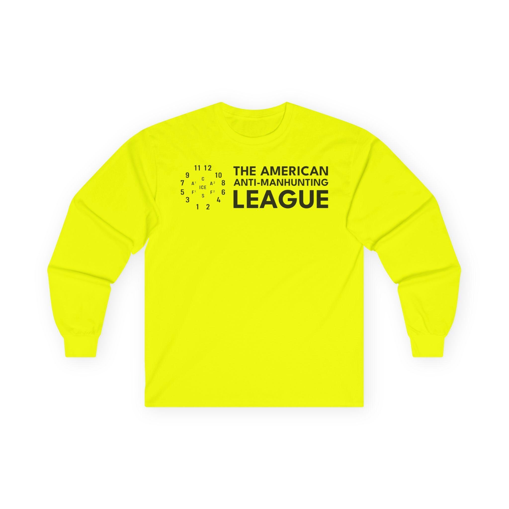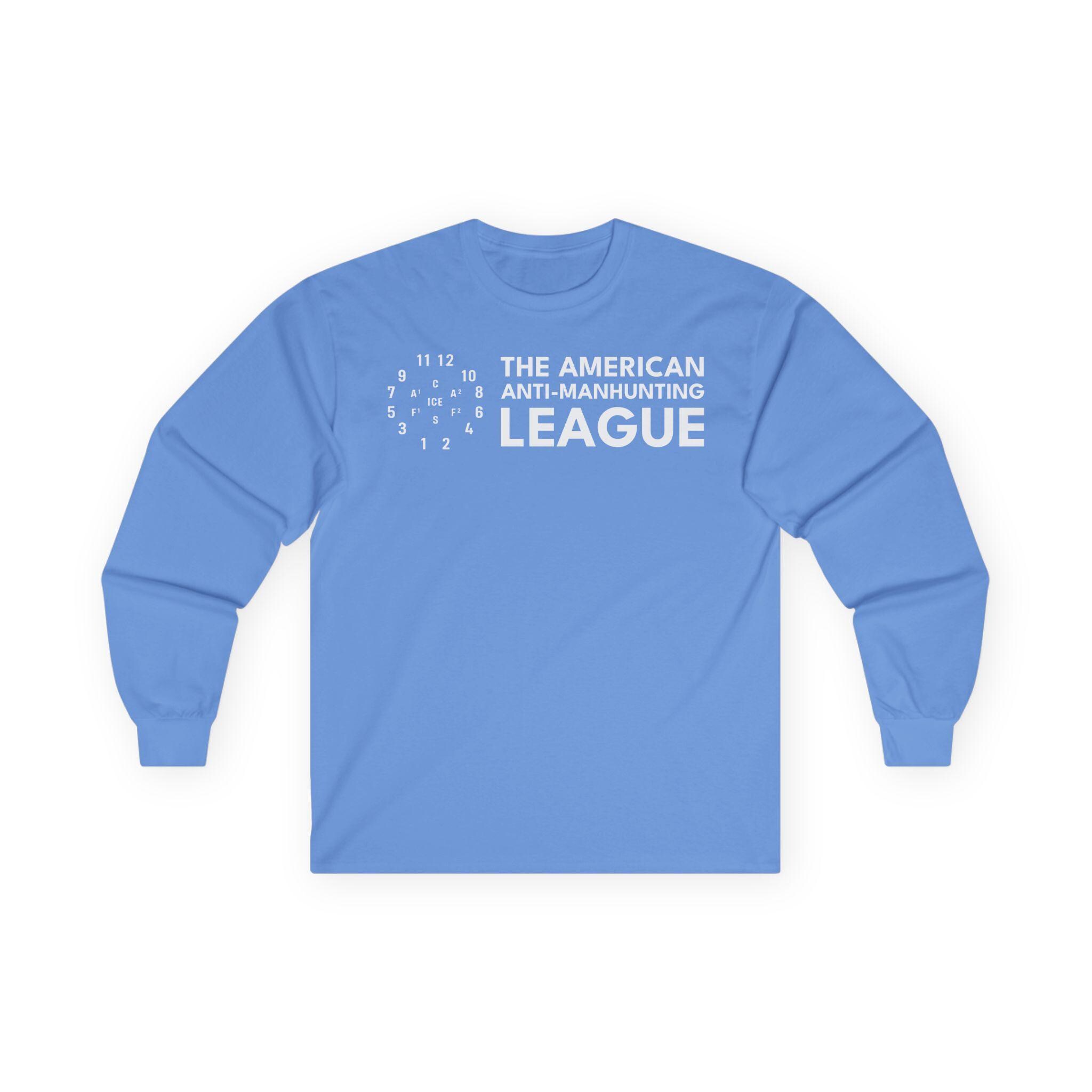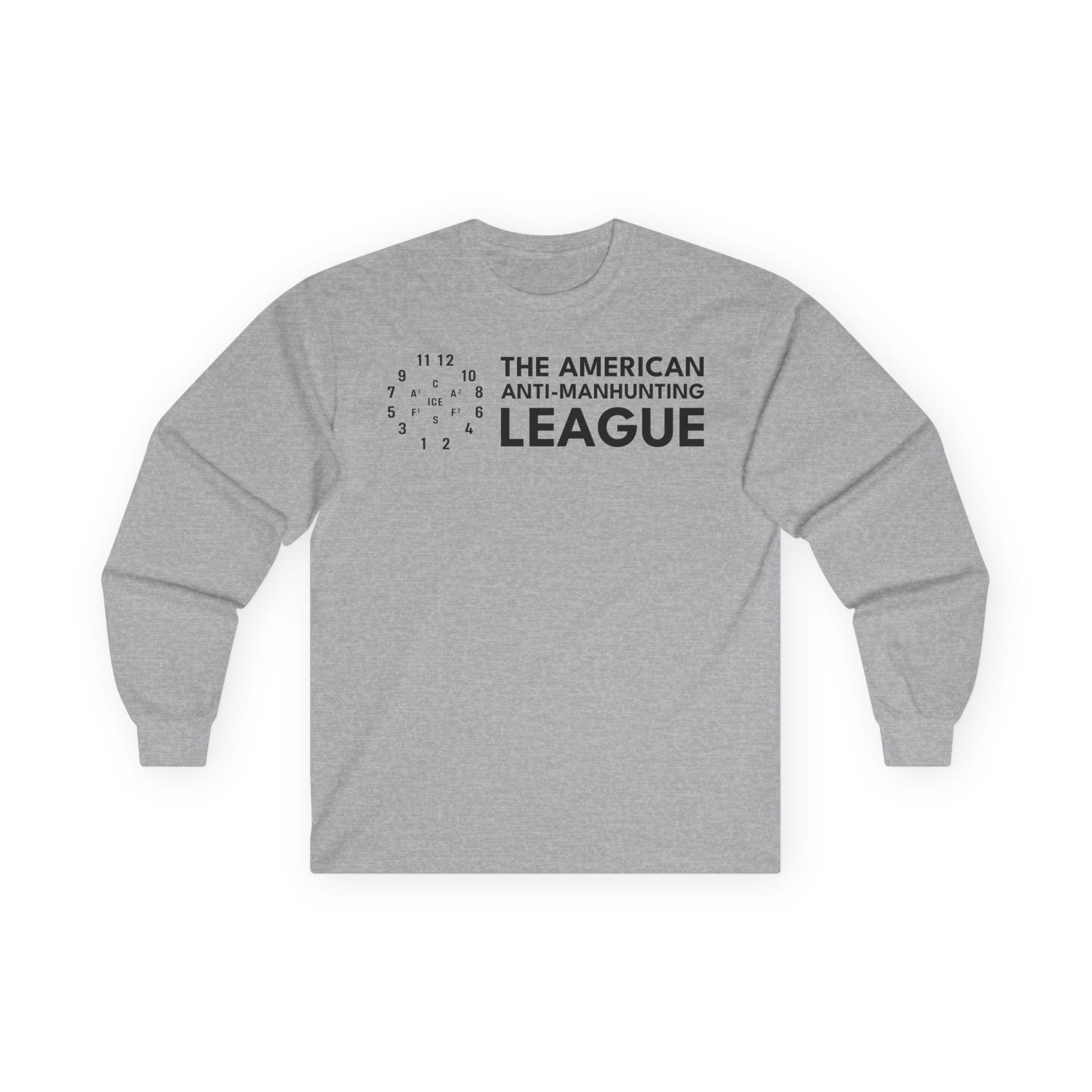 This comfortable longsleeve tee is the perfect layer for fall and a fantastic conversation starter. The design is the logo for The American Anti-Man-Hunting League, a revival of a real 19th-century abolitionist group. The emblem is a modernized version of the drill diagram the Boston league used to practice resisting federal slave catchers. In this version, the central target is updated to "ICE," making a powerful statement about today's fight for human rights. It's a stark, minimalist, and powerful piece of activist history.