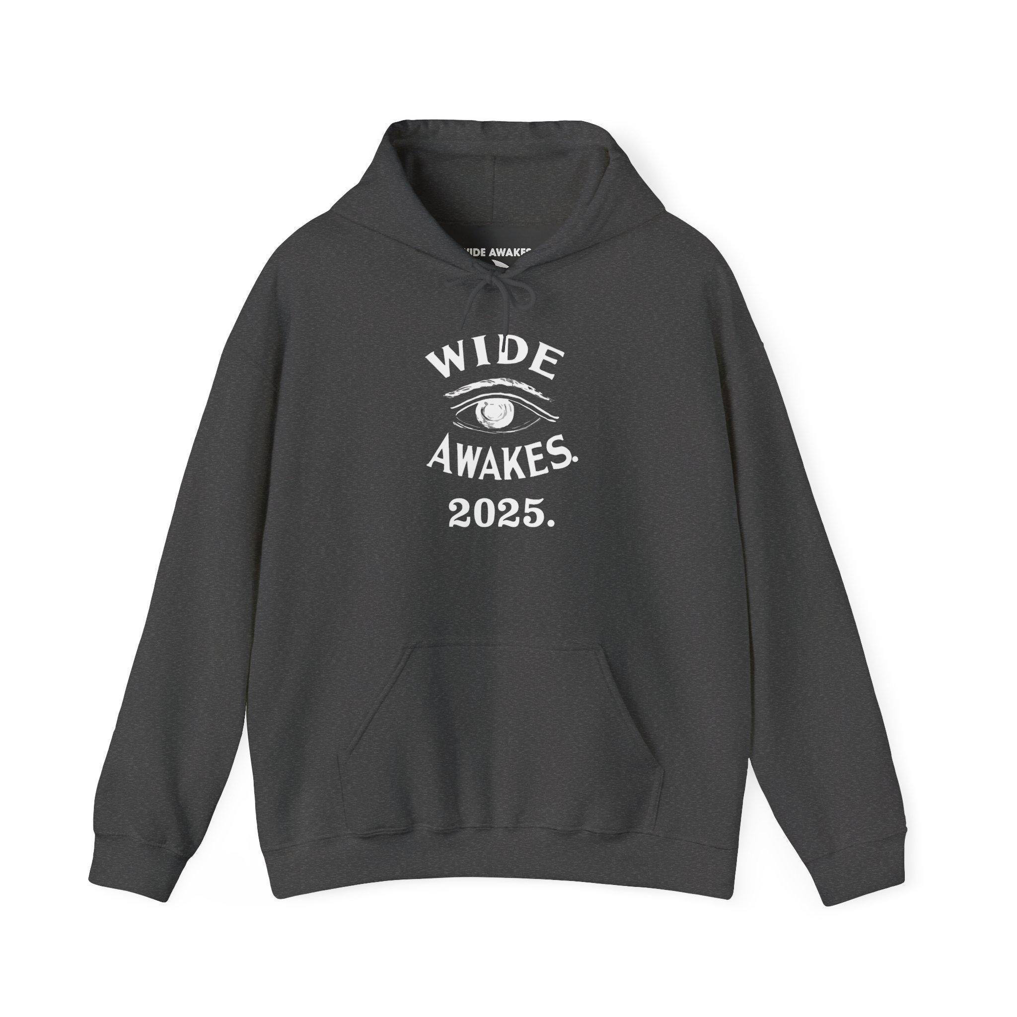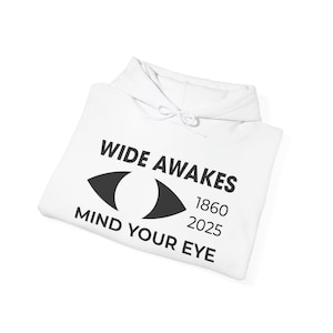 This comfortable and warm hoodie features a design that brings a historical movement directly into the present. Based on an authentic 1860s Wide Awakes sign from a New Haven museum, we've updated the date to 2025. The classic, bold eye and arced text are a tribute to the original anti-slavery youth movement, while the new date is a declaration that their spirit of vigilance is needed today. With a soft fleece interior and a spacious front pocket, this is the perfect gear for the modern-day Wide Awake.