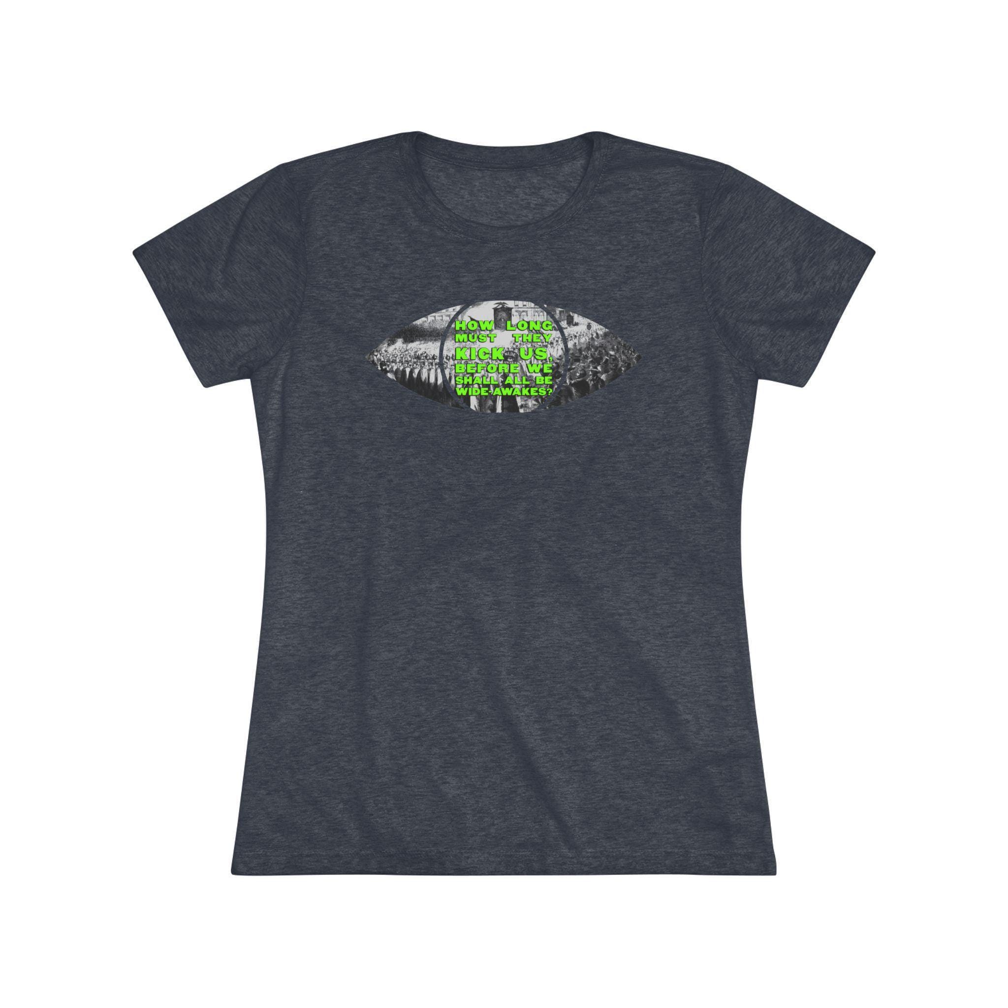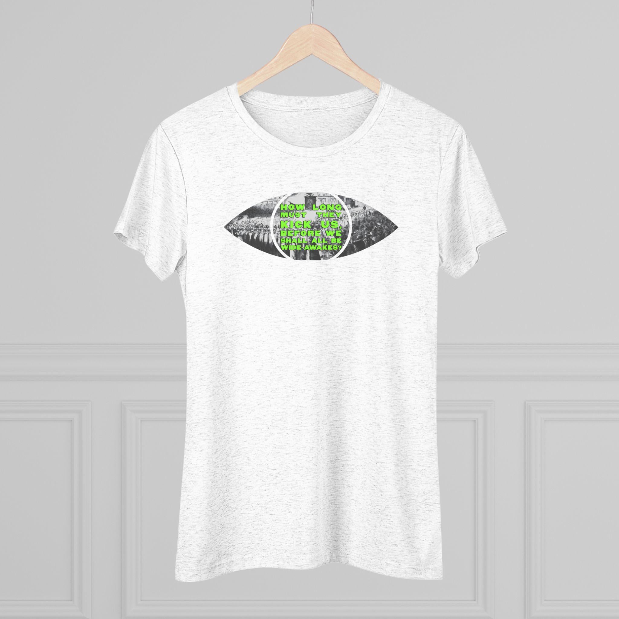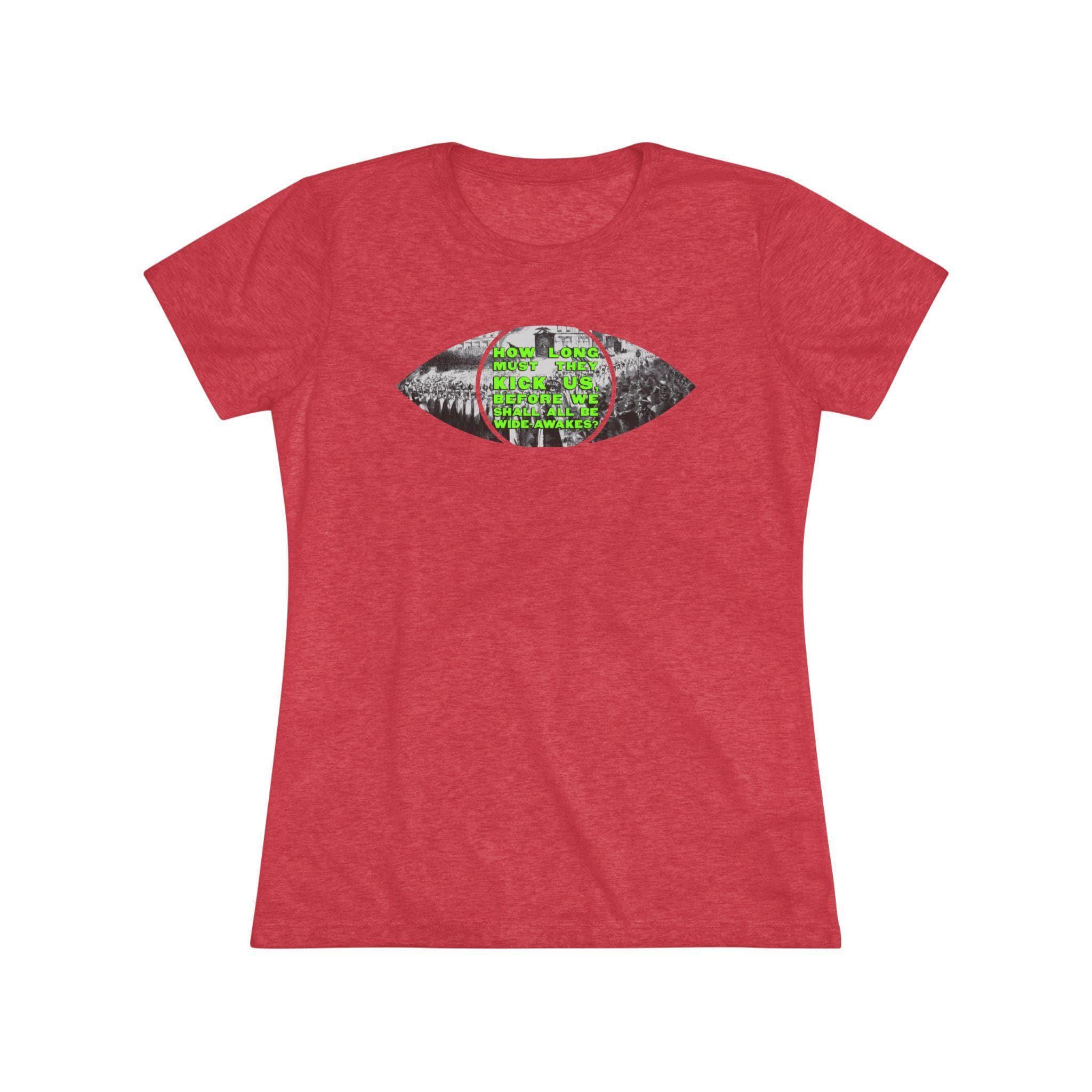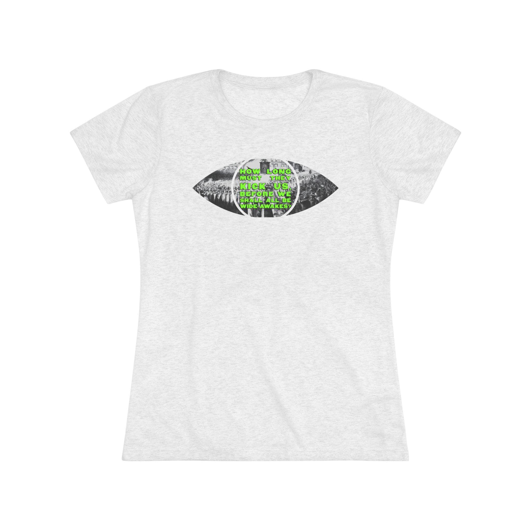 This women's t-shirt combines a clever, conceptual design with a comfortable and stylish fit. The central graphic is a minimalist eye, but the eye itself is made from a detailed 1860 etching of a massive Wide Awakes protest march. In a striking pop art twist, the pupil is filled with a solid, vibrant chartreuse that stands out beautifully against the historical black-and-white scene. This soft, contoured tee is a perfect way to wear a piece of profound history that has been reimagined with a bold, modern sensibility.