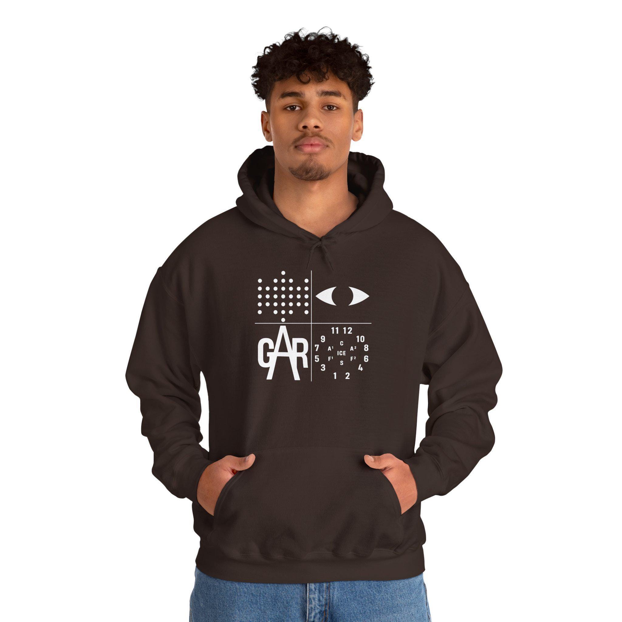 This comfortable and warm hoodie features a cryptic emblem for a modern era of resistance. The four symbols in the grid each represent a different chapter in the American story of defiance, from the Civil War to today. It's a design that doesn't need to shout to be understood by the right people. With a soft fleece interior and a spacious front pocket, this hoodie is a practical and powerful piece for anyone who recognizes the symbols of the long fight for American ideals.