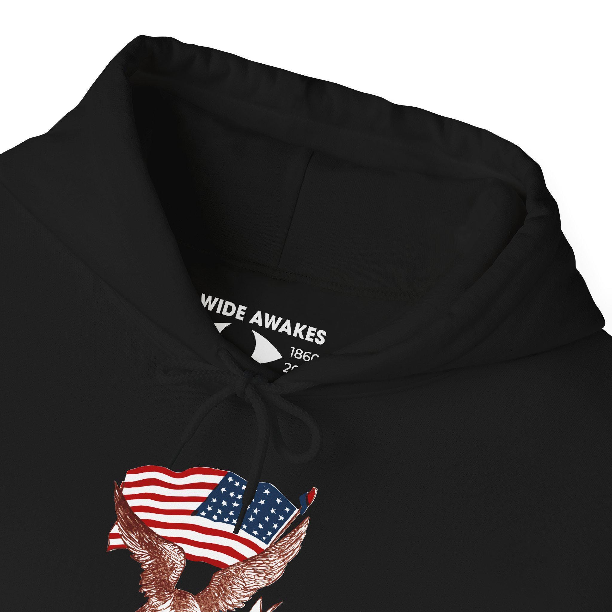 This comfortable and warm hoodie features a powerful and symbolic design from a pro-Union Civil War envelope stamp. A patriotic American eagle is paired with a Phrygian cap, the international symbol of liberty, making it clear that the fight was for more than just territory. The eagle carries a banner with the uncompromising motto: "OUR UNION MUST AND SHALL BE PRESERVED." With a soft fleece interior and a spacious front pocket, this hoodie is a historically authentic statement about the intertwined goals of unity and freedom.