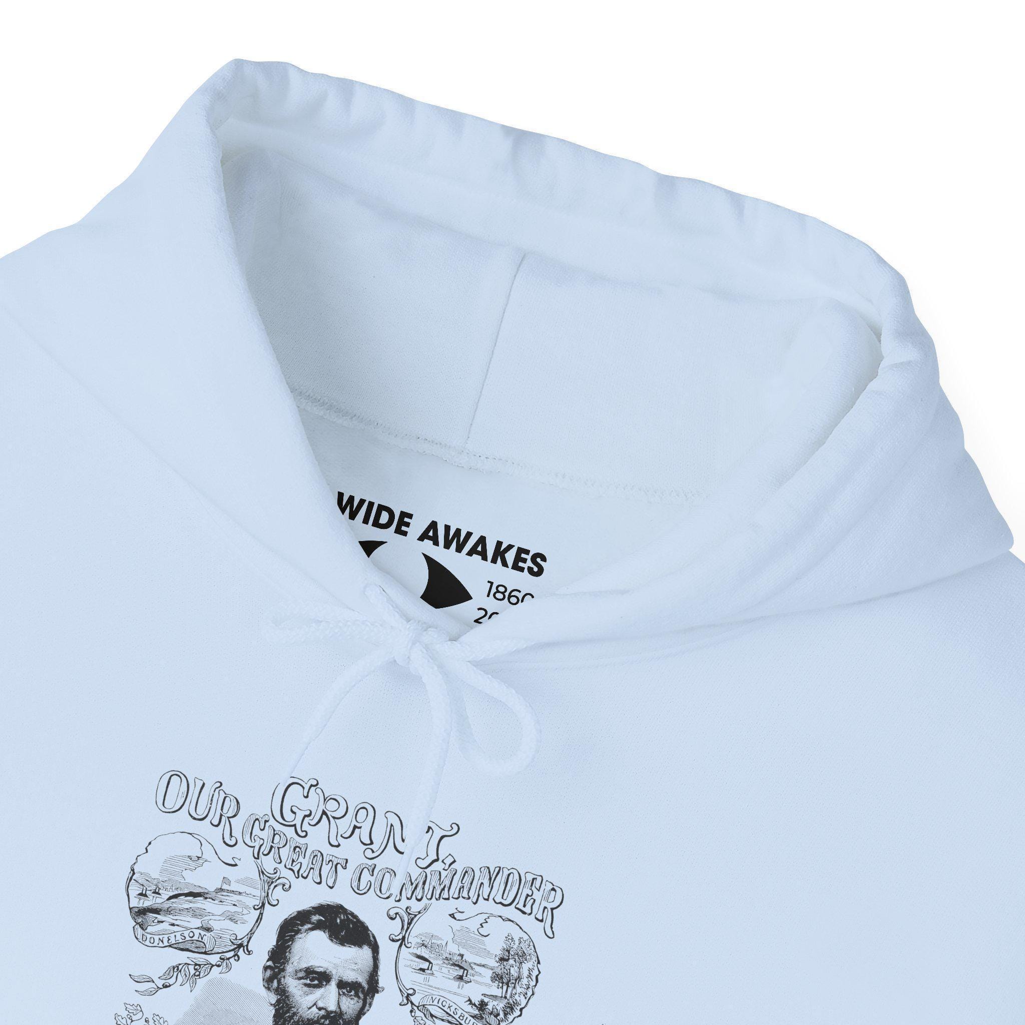 This comfortable and warm hoodie has the unmistakable feel of a classic band tour hoodie, but the rock star is General Ulysses S. Grant. The design, taken from a vintage sheet music cover, features a large portrait of "Our Great Commander" surrounded by scenes from his most famous victories and achievements: Fort Donelson, Vicksburg, Appomattox Courthouse, and The White House. With a soft fleece interior and a spacious front pocket, this is the perfect gear for any fan of Grant's "work."