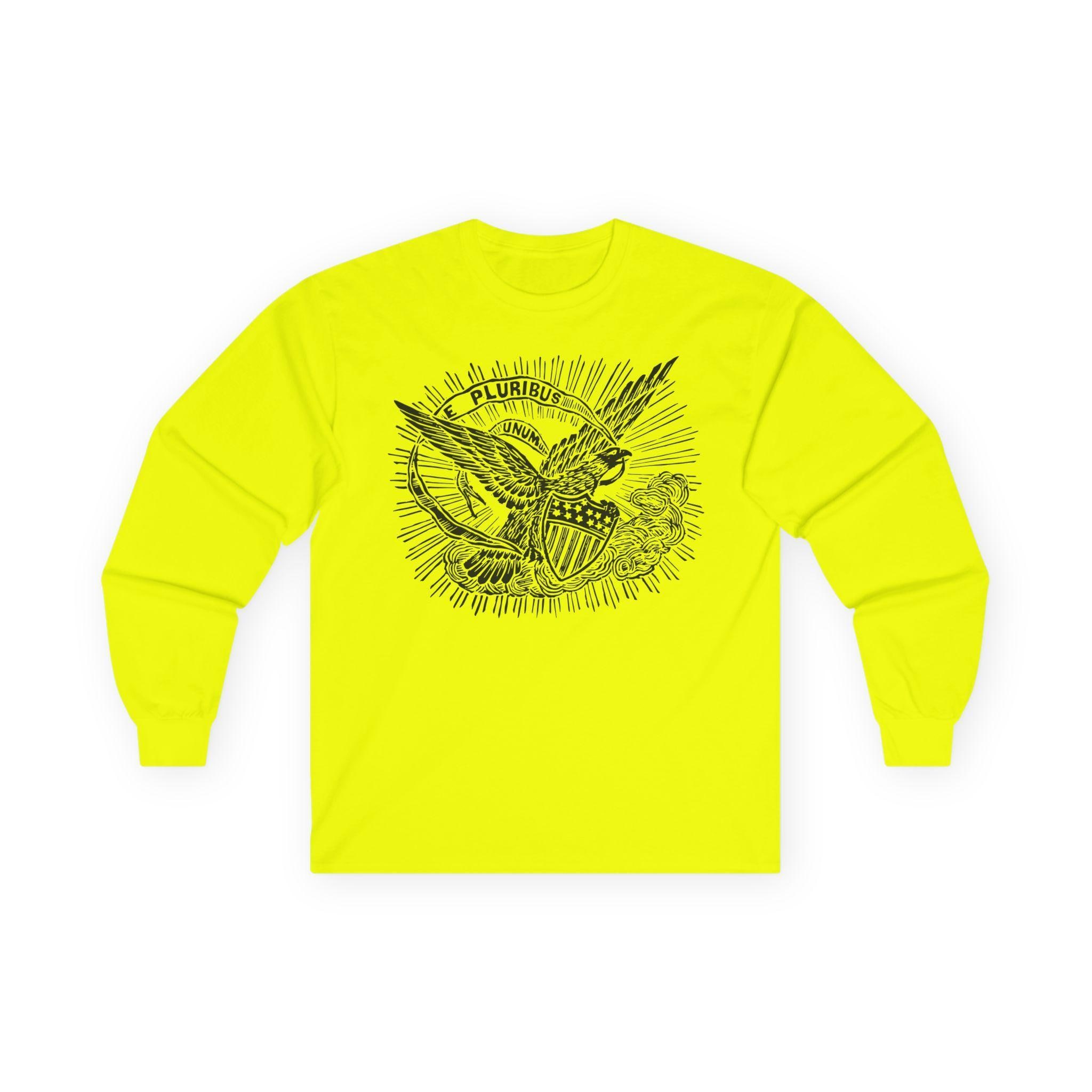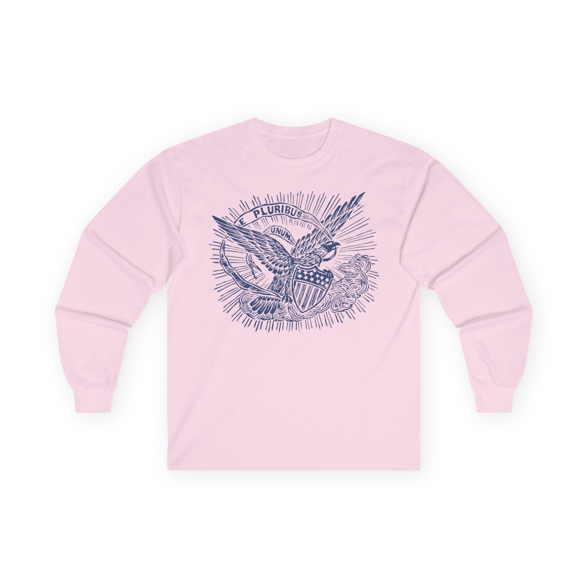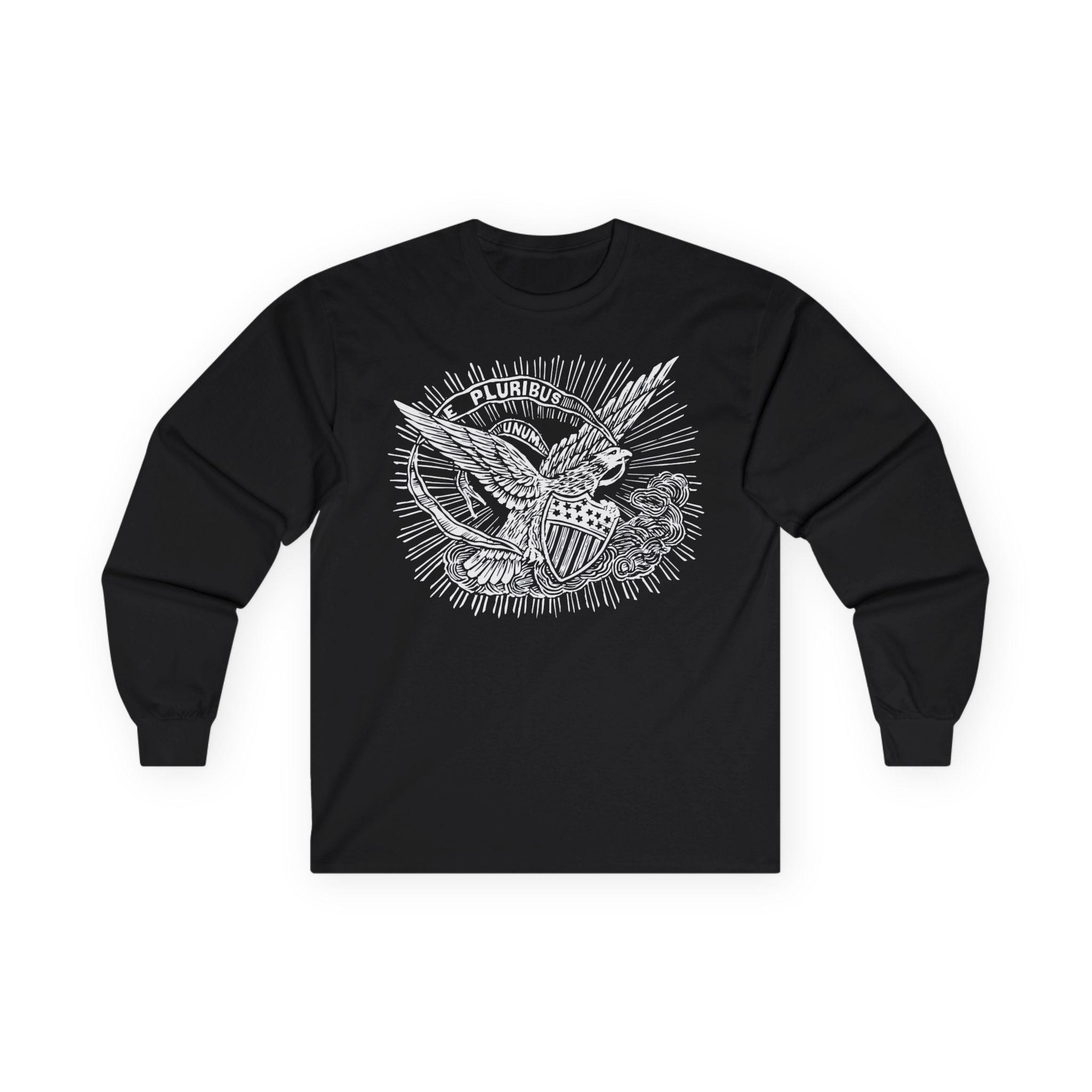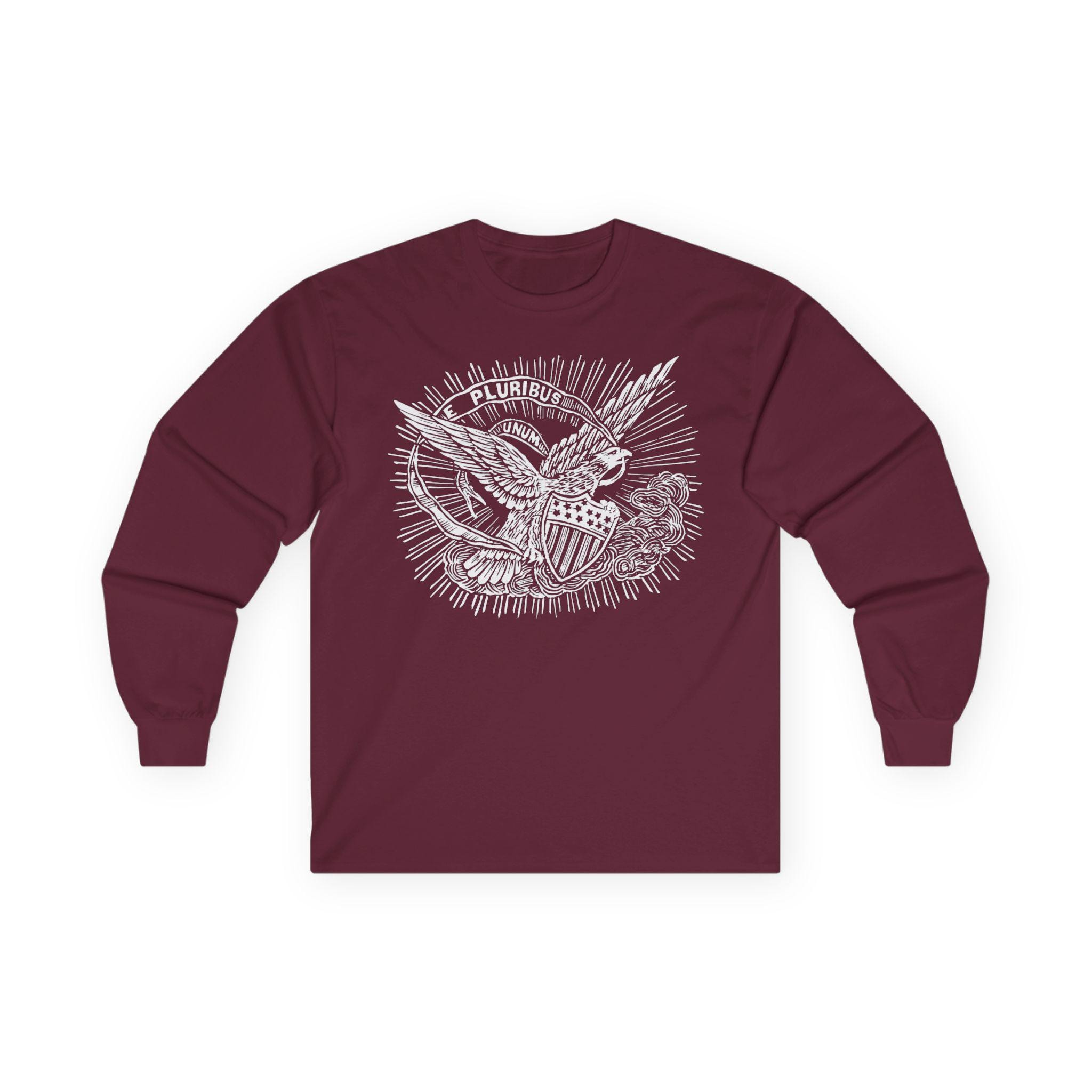 This comfortable longsleeve tee features a timeless statement of American unity, restored from an authentic 1860s pro-Union envelope stamp. The powerful imagery of the eagle, bathed in heavenly light, reinforces the nation's guiding principle. The banner's message, "E PLURIBUS UNUM" ("Out of many, one"), was a declaration against division and a promise of a unified future during the nation's most trying time. It's a perfect shirt for layering in the fall, offering a stylish and historically significant message that is always relevant.