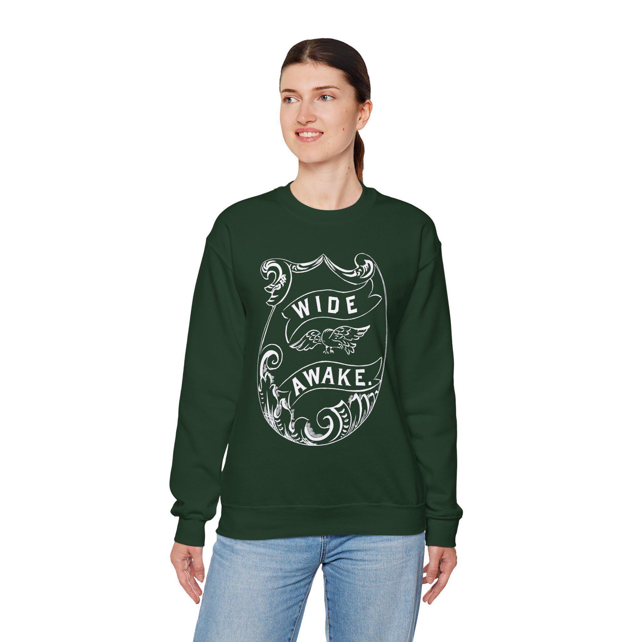 Stay warm this fall with a cozy crewneck sweatshirt that carries a secret history. The design is a faithful recreation of a rare and complex pin worn by the pro-Lincoln Wide Awakes in 1860. The exact meaning of its symbols—the bird, the flames, the crescent moon—is a mystery lost to time, which only adds to its allure. We've brought this forgotten emblem back into the light on a comfortable, warm sweatshirt. It's a unique opportunity to connect with a genuine, yet enigmatic, artifact from a pivotal moment in American history.