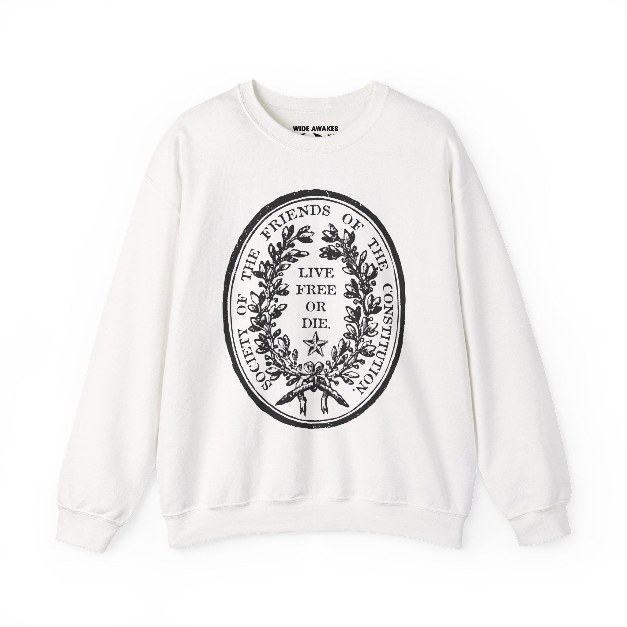 Stay warm this fall with a cozy crewneck sweatshirt that carries a powerful historical message. The design is a modern adaptation of the emblem of the Jacobin Club, the most influential political club during the French Revolution. This version has been thoughtfully updated: the text is translated to English, and the original fleur-de-lis is replaced with a classic American nautical star. It's a tribute to revolutionary ideals, the defense of a constitution, and the timeless declaration to "Live Free or Die"—a motto that resonates from 18th-century Paris to the granite hills of New England.