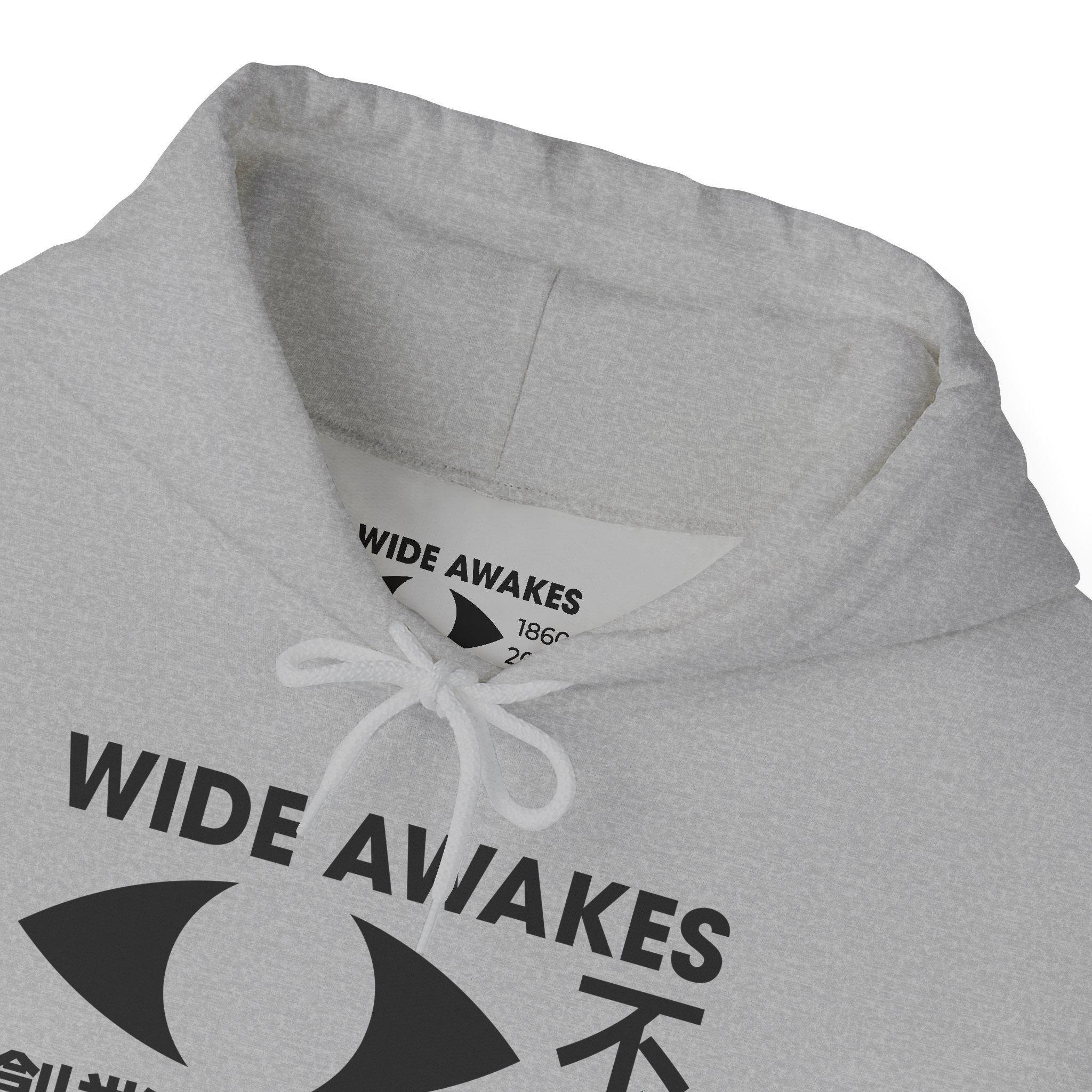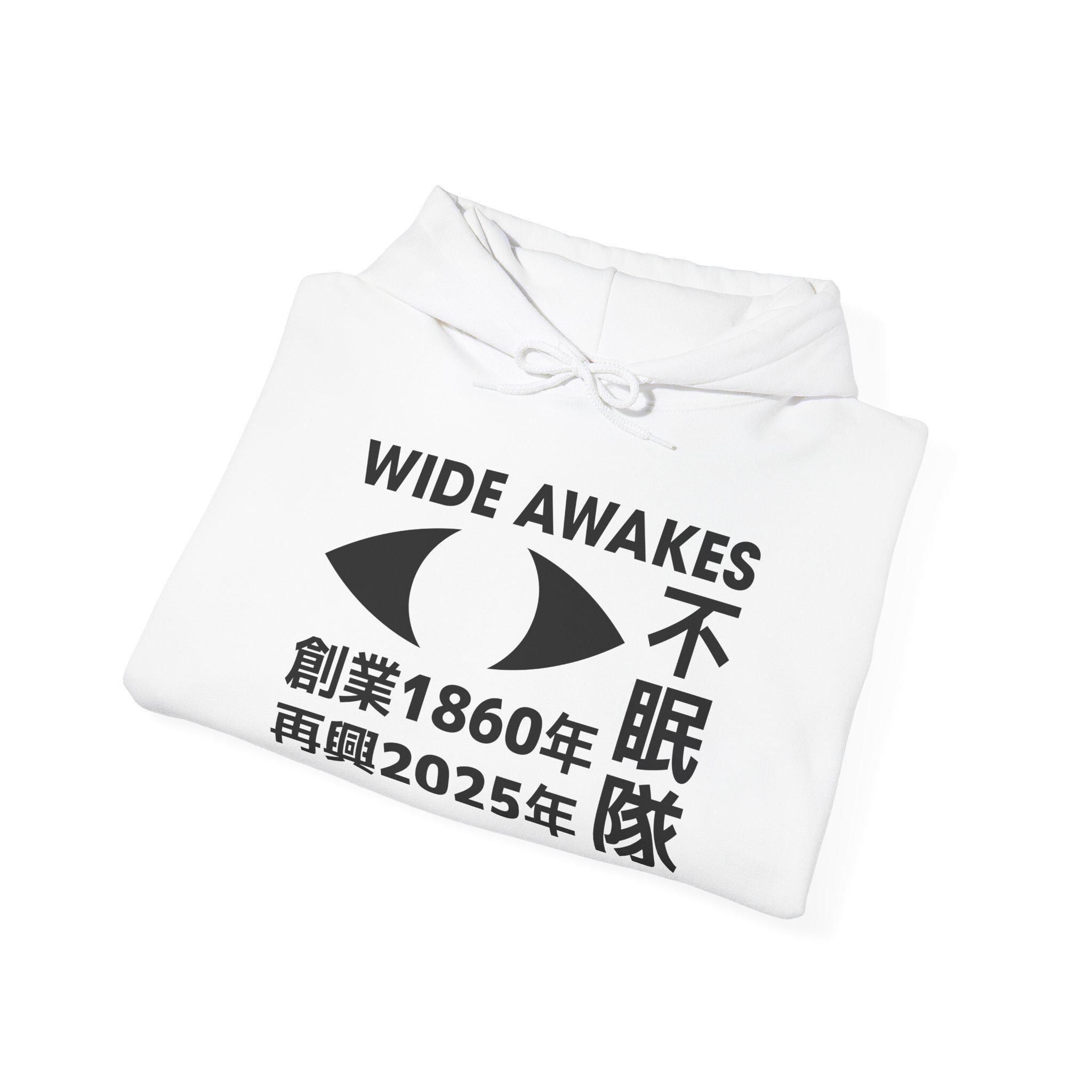 This comfortable and warm hoodie features a modern, bilingual logo that connects today's struggles with a legacy of American activism. The design leads with the clear English title "WIDE AWAKES," then reimagines the 19th-century movement with a clean, Japanese-inspired aesthetic. The logo features a stylized, watchful eye alongside the movement's Japanese name, 不眠隊 (Fumintai), or "Sleepless Corps." Crucially, it marks the founding in 1860 and the revival in 2025, creating a direct link across centuries. With a soft fleece interior and a spacious front pocket, this hoodie is a practical and powerful statement piece.