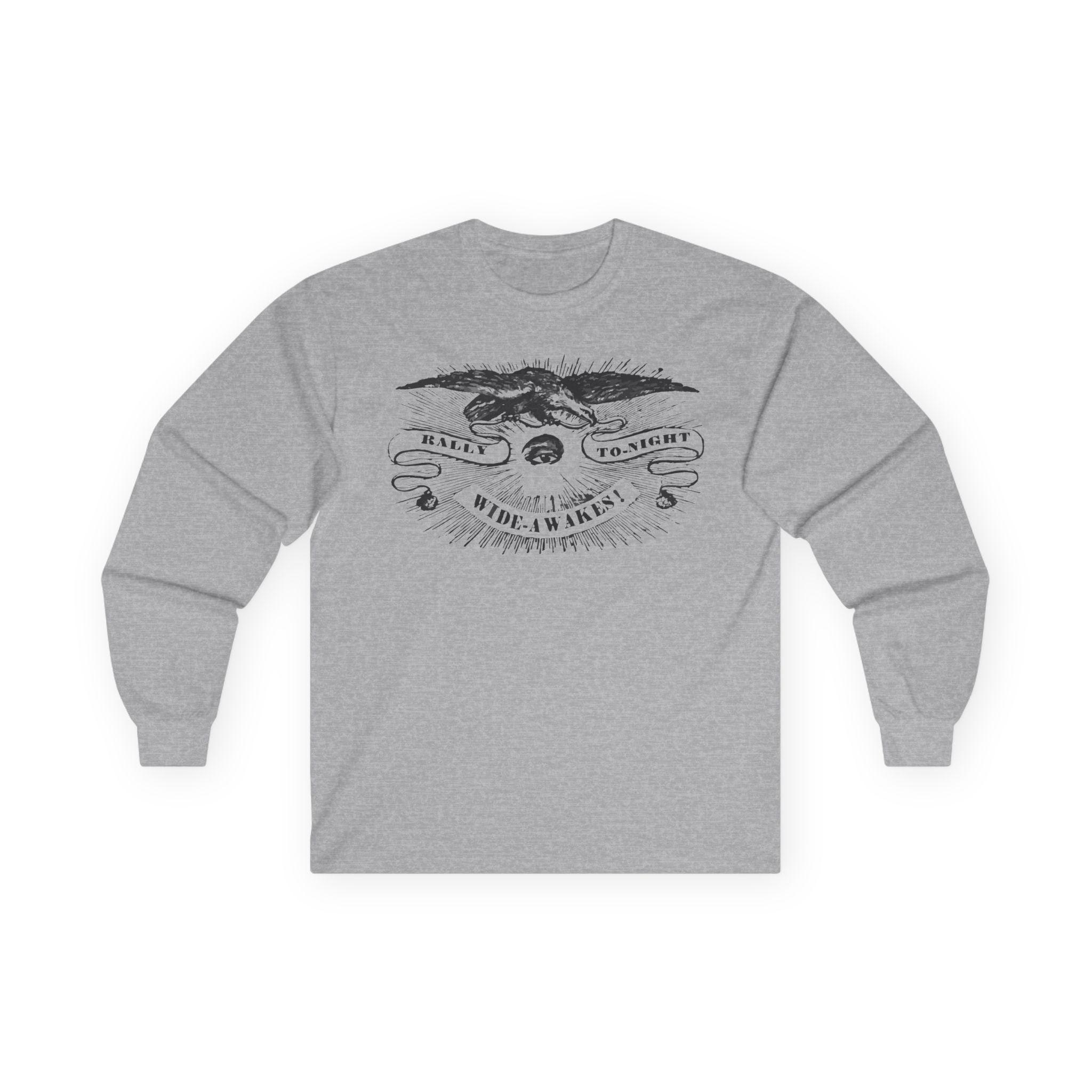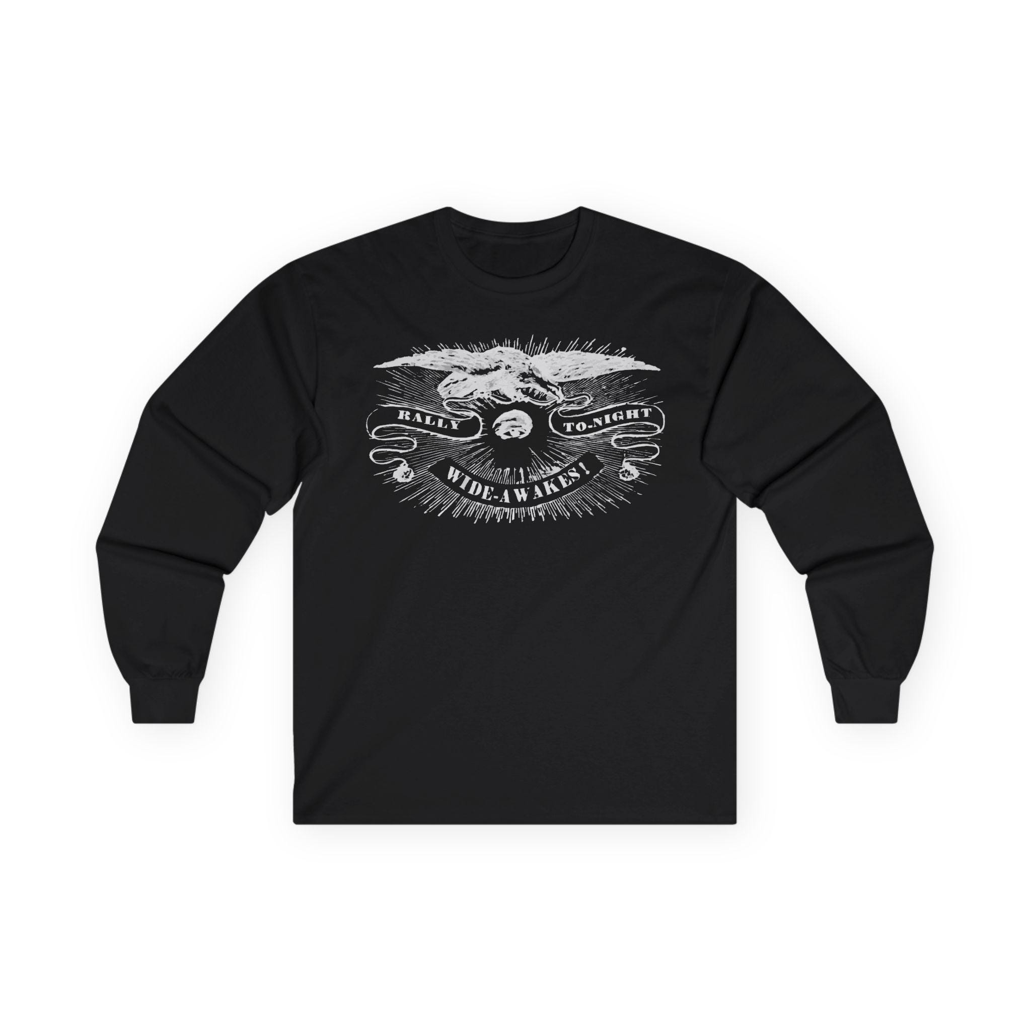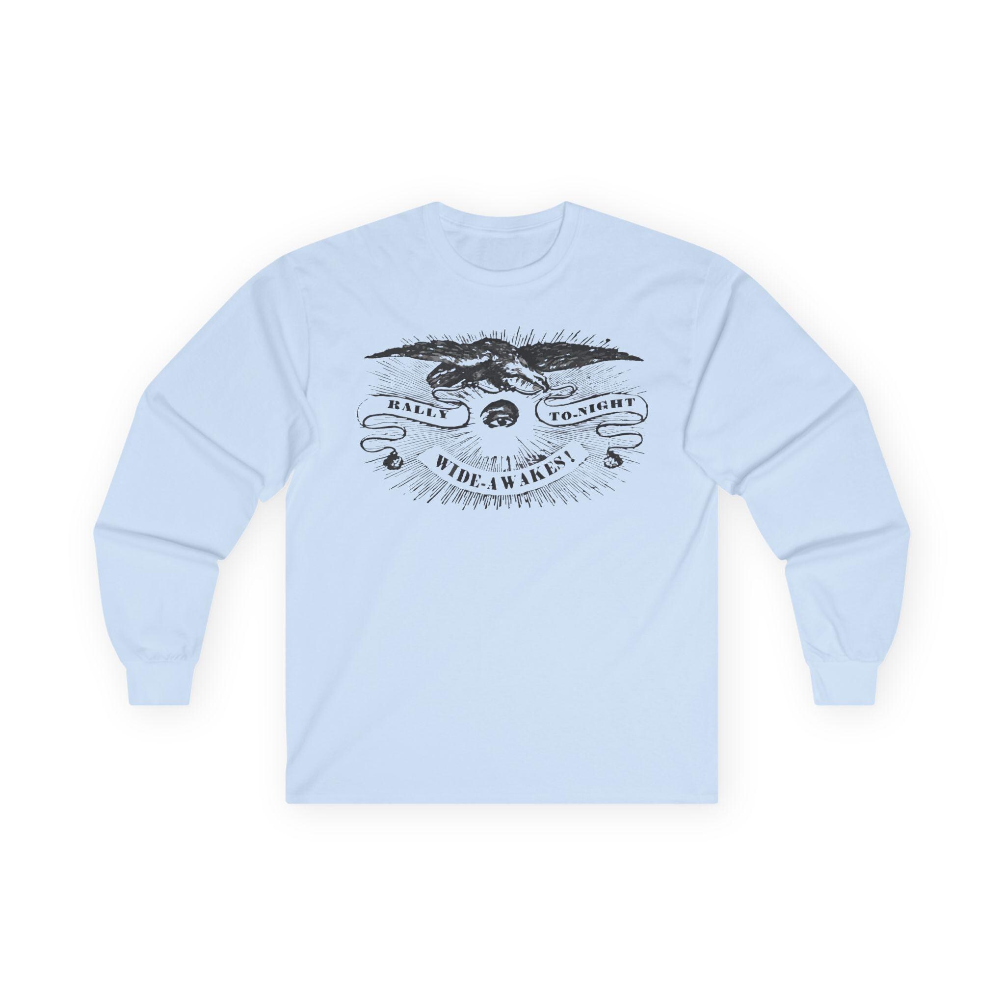 This comfortable longsleeve tee is a perfect layer for the fall and a fantastic piece of wearable history. The design is a restored 19th-century etched illustration of a vigilant eye and an American eagle. The art is from a real announcement in the Hartford Courant on October 5, 1860, calling the pro-Lincoln Wide Awakes to a rally just before the pivotal election that would lead to the Civil War. It's a unique, authentic piece of American political history that serves as a timeless call for civic engagement.