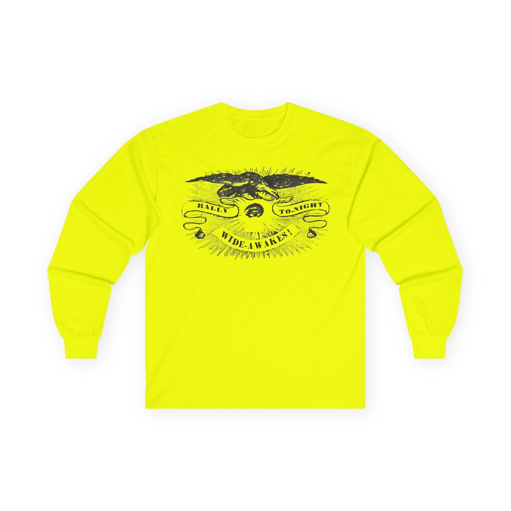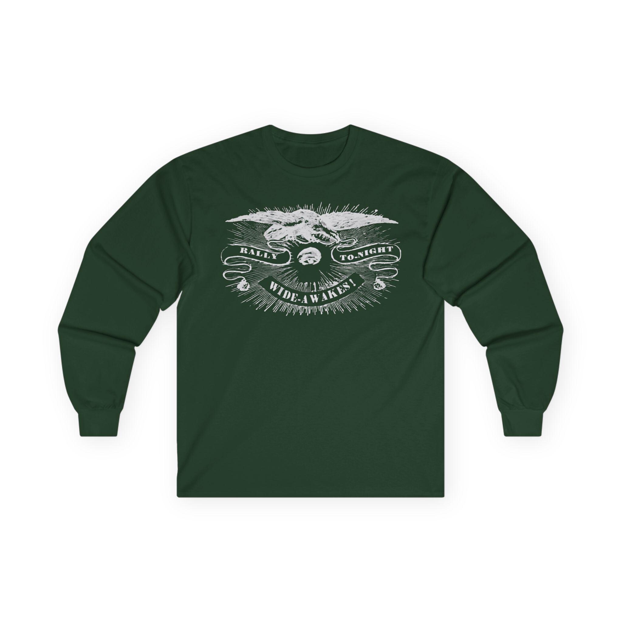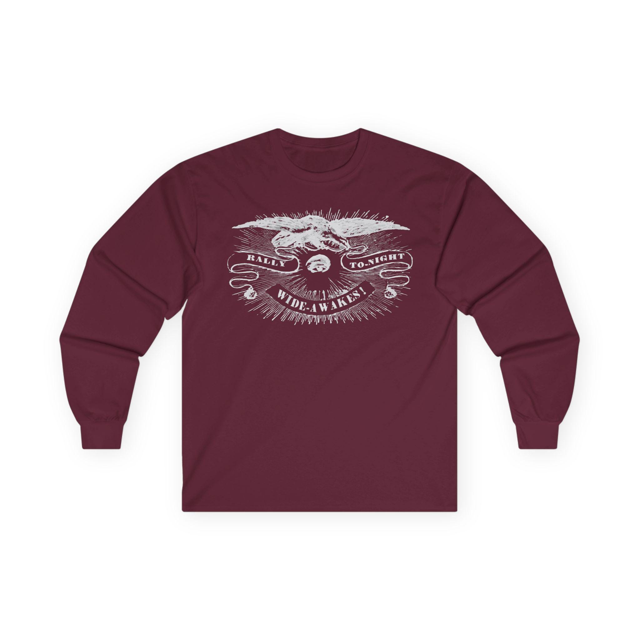 This comfortable longsleeve tee is a perfect layer for the fall and a fantastic piece of wearable history. The design is a restored 19th-century etched illustration of a vigilant eye and an American eagle. The art is from a real announcement in the Hartford Courant on October 5, 1860, calling the pro-Lincoln Wide Awakes to a rally just before the pivotal election that would lead to the Civil War. It's a unique, authentic piece of American political history that serves as a timeless call for civic engagement.
