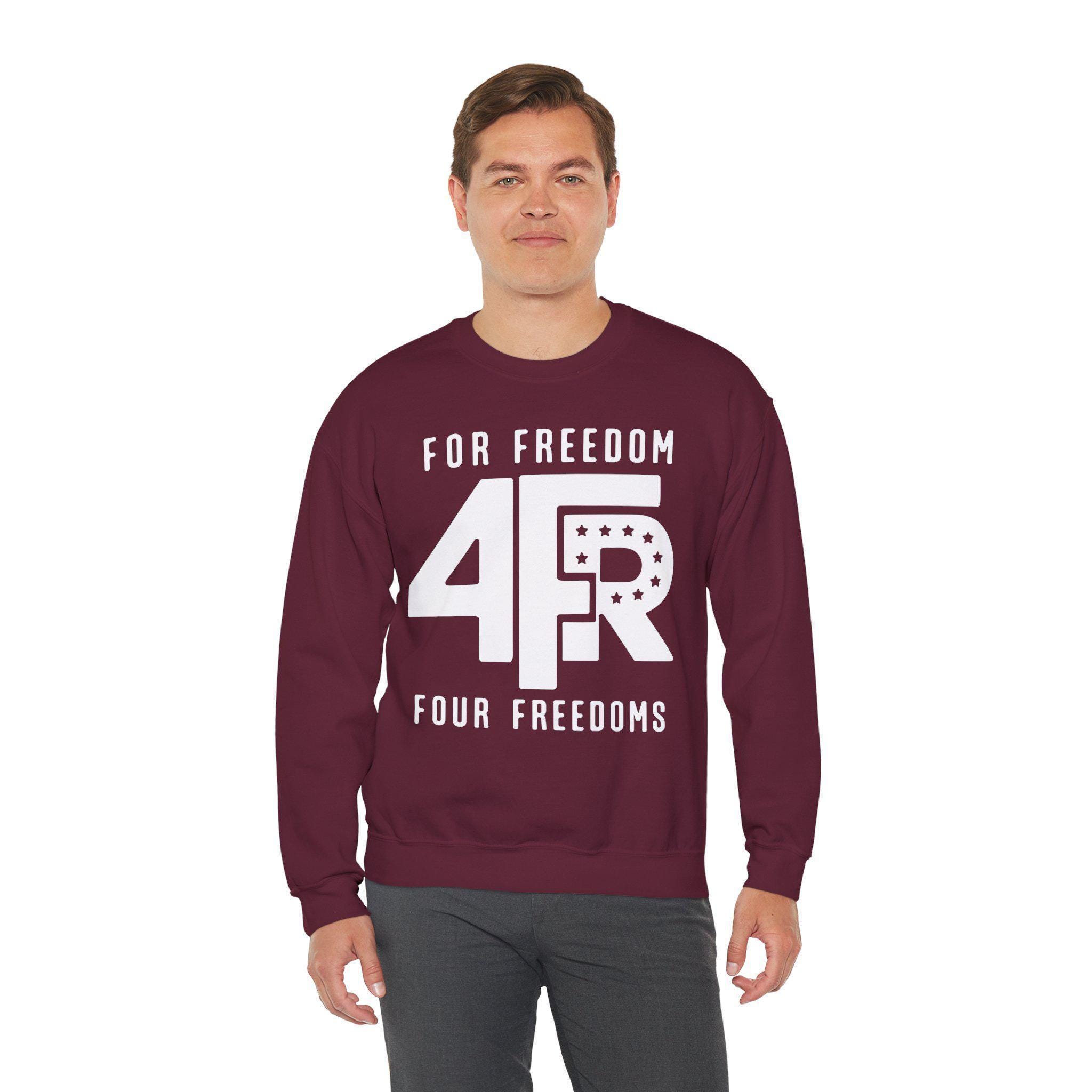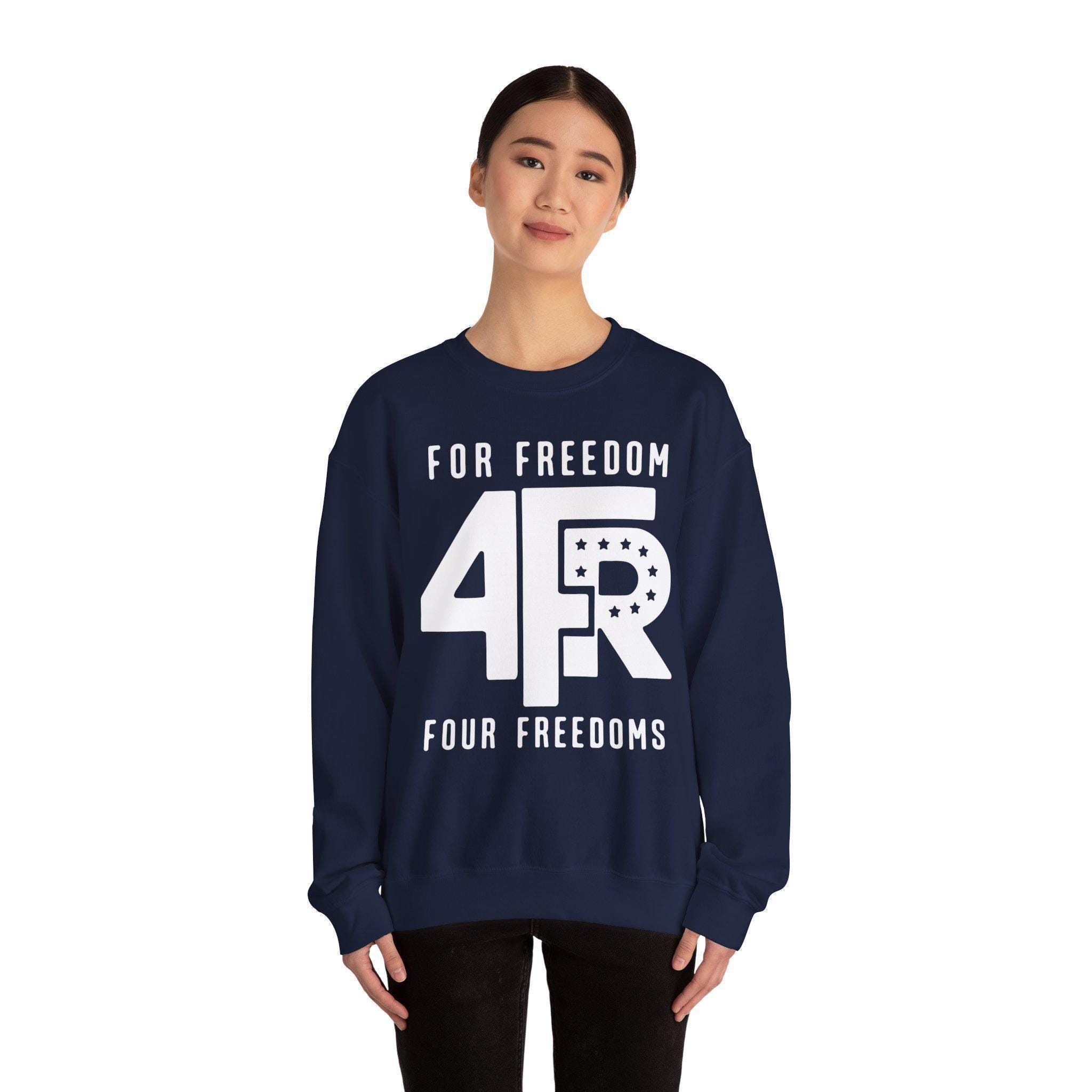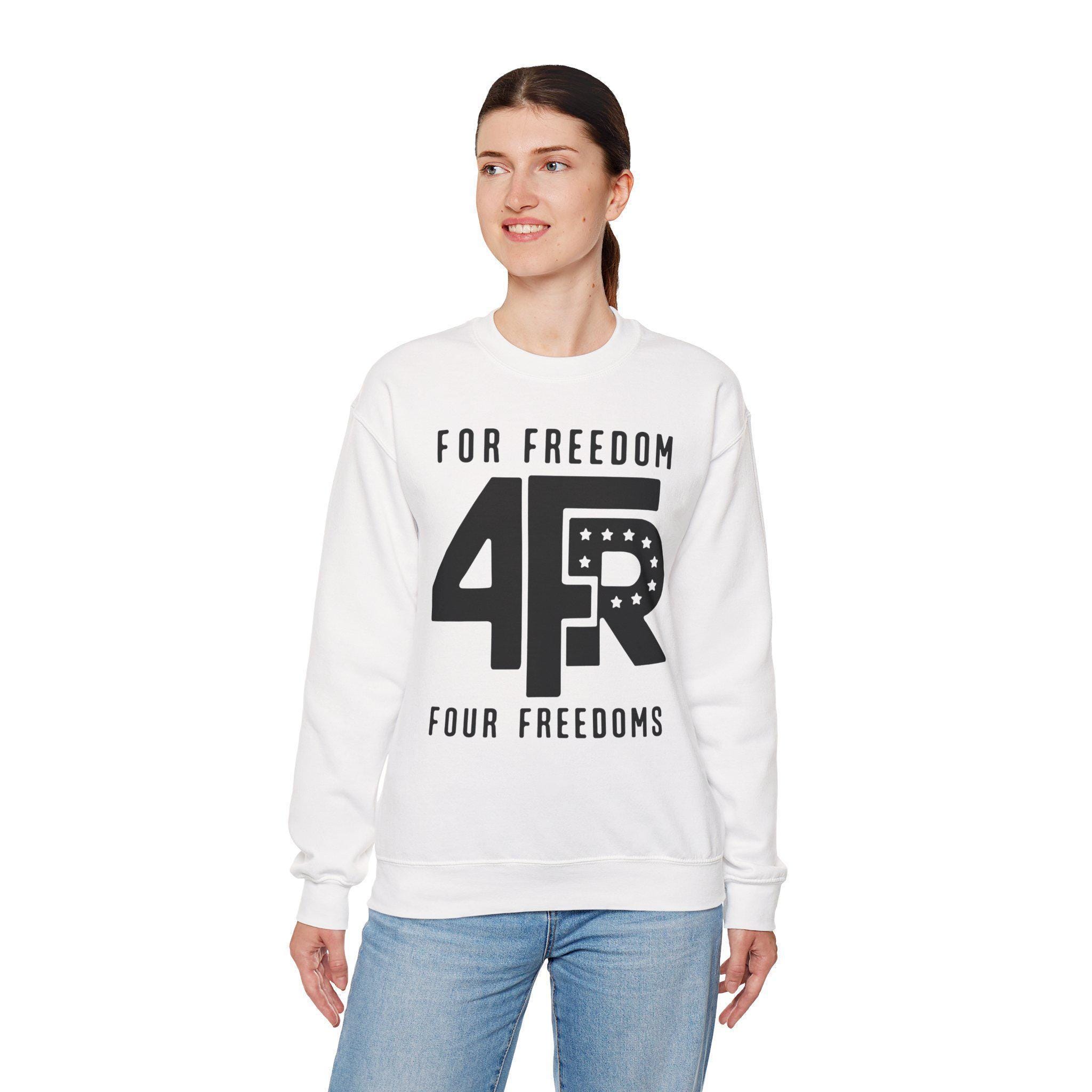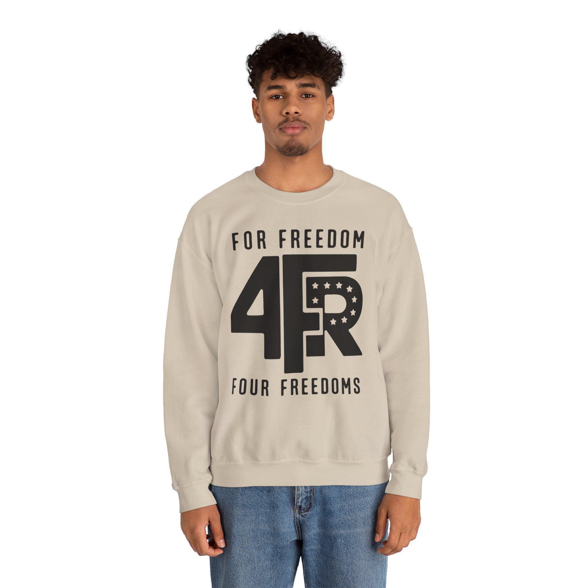 Stay warm this fall with a sweatshirt that makes a quiet but firm statement about the core values that should unite us. This cozy crewneck is a tribute to one of the most powerful articulations of American ideals: Franklin D. Roosevelt's "Four Freedoms." The design is a minimalist take on a classic FDR campaign emblem, featuring the vintage-style "4FR" logo. The message is simple and direct: we act "FOR FREEDOM" by upholding the "FOUR FREEDOMS." It's a reminder that these principles—freedom of speech, worship, from want, and from fear—must be actively defended in every generation.