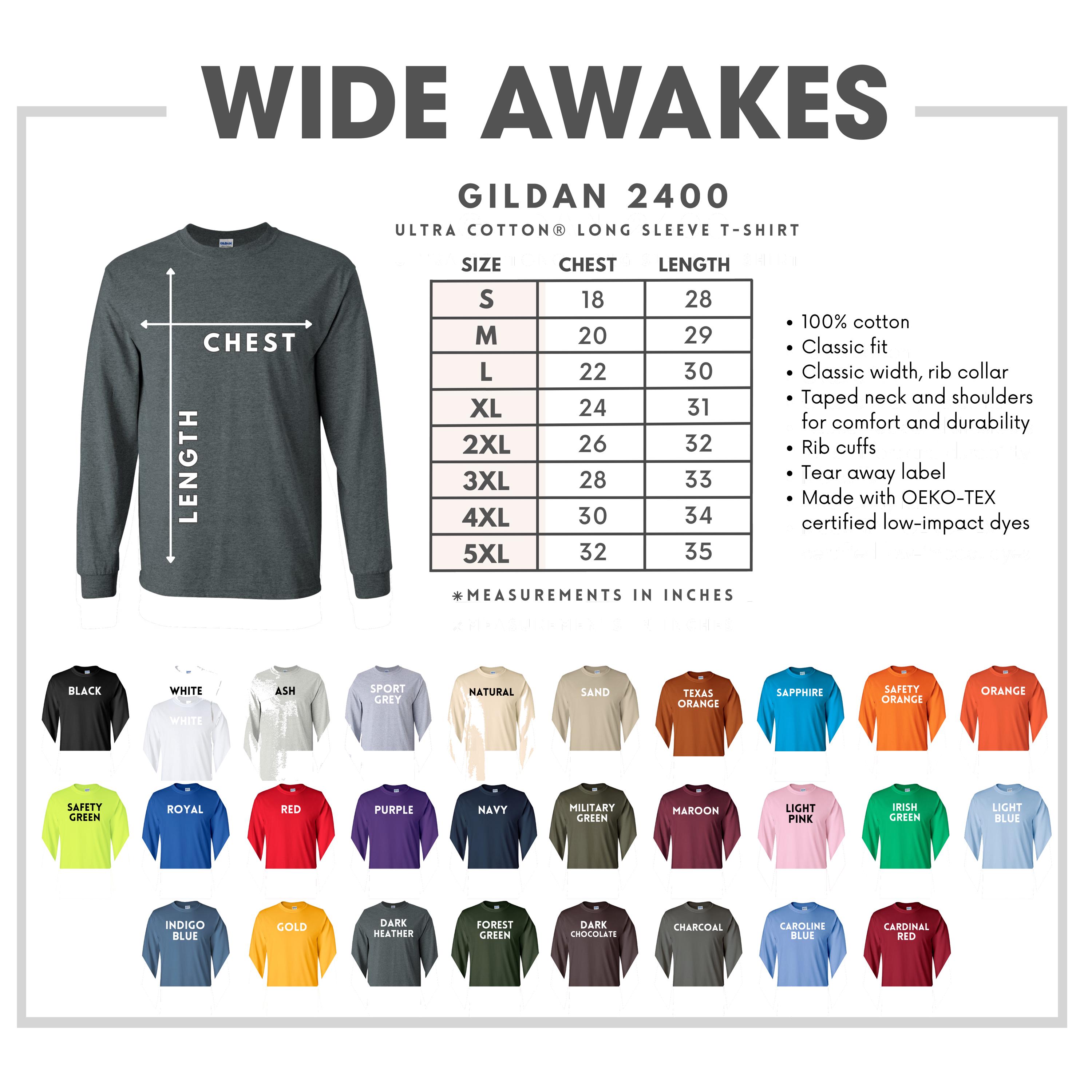 EU representative: HONSON VENTURES LIMITED, gpsr [!at] honsonventures.com, 3, Gnaftis House flat 102, Limassol, Mesa Geitonia, 4003, CY Product information: Gildan 2400, 2 year warranty in EU and Northern Ireland as per Directive 1999/44/EC Warnings, Hazard: For adults Care instructions: Machine wash: cold (max 30C or 90F), Non-chlorine: bleach as needed, Tumble dry: medium heat, Do not iron, Do not dryclean