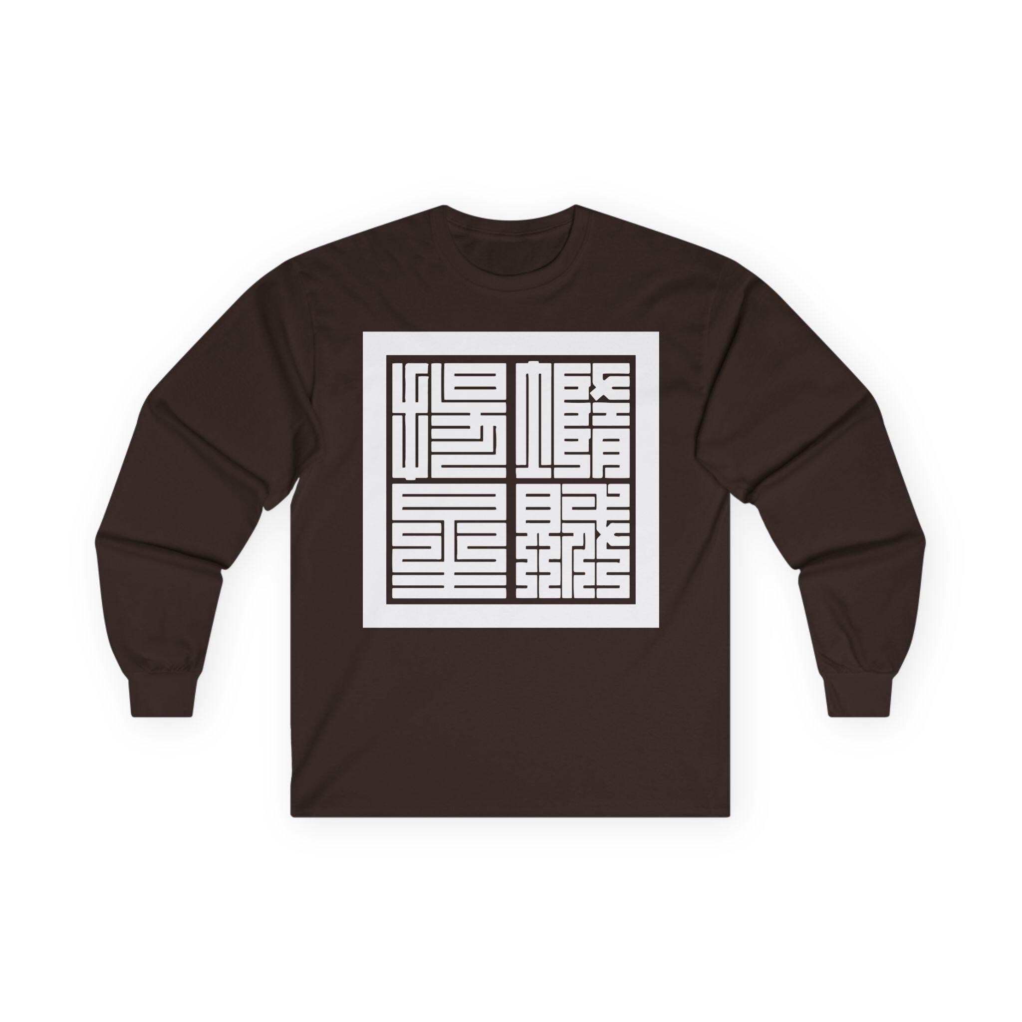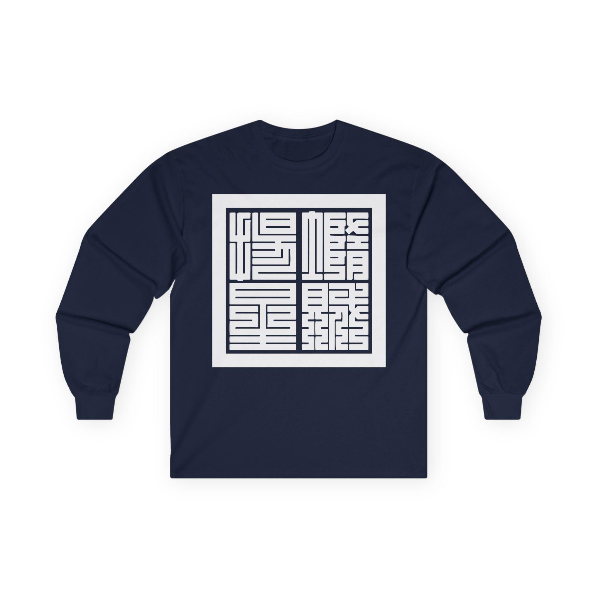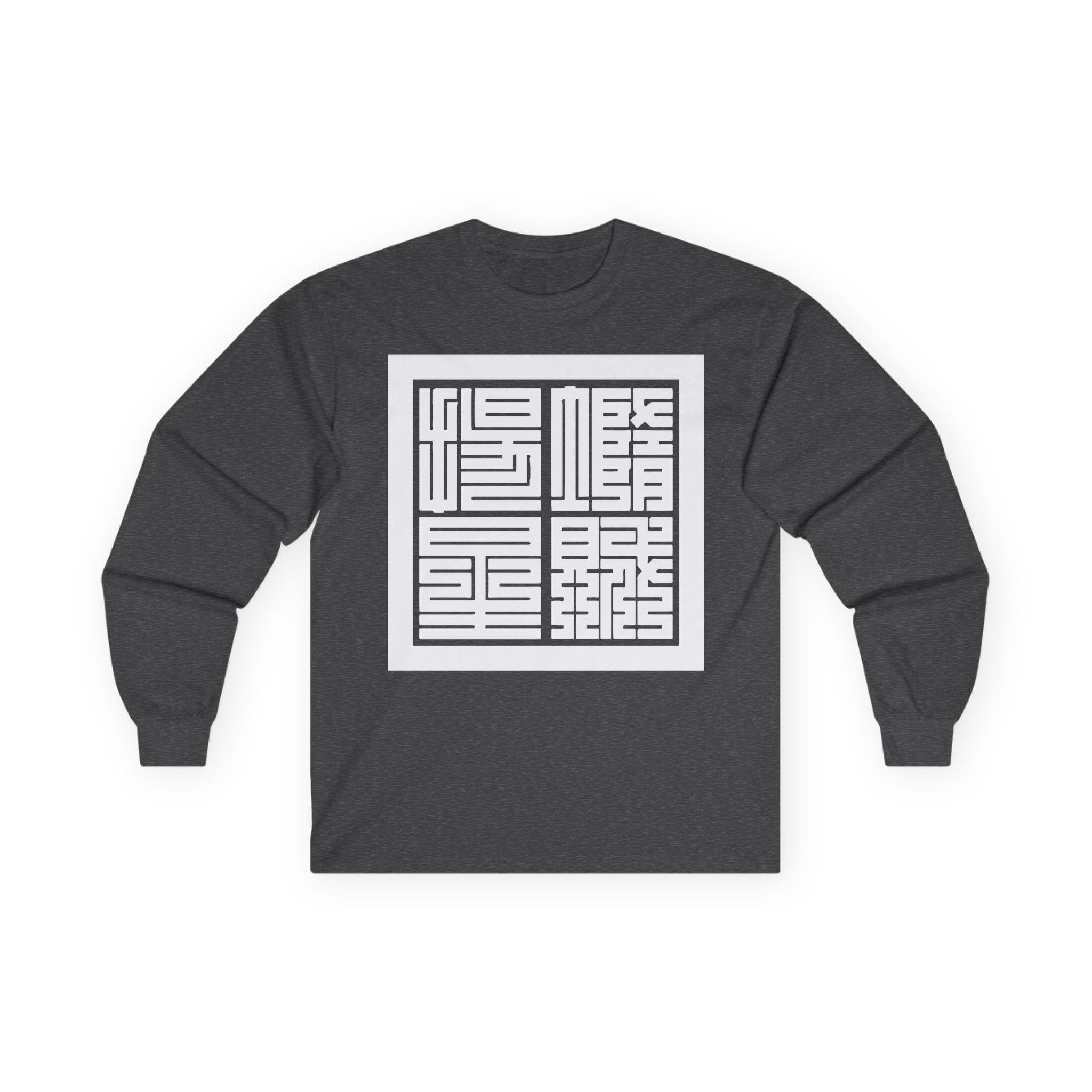 This comfortable longsleeve tee is the perfect layer for the fall and a fantastic conversation starter. The design features the Japanese yojijukugo 堕賊揚星 (Dazoku Yōsei), a custom four-character idiom that translates a famous line from the Civil War song "Battle Cry of Freedom": "Down with the Traitor, Up with the Stars." The highly geometric Kakuji script is inspired by 19th-century Japanese seals, giving it a powerful, historic feel. It’s a stylish and intelligent piece of wearable art.