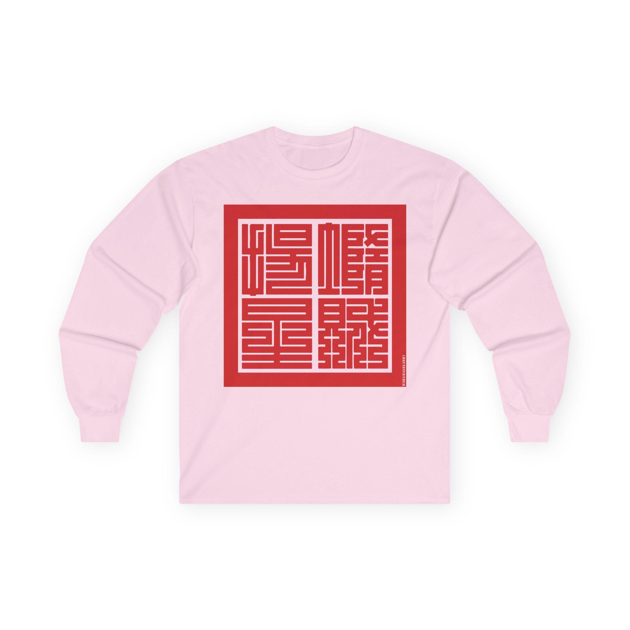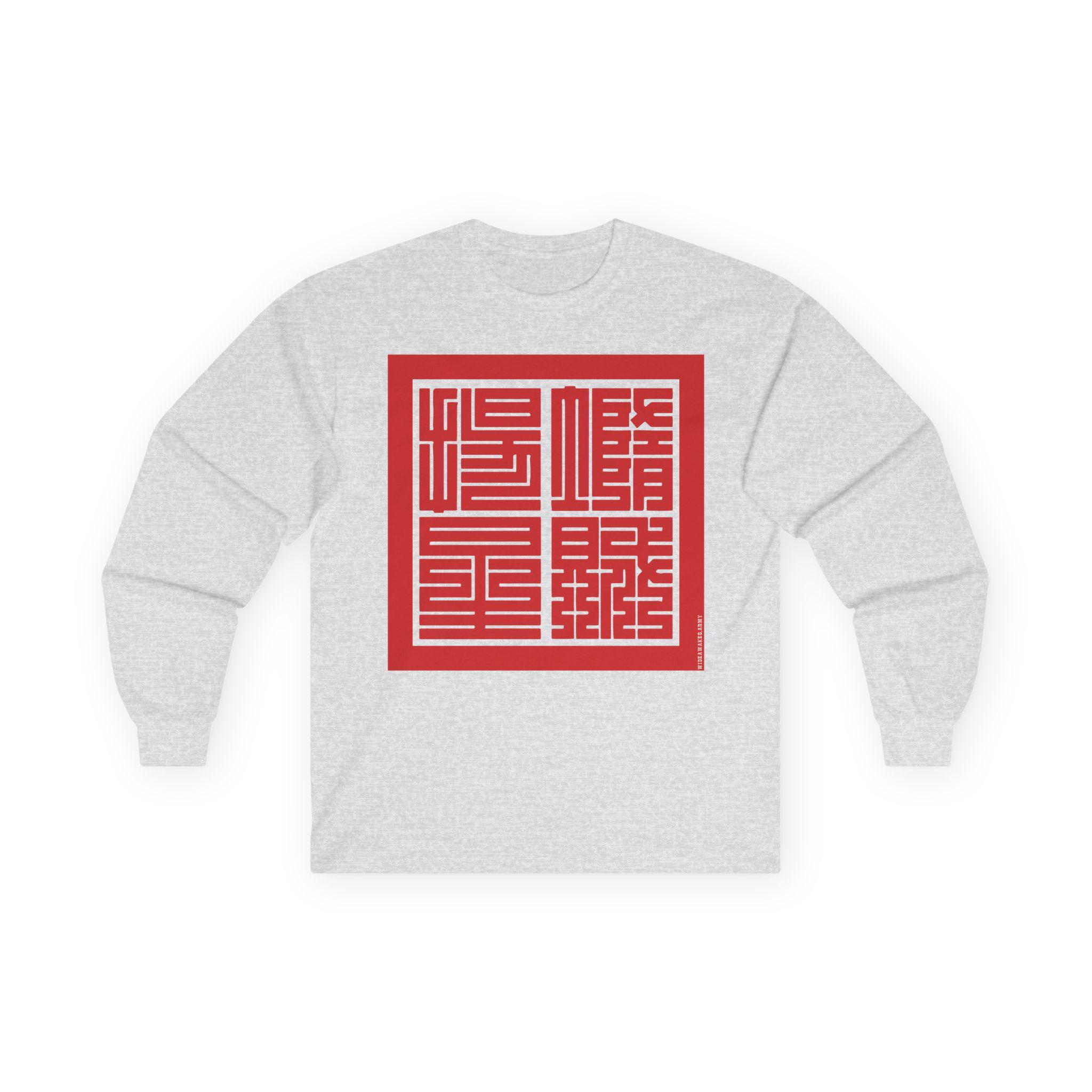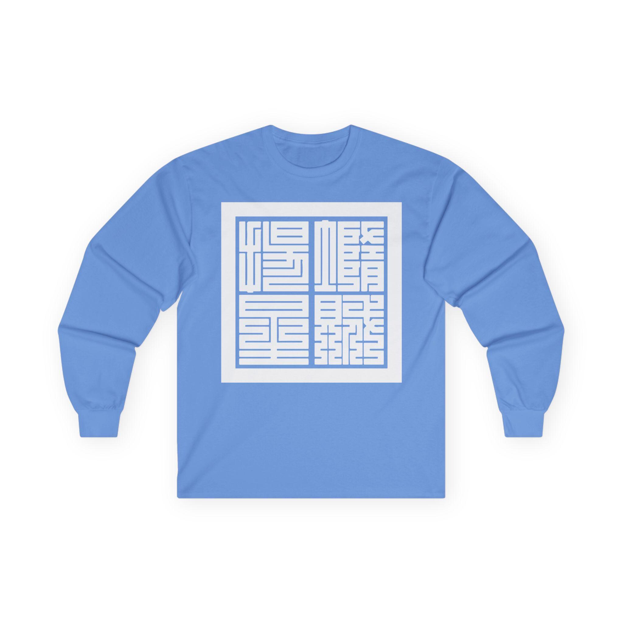 This comfortable longsleeve tee is the perfect layer for the fall and a fantastic conversation starter. The design features the Japanese yojijukugo 堕賊揚星 (Dazoku Yōsei), a custom four-character idiom that translates a famous line from the Civil War song "Battle Cry of Freedom": "Down with the Traitor, Up with the Stars." The highly geometric Kakuji script is inspired by 19th-century Japanese seals, giving it a powerful, historic feel. It’s a stylish and intelligent piece of wearable art.