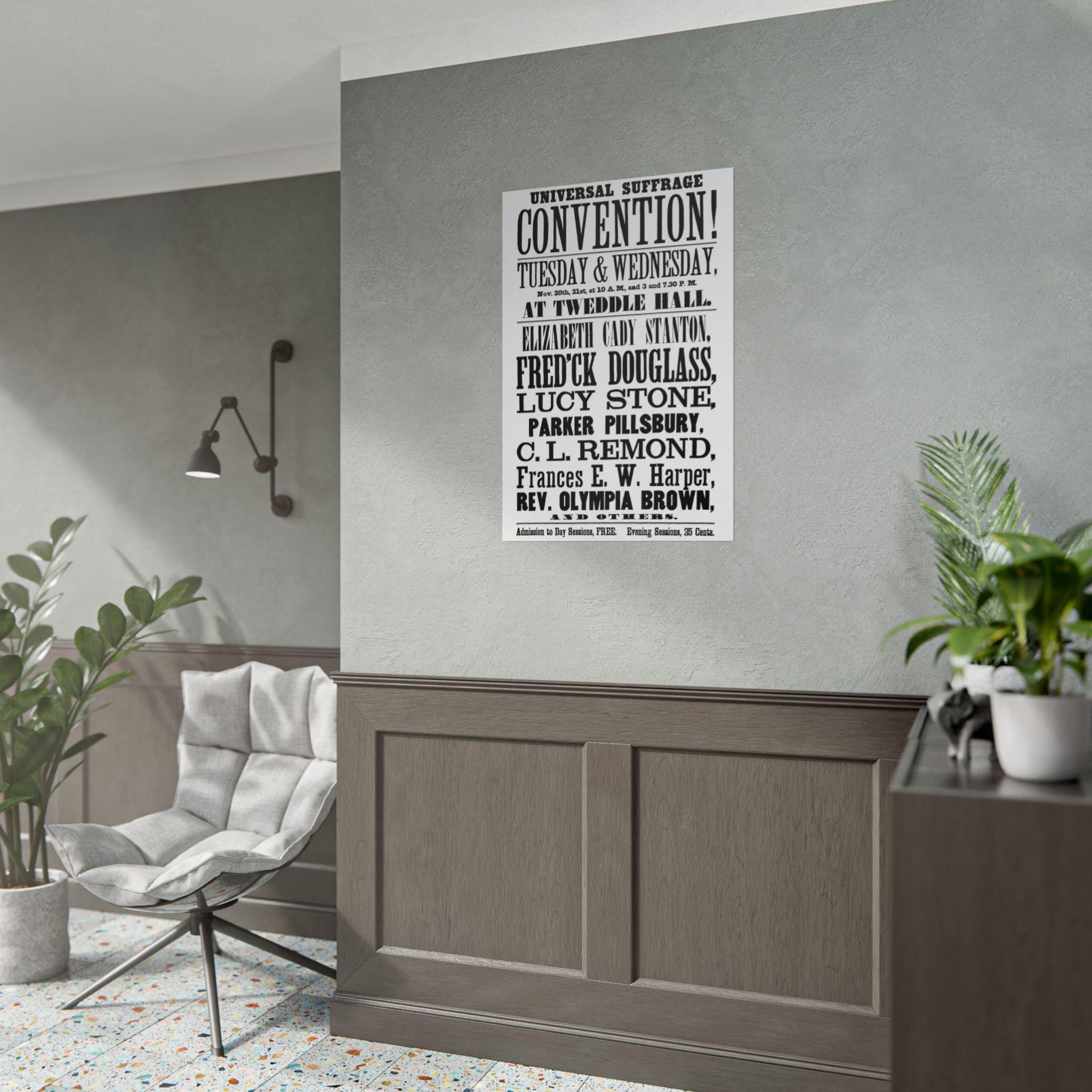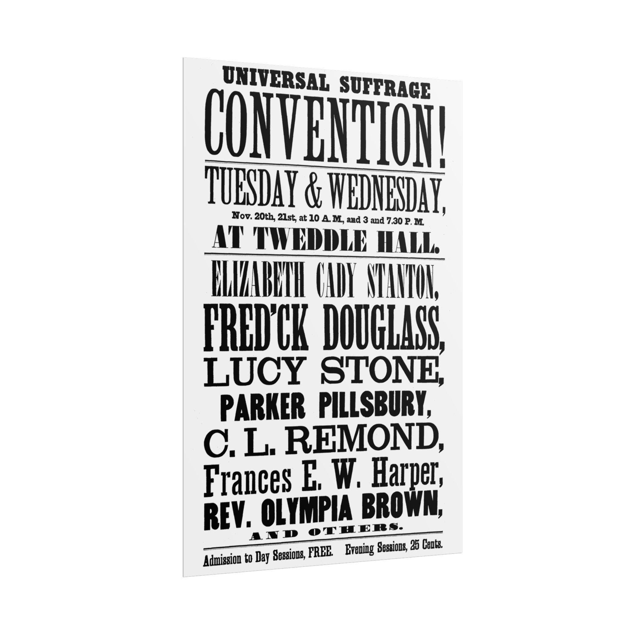 This high-quality poster is a faithful reproduction of an authentic broadside from 1848, advertising a Women's Suffrage Convention in Albany, New York. This is not just a poster; it's a historical document showcasing a truly staggering lineup of "heavyweights" from the early women's rights and abolitionist movements. The list of speakers is a testament to the intersectional nature of the fight for freedom, featuring: