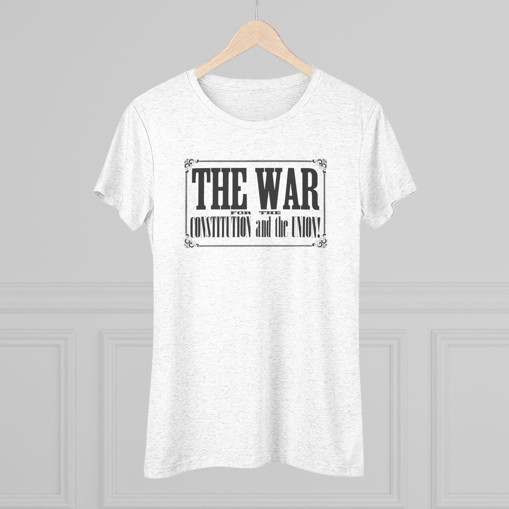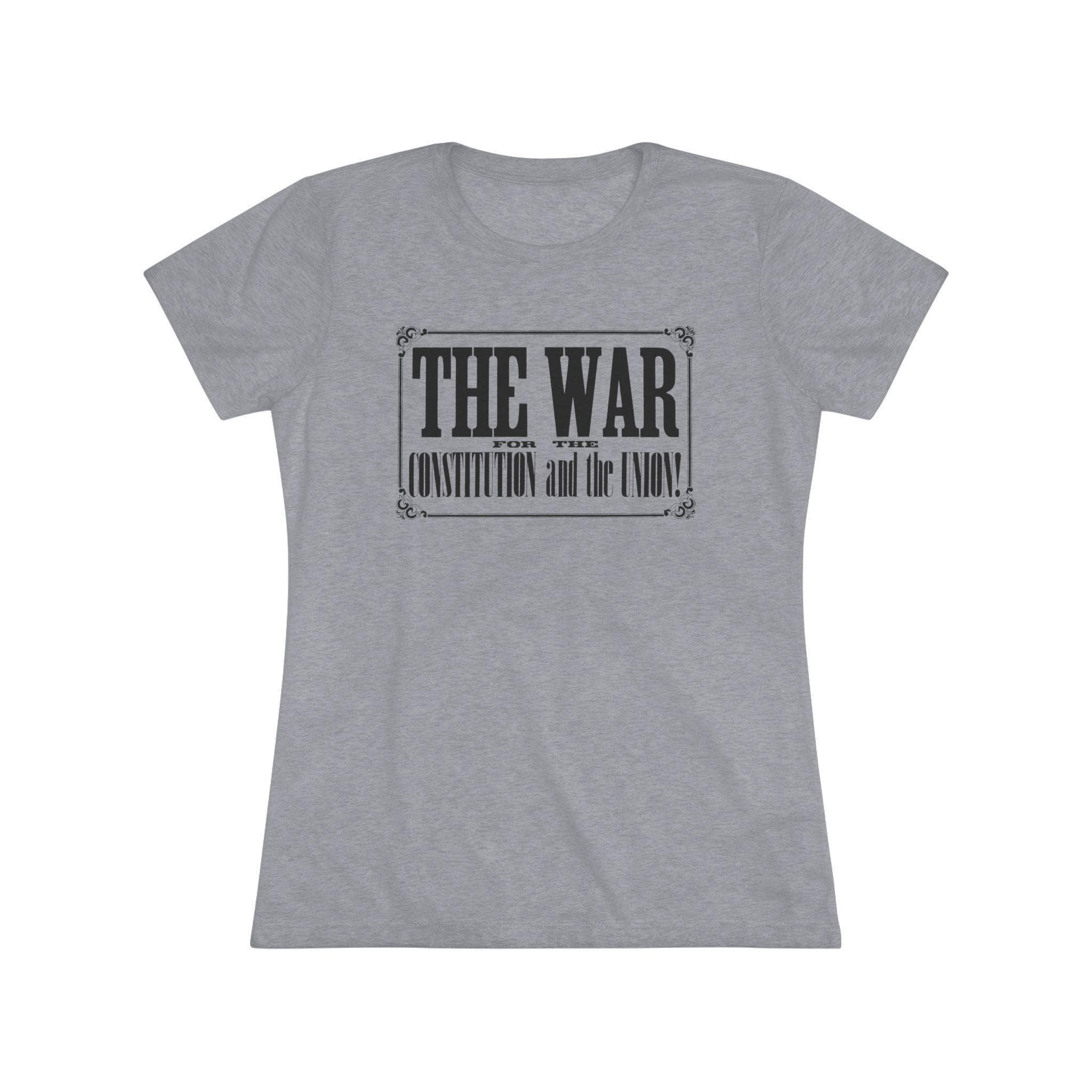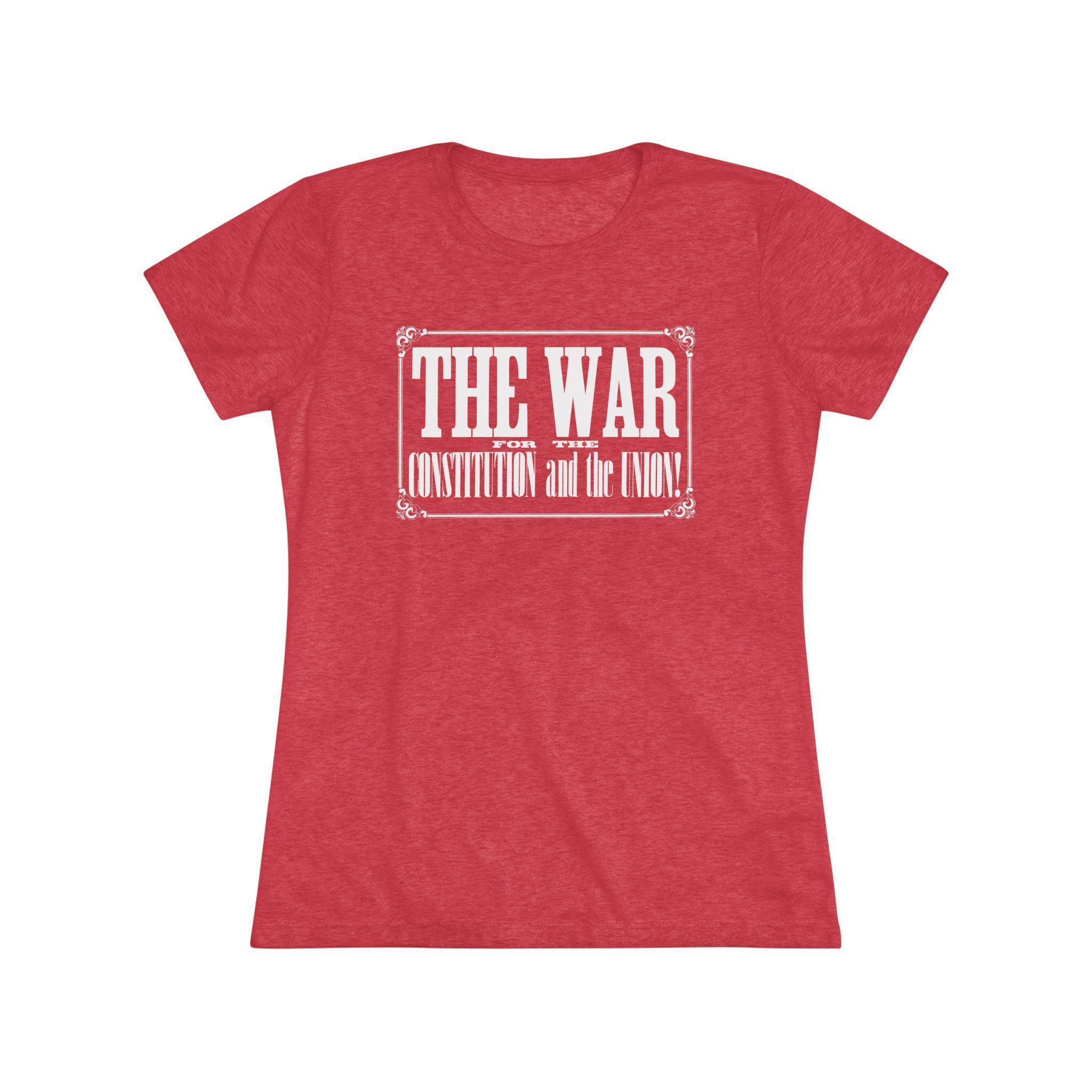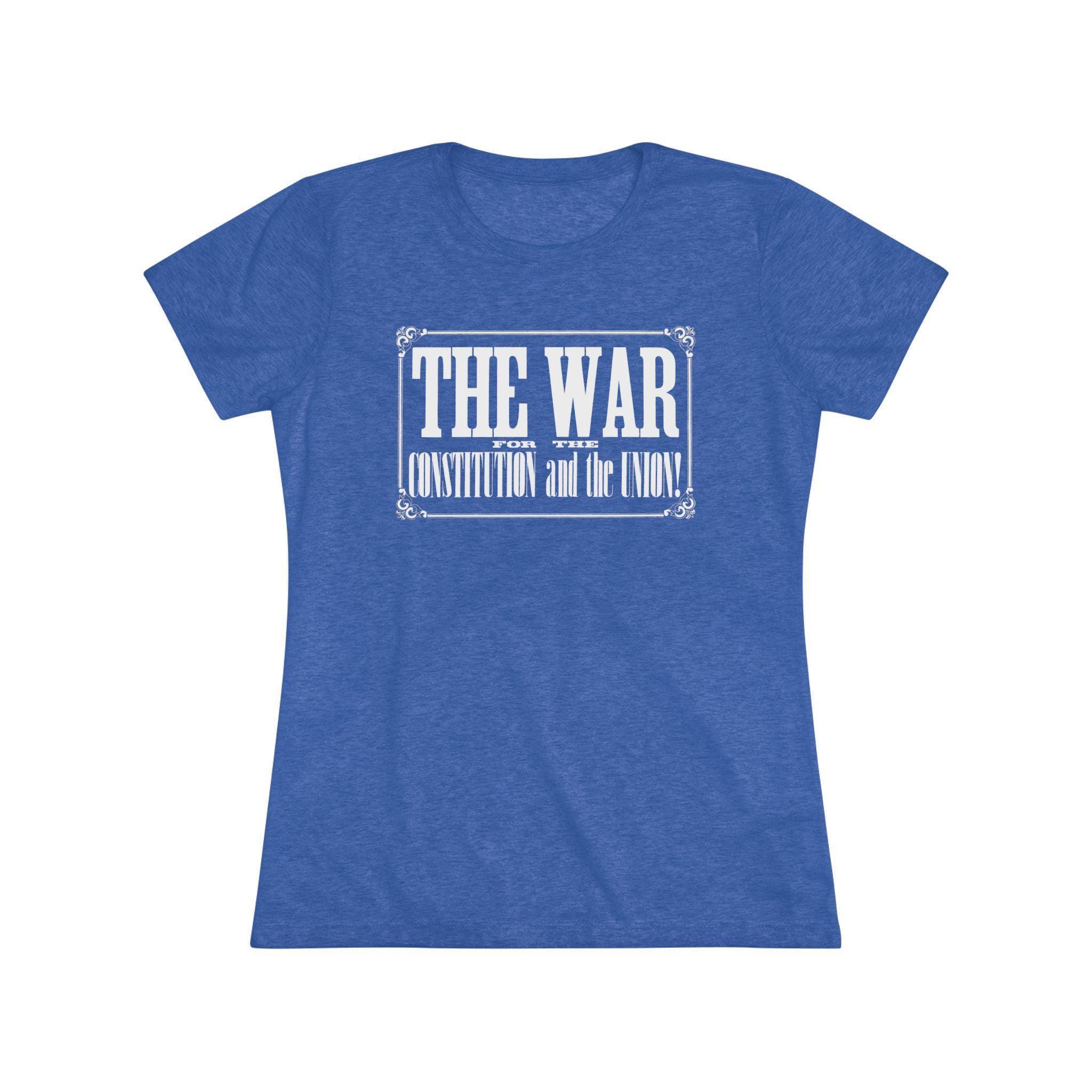 This women's t-shirt combines a powerful historical statement with a comfortable and stylish fit. The design is the bold, typographic headline from an 1862 Civil War recruitment poster: "THE WAR FOR THE CONSTITUTION and the UNION!" Presented within its original ornate frame, it's a beautiful example of 19th-century graphic design. This soft, contoured tee is a perfect way to wear a piece of profound history that speaks to the enduring principles of the nation.