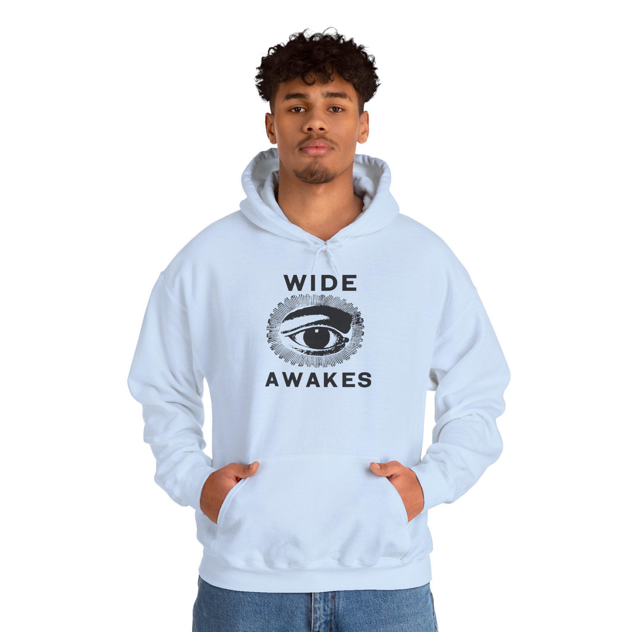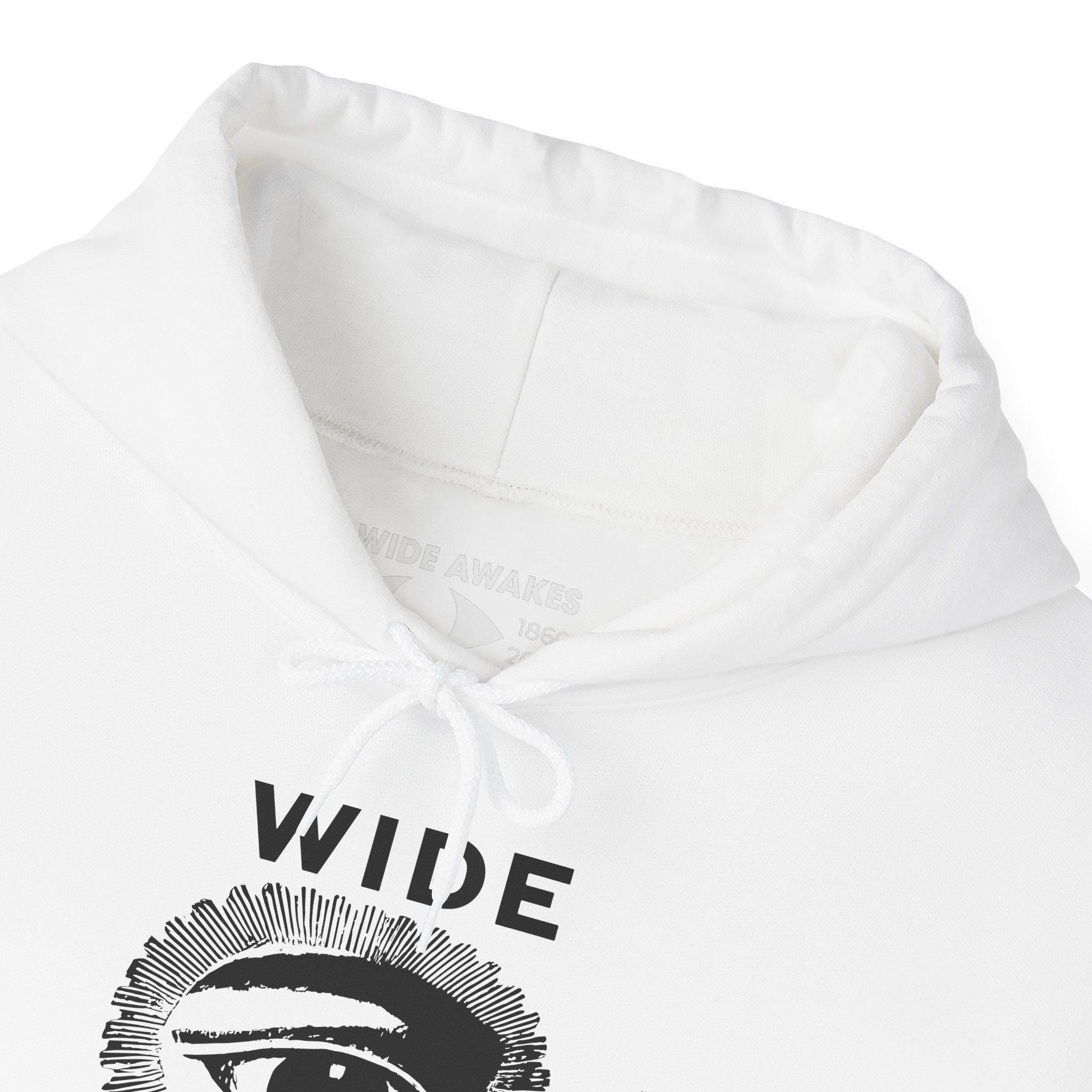 This comfortable and warm hoodie features a simple but deeply evocative design from the 1860 presidential campaign. It's a restored emblem from a ribbon worn by the Wide Awakes of Seneca Falls, NY. Coming from the birthplace of the women's rights movement, this "WIDE AWAKE" eye is a symbol of both the abolitionist cause and the broader struggle for equality that defined the era. With a soft fleece interior and a spacious front pocket, this is a wearable piece of history from a town that changed the world.