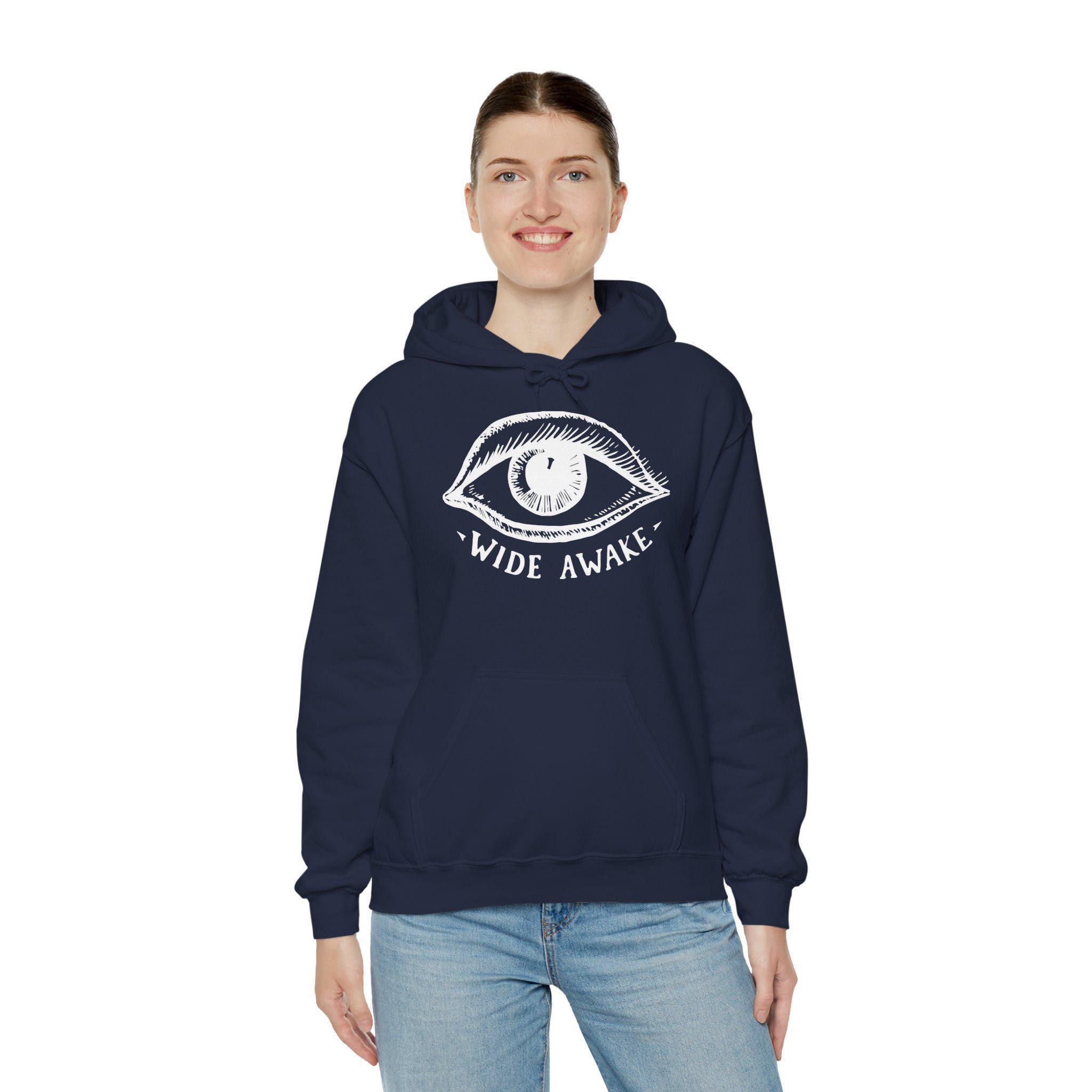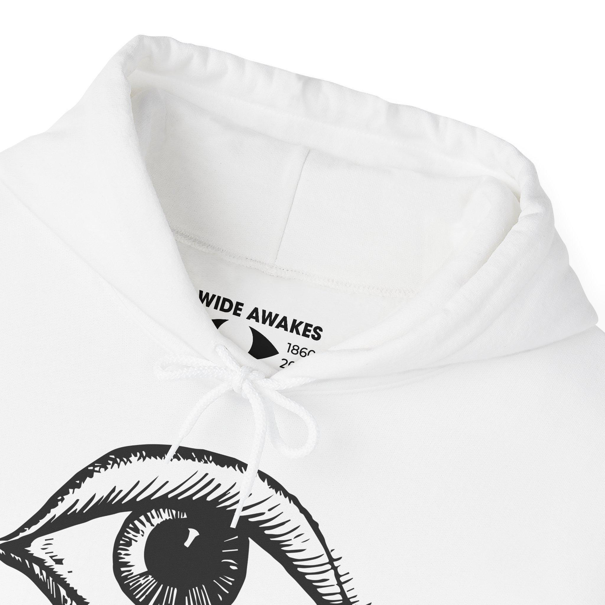 This comfortable and warm hoodie features a design with a unique, "folk art" feel. It's a restored emblem from an authentic 1860 Wide Awakes parade banner, complete with a charming, hand-drawn eye and hand-lettered serif text. It feels less like a corporate logo and more like something a dedicated activist would have painted themselves. With a soft fleece interior and a spacious front pocket, this hoodie is a wearable piece of history that honors the genuine, handmade spirit of the abolitionist cause.