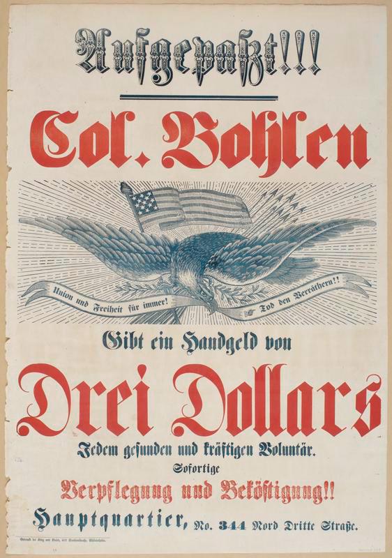 Step back into Civil War Philadelphia with this stunning restoration of a recruitment poster designed for its German immigrant community. More than just a call for soldiers, this broadside is steeped in the political culture of the "Forty-Eighters"—refugees from the failed German revolutions of 1848 who brought their fierce anti-monarchist and pro-democracy ideals to America.
