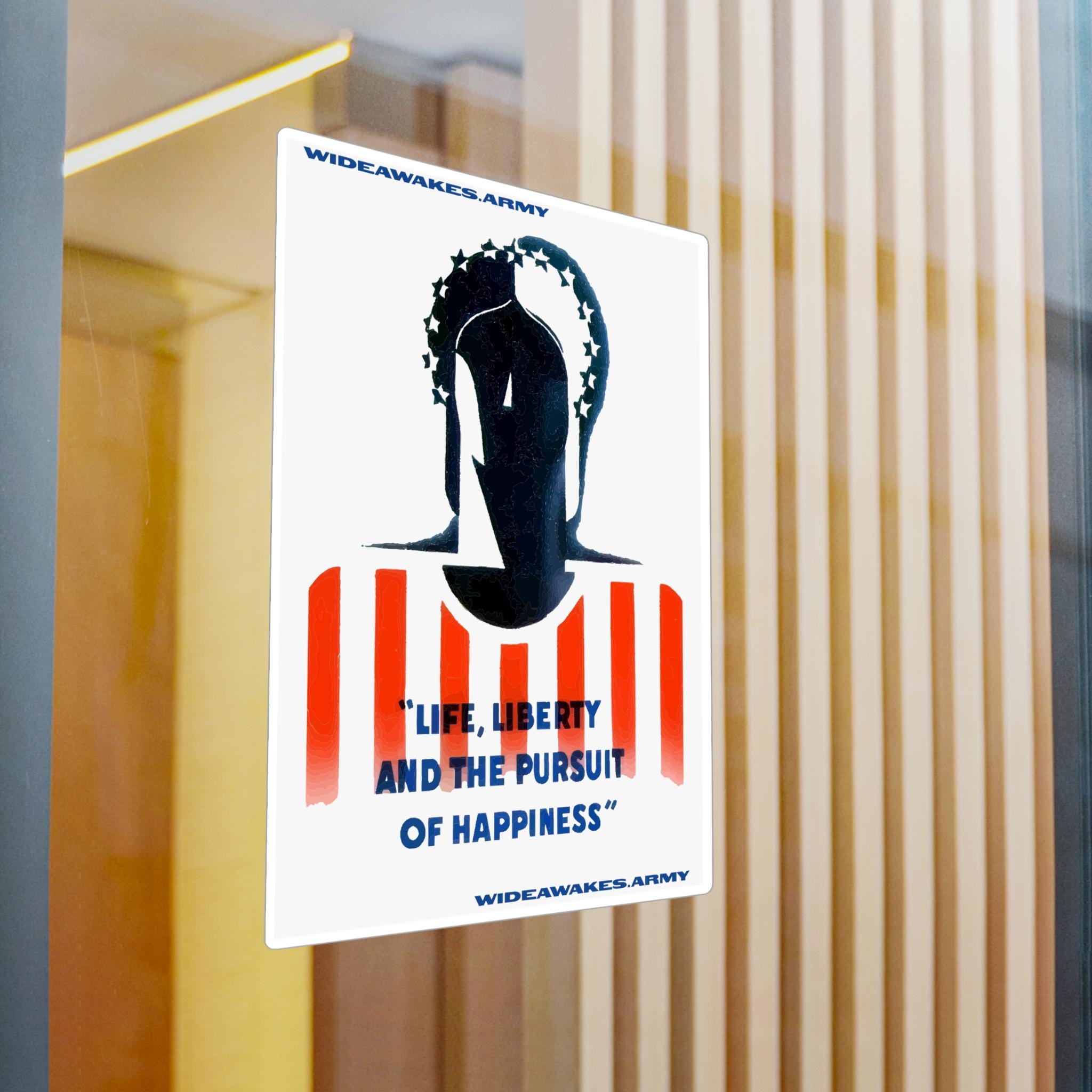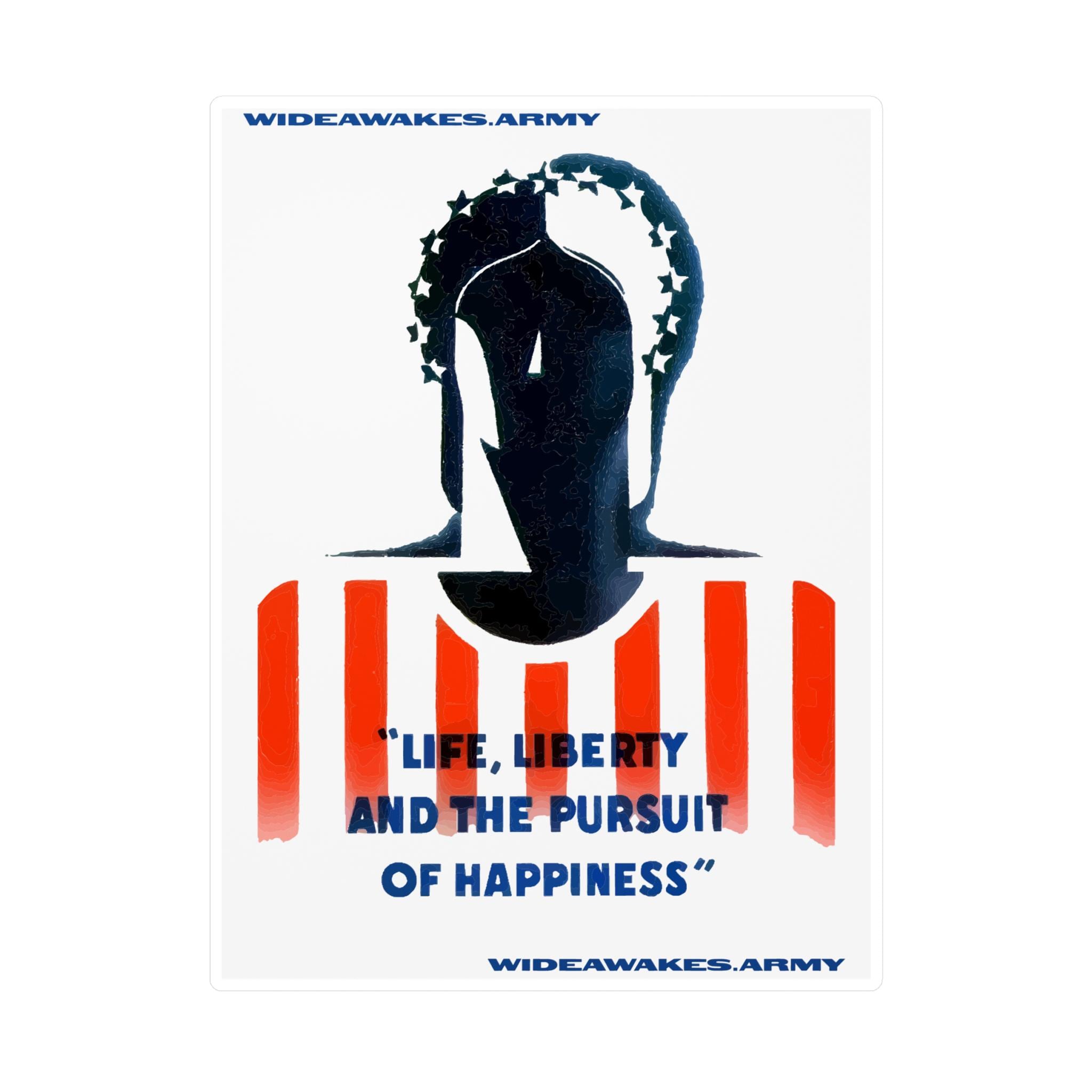 Bearing the text "Life, Liberty, and the Pursuit of Happiness," this decal is a perfect way to display your love for classic design and American history on your car, laptop, or water bottle.