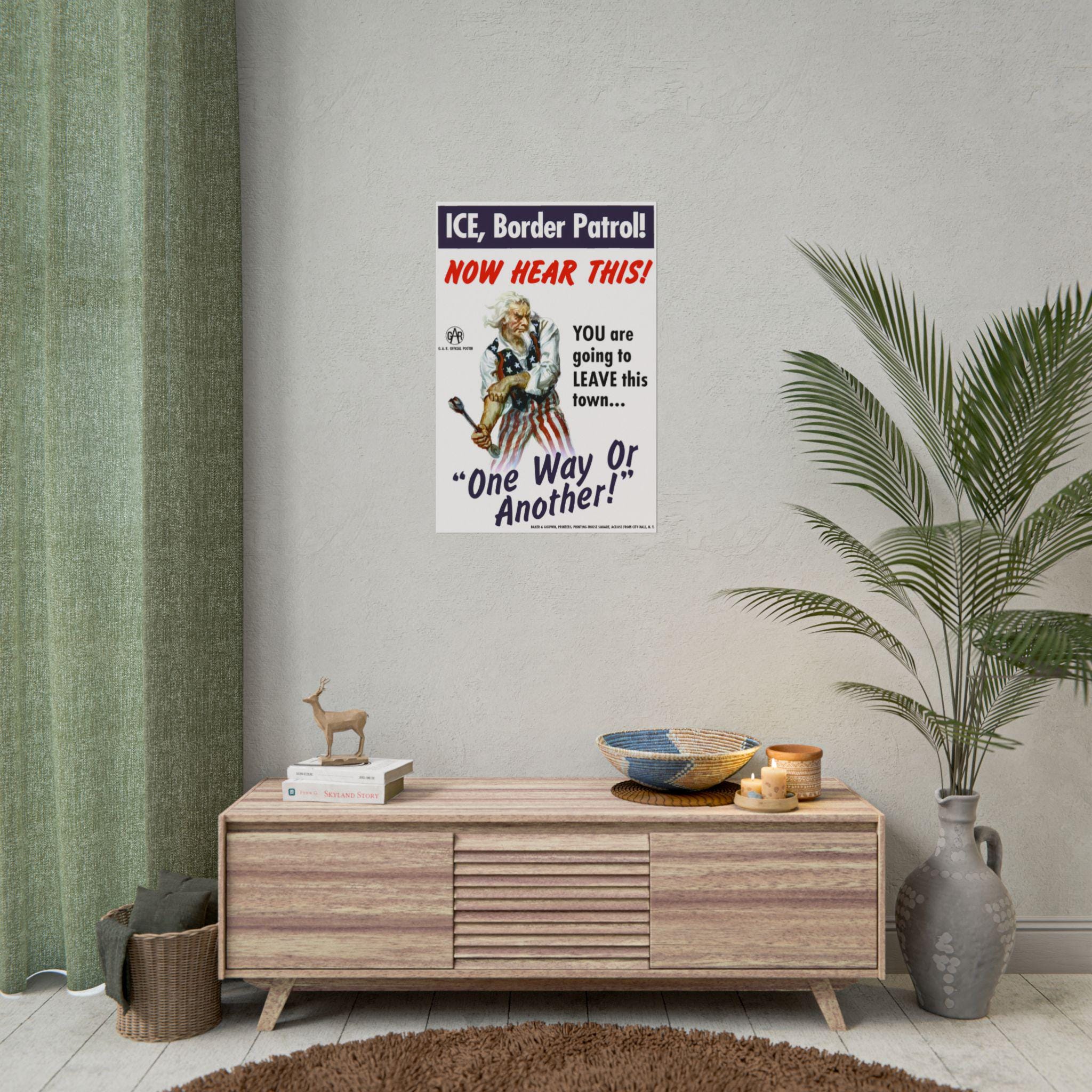 The Details: The poster replaces the old War Department seal with the logo of the Grand Army of the Republic (G.A.R.), grounding the message in the radical, anti-slavery roots of the Union. Signed by "BAKER & GODWIN," this piece features dynamic, tilted typography and a mix of Futura Condensed and hand-painted fonts to create a sense of urgent motion. Available as a high-quality paper print or a rigid foam board poster, perfect for community centers, dorms, or protest signs.